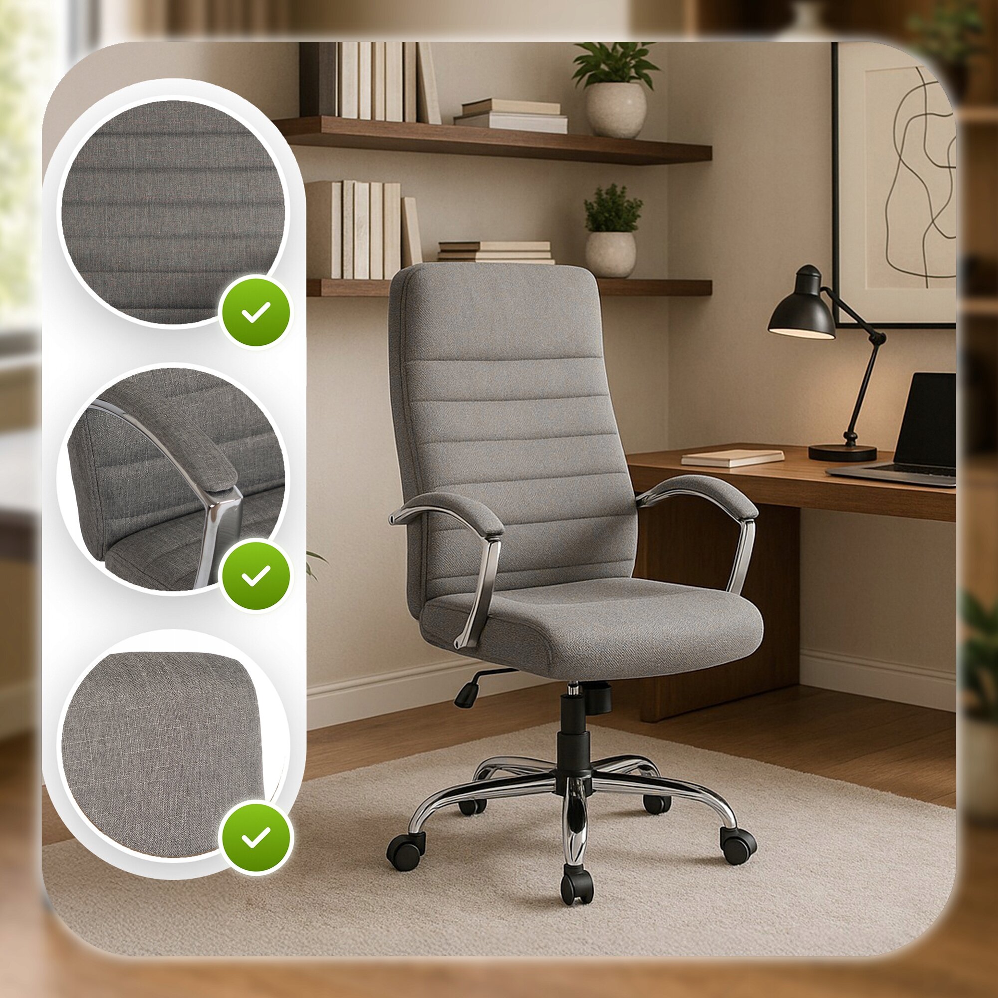 Fotel biurowy RENES w kolorze szarym to idealne połączenie elegancji i funkcjonalności, stworzone z myślą o wygodnej pracy w biurze, domowym gabinecie czy sali konferencyjnej. Wykonany z wysokiej jakości tkaniny o przyjemnej w dotyku strukturze, zapewnia komfort nawet podczas długich godzin siedzenia.