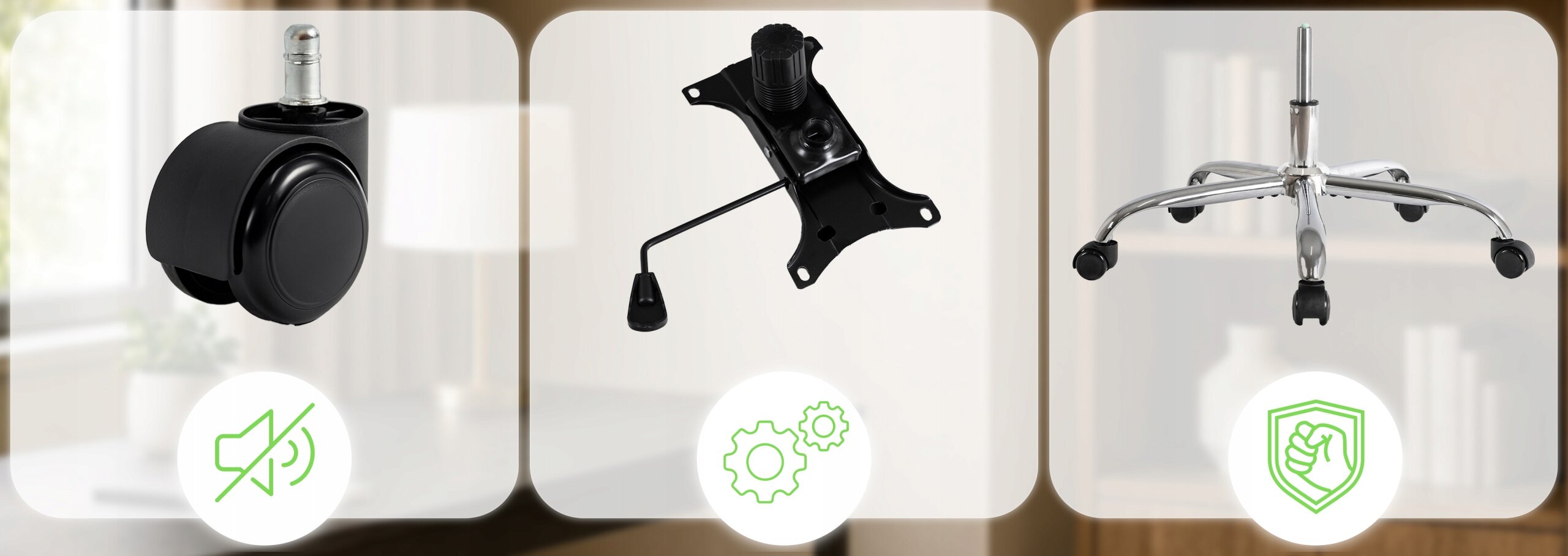 Ciche kółka – zapewniają płynne i bezgłośne przemieszczanie się po różnych powierzchniach, nie rysując podłogi.
