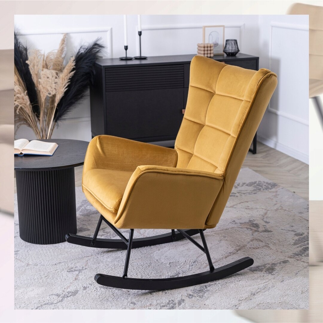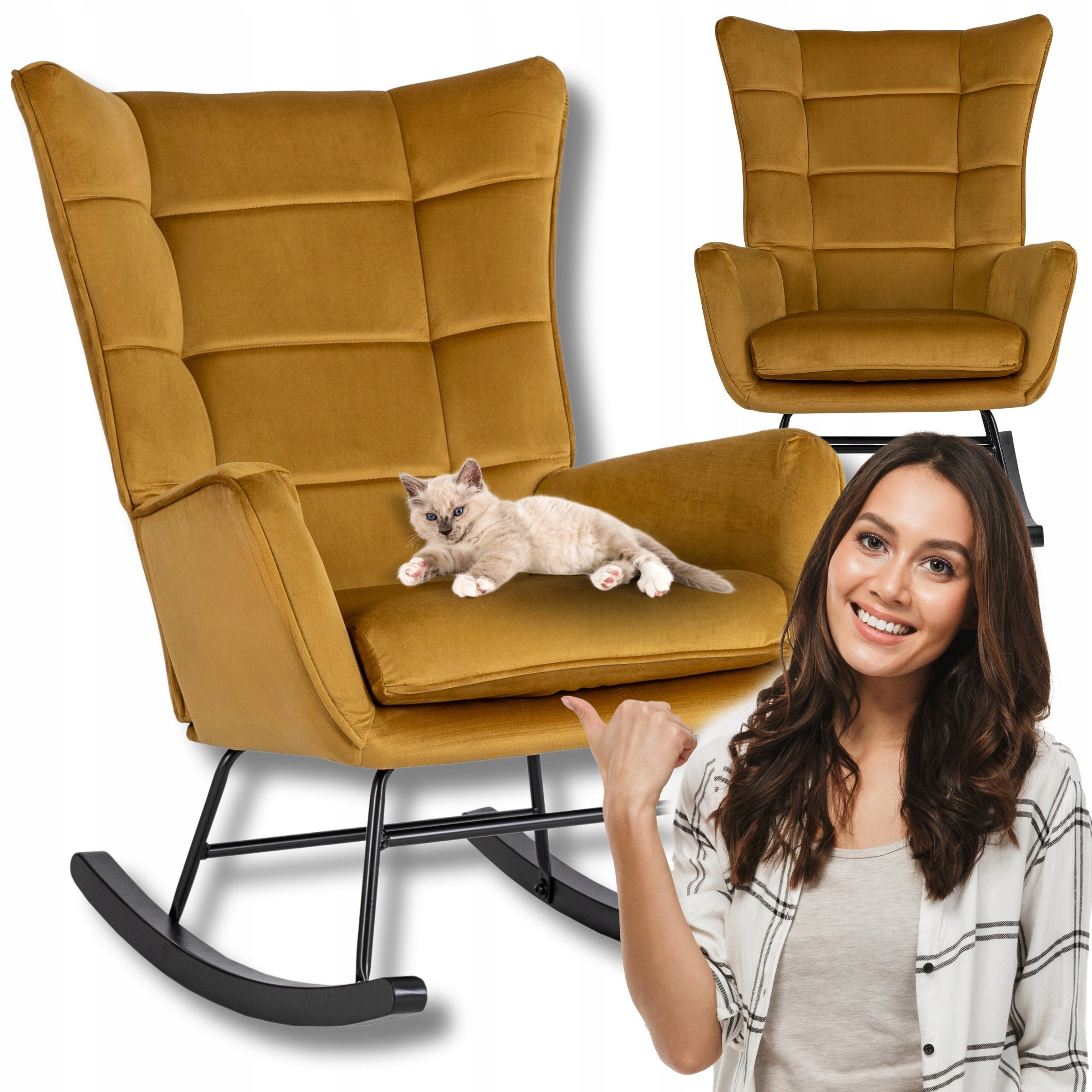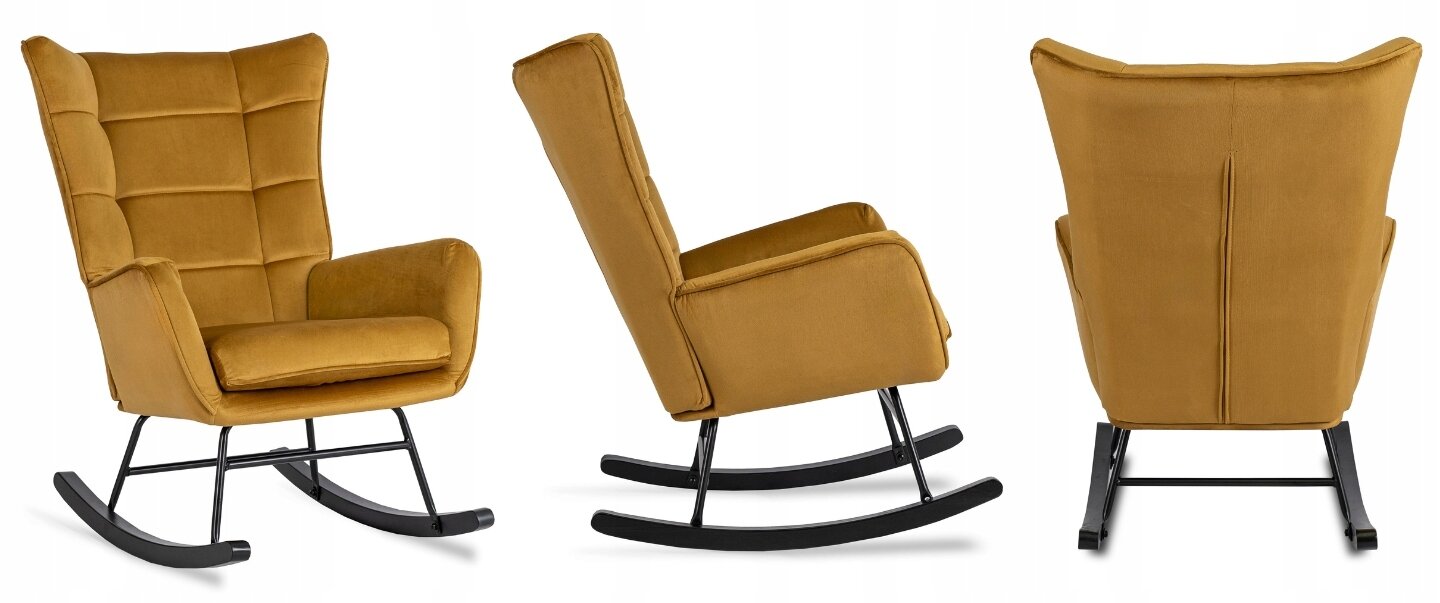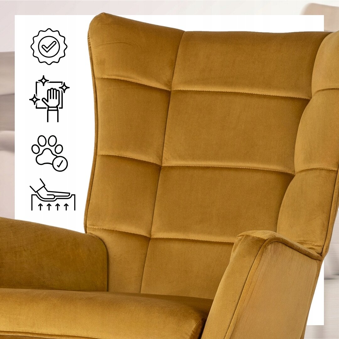 Fotel Bujany Na Biegunach Wypoczynkowy Welurowy Salon Musztardowy JACKSON ⭐⭐⭐⭐⭐