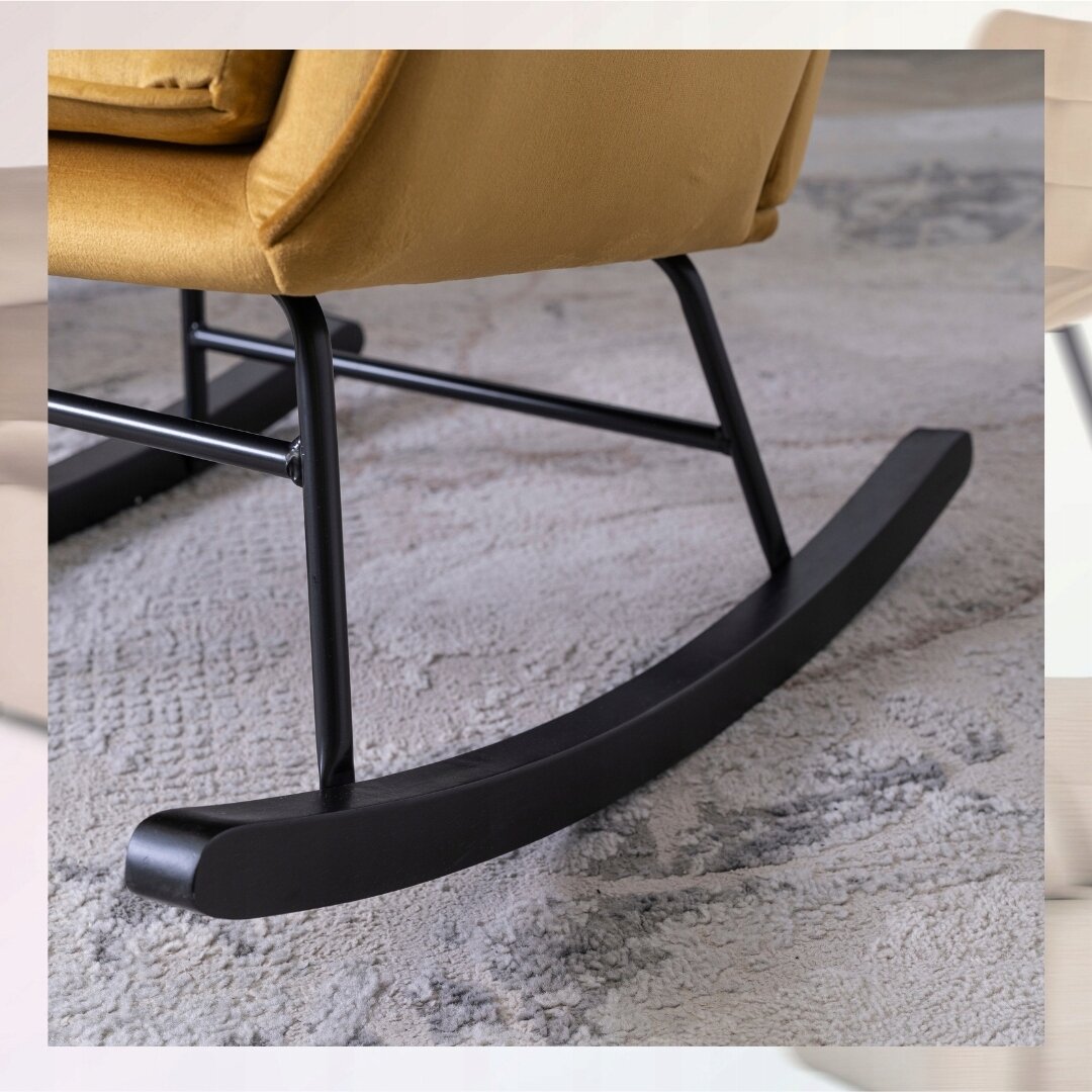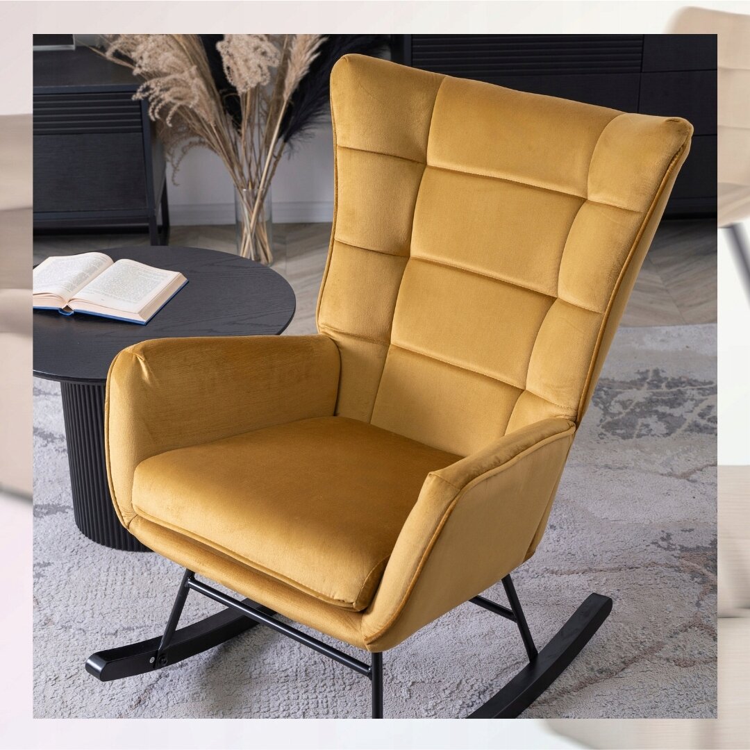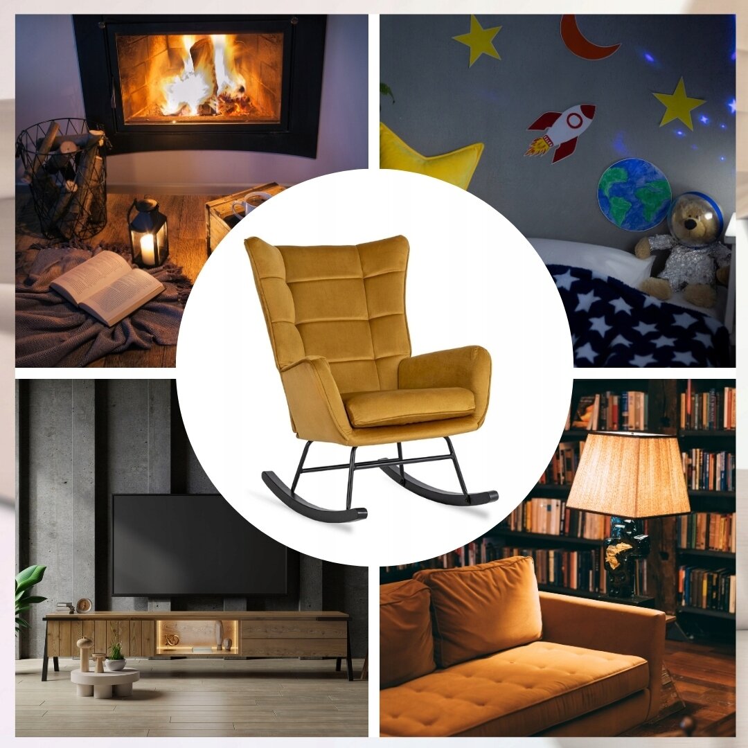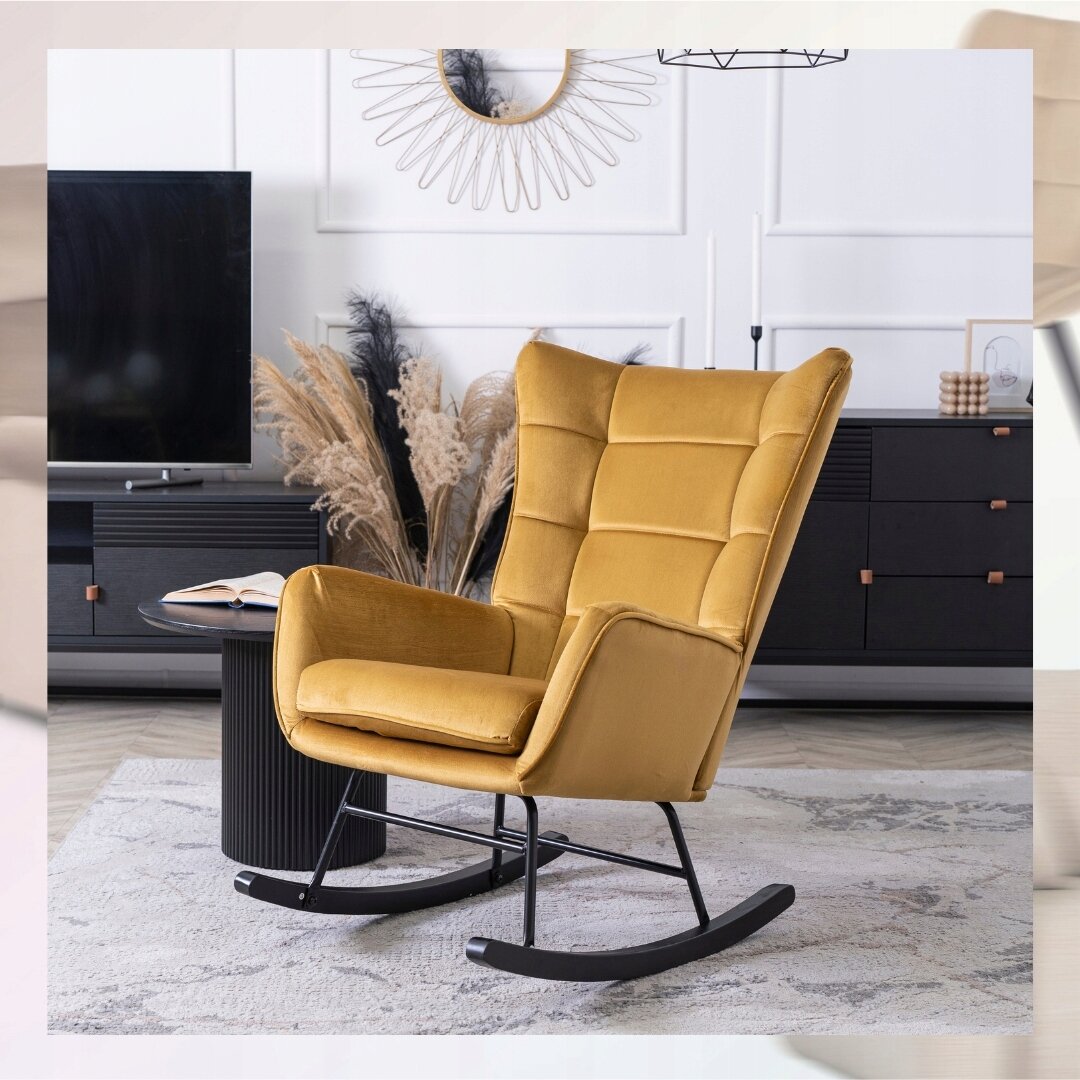 Fotel Bujany Na Biegunach Wypoczynkowy Welurowy Salon Musztardowy JACKSON ⭐⭐⭐⭐⭐
