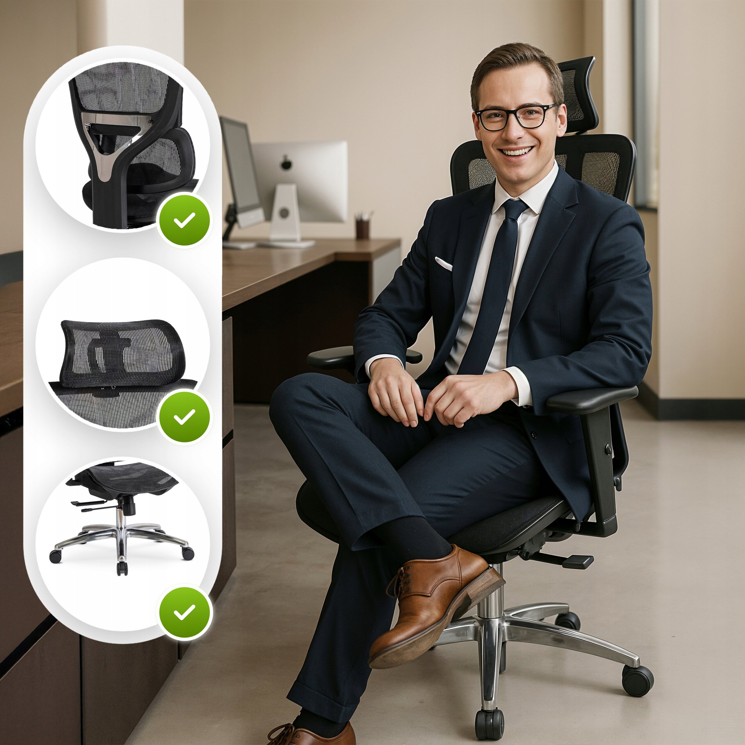 Zdrowa sylwetka zaczyna się od właściwej pozycji siedzącej. Nasz fotel ergonomiczny został zaprojektowany tak, aby dopasować się do naturalnej krzywizny kręgosłupa, wspierając zarówno odcinek piersiowy, jak i lędźwiowy. Dzięki temu możesz zapomnieć o bólu pleców, nawet po wielu godzinach pracy przy biurku.