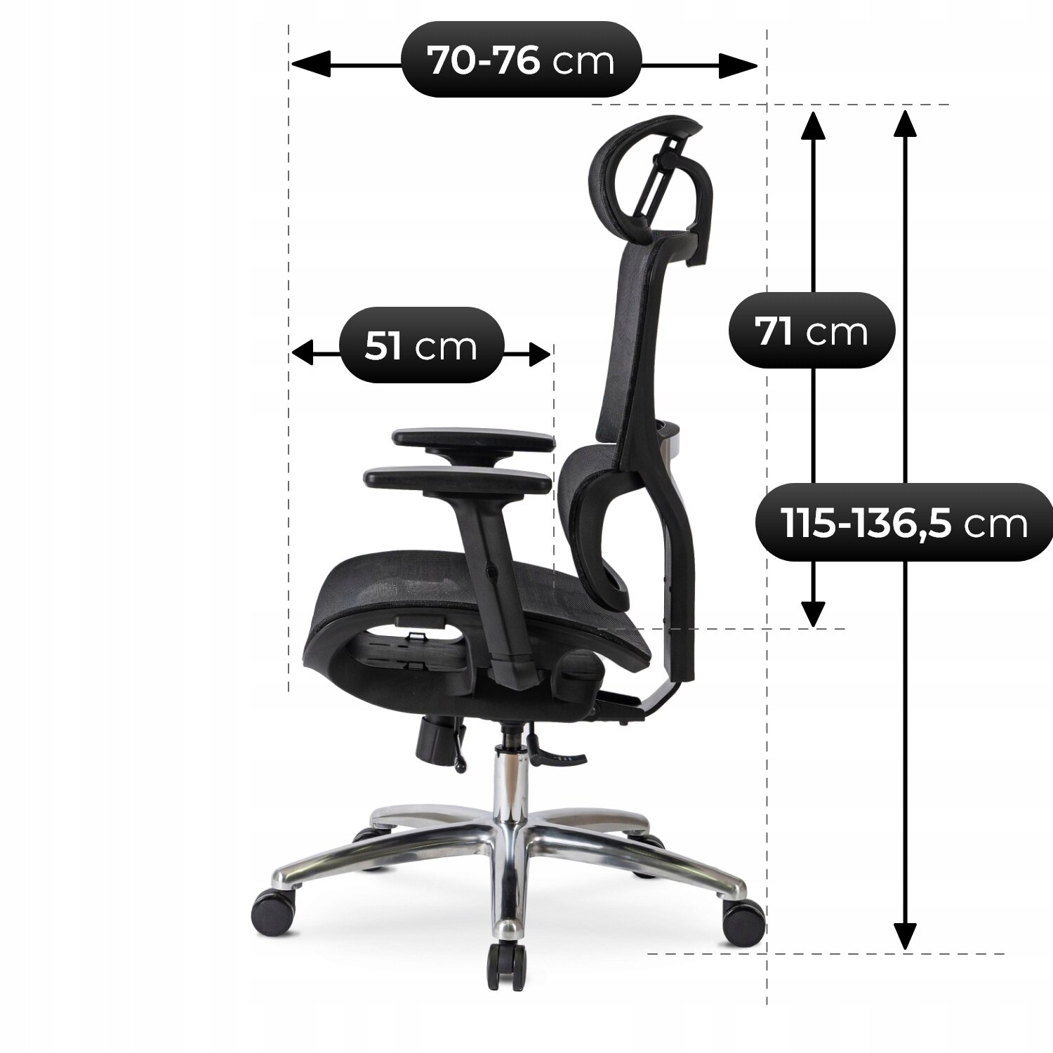 - Wysokość całkowita fotela: 115 – 136,5 cm