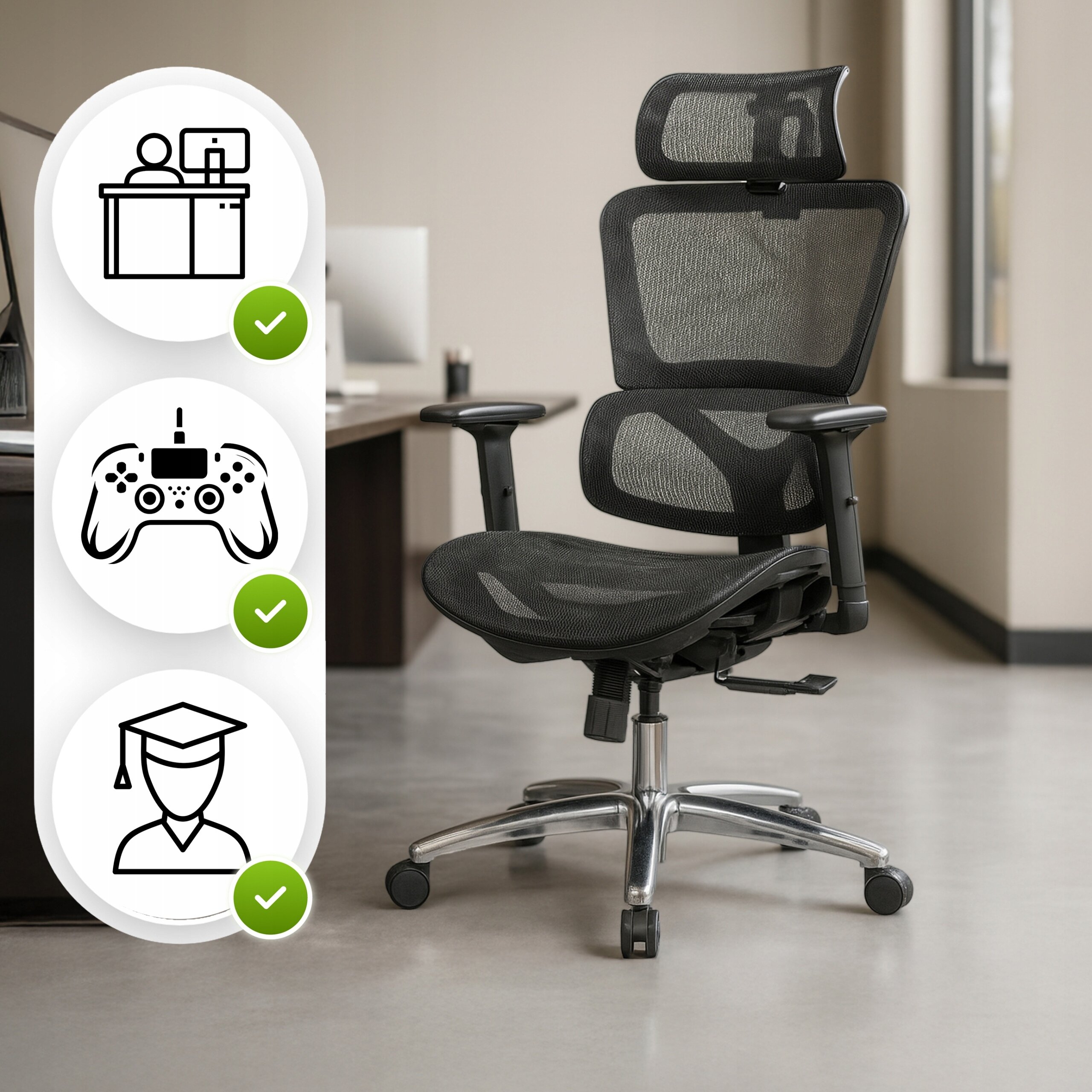 - Dla pracujących zdalnie – ergonomiczna konstrukcja i regulacja wysokości zapewniają wygodę nawet podczas wielogodzinnej pracy przy biurku.