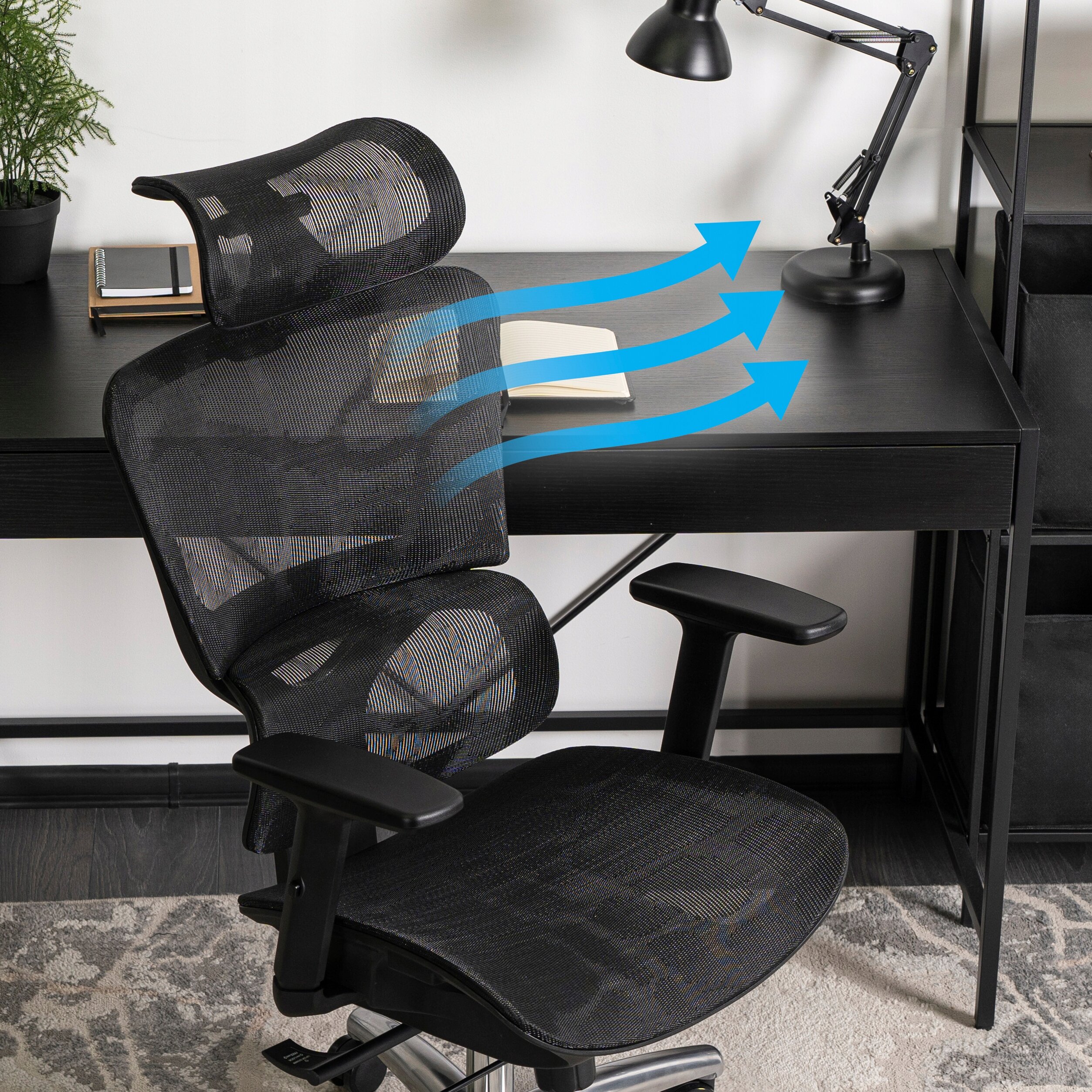 - Wyprofilowane oparcie z elastycznej siatki zapewnia doskonałą wentylację i wsparcie dla kręgosłupa przez cały dzień.