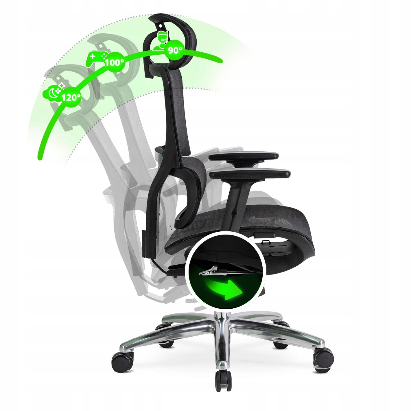 Fotel oferuje odchylenie oparcia w zakresie od 90° do 120° co sprawia, że idealnie sprawdza się zarówno podczas pracy (90°), jak i w chwilach relaksu w pozycji półleżącej.