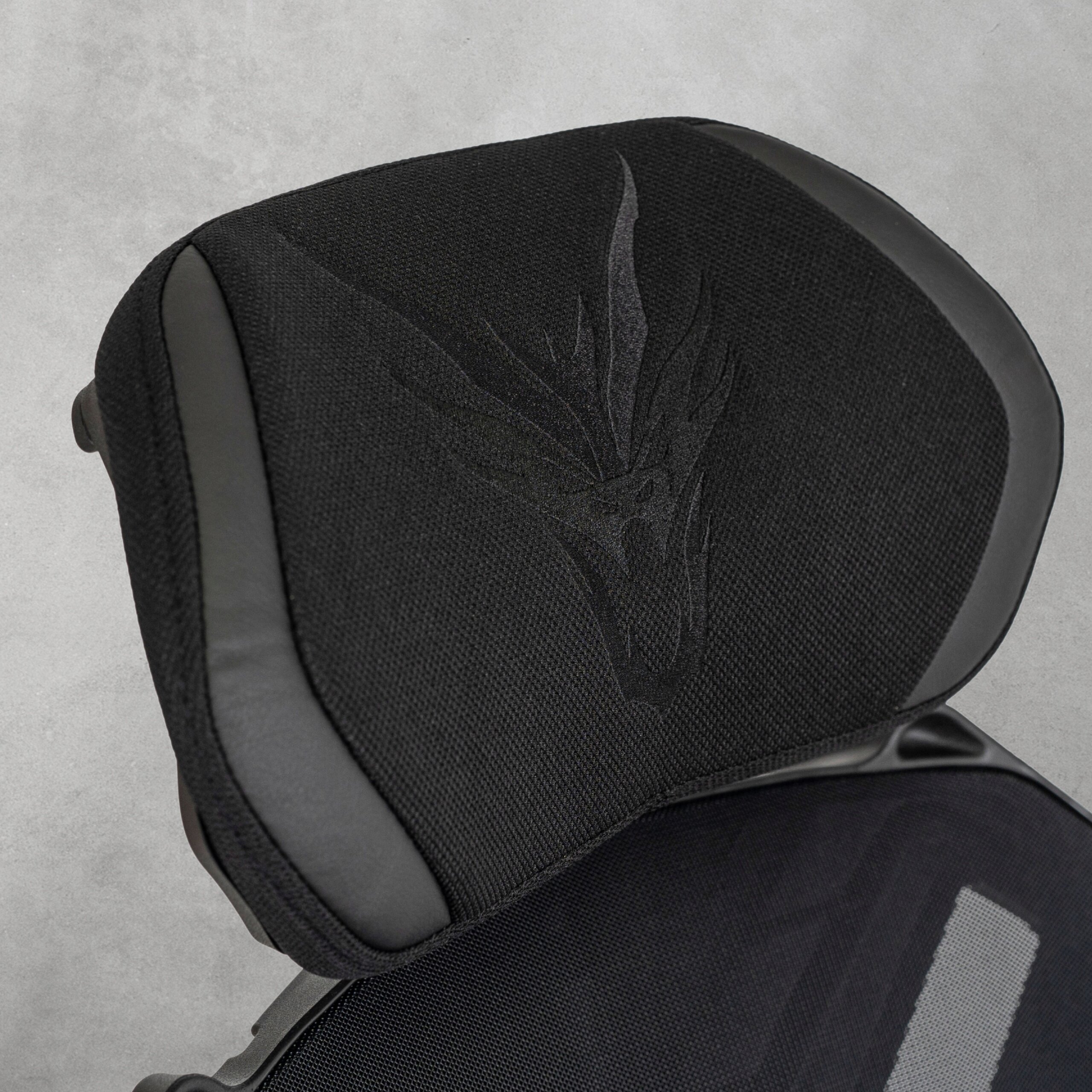 Fotel wyróżnia się wyjątkowym motywem głowy smoka, który dodaje mu charakteru i niepowtarzalnego stylu.