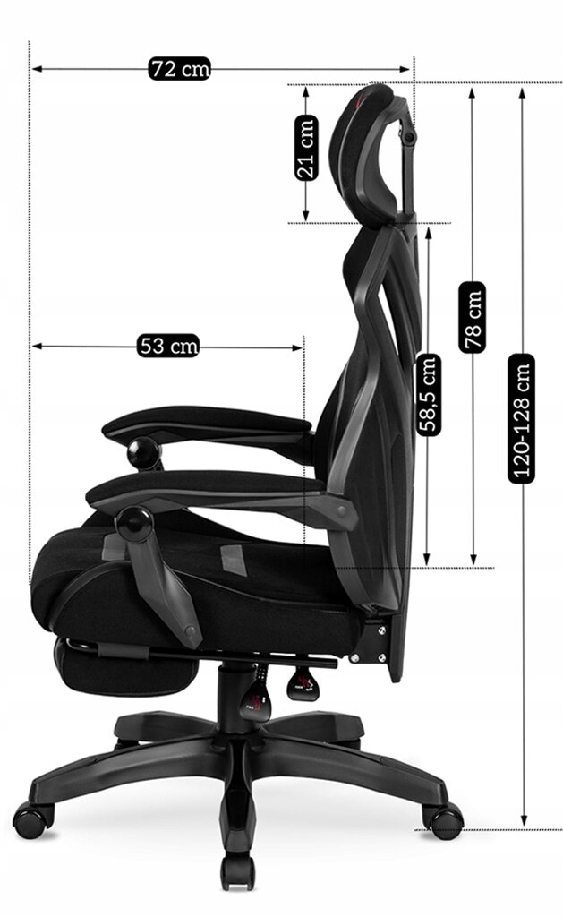 Fotel oferuje odchylenie oparcia w zakresie od 90° do 120°, z możliwością blokady, co sprawia, że idealnie sprawdza się zarówno podczas pracy (90°), jak i w chwilach relaksu w pozycji półleżącej (120°).