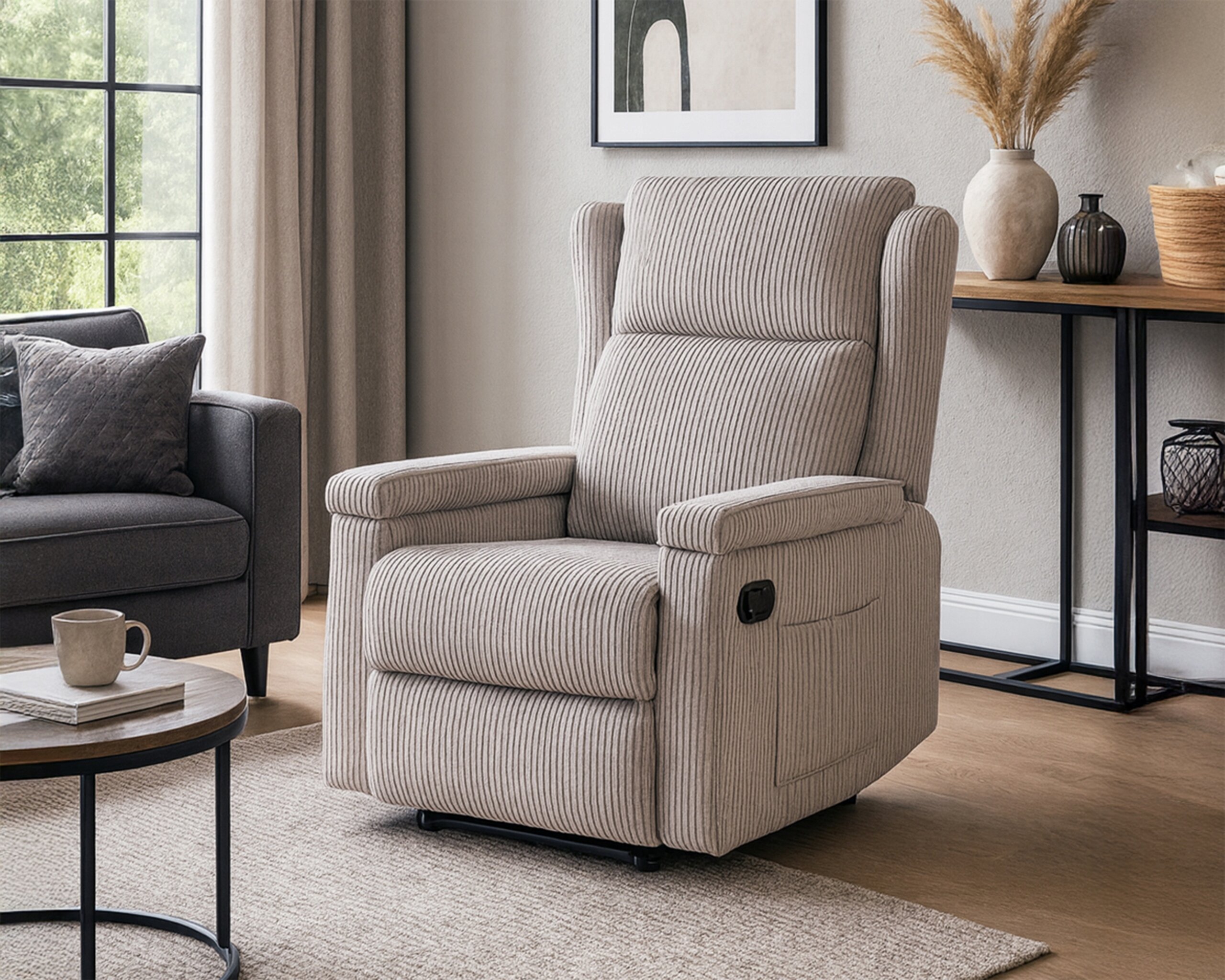 Fotel SEBASTIAN to synonim wygody i nowoczesnego stylu. Wykończony w szarej, miękkiej tapicerce ze sztruksu, świetnie komponuje się z każdym wnętrzem – od klasycznego po nowoczesne. Dzięki funkcji rozkładania, fotel zapewnia idealne warunki do odpoczynku po pracy, oglądania ulubionych filmów czy krótkiej drzemki. To połączenie elegancji, funkcjonalności i komfortu, które sprawia, że szybko staje się ulubionym miejscem relaksu w domu.