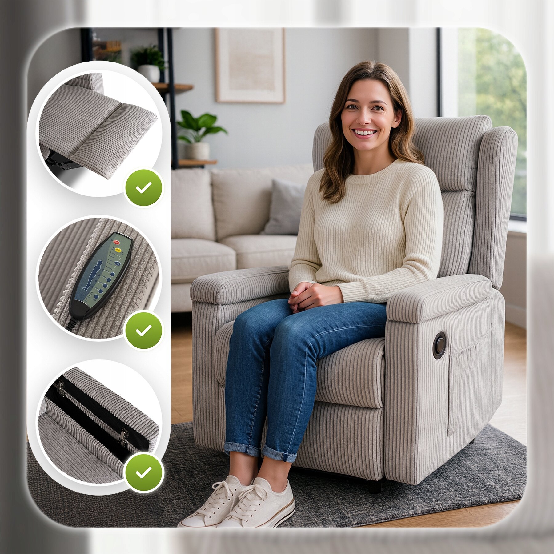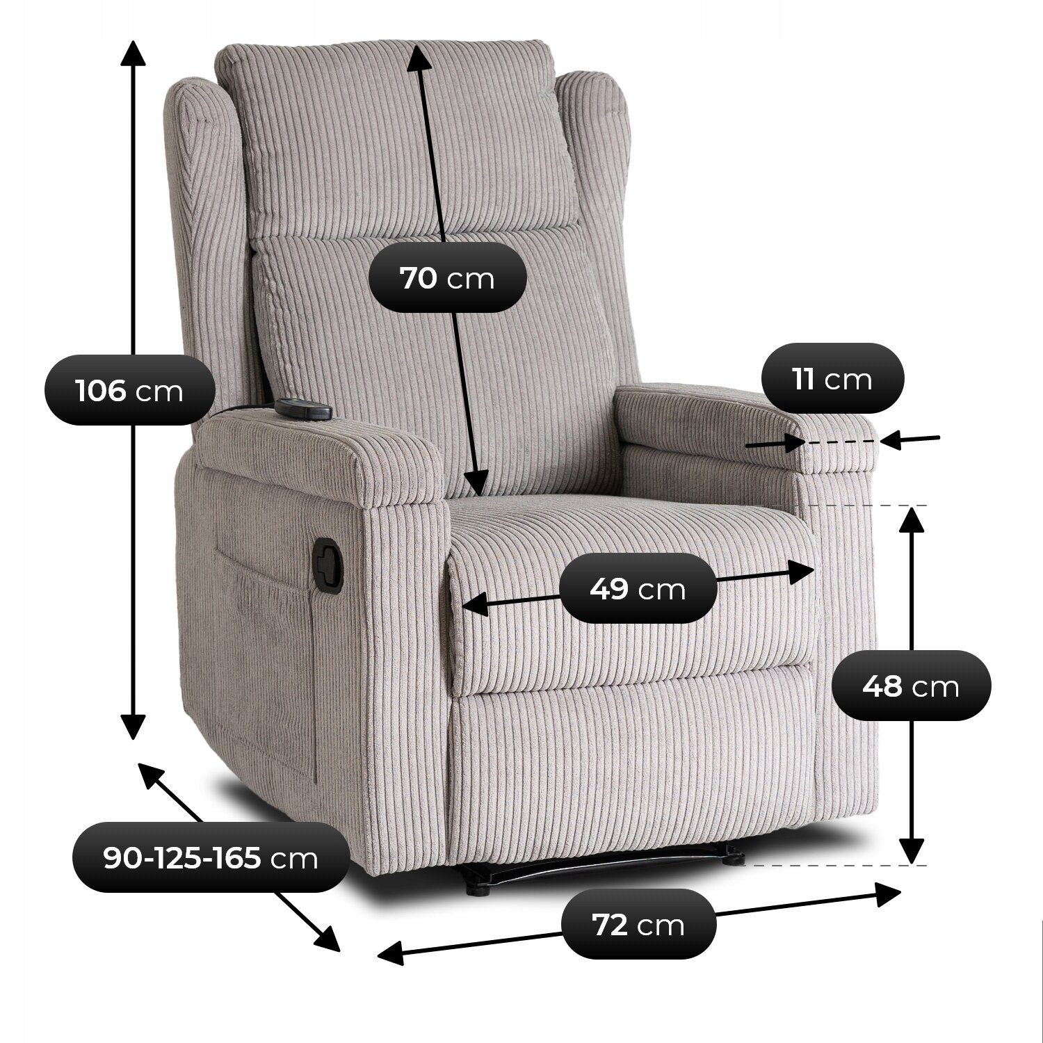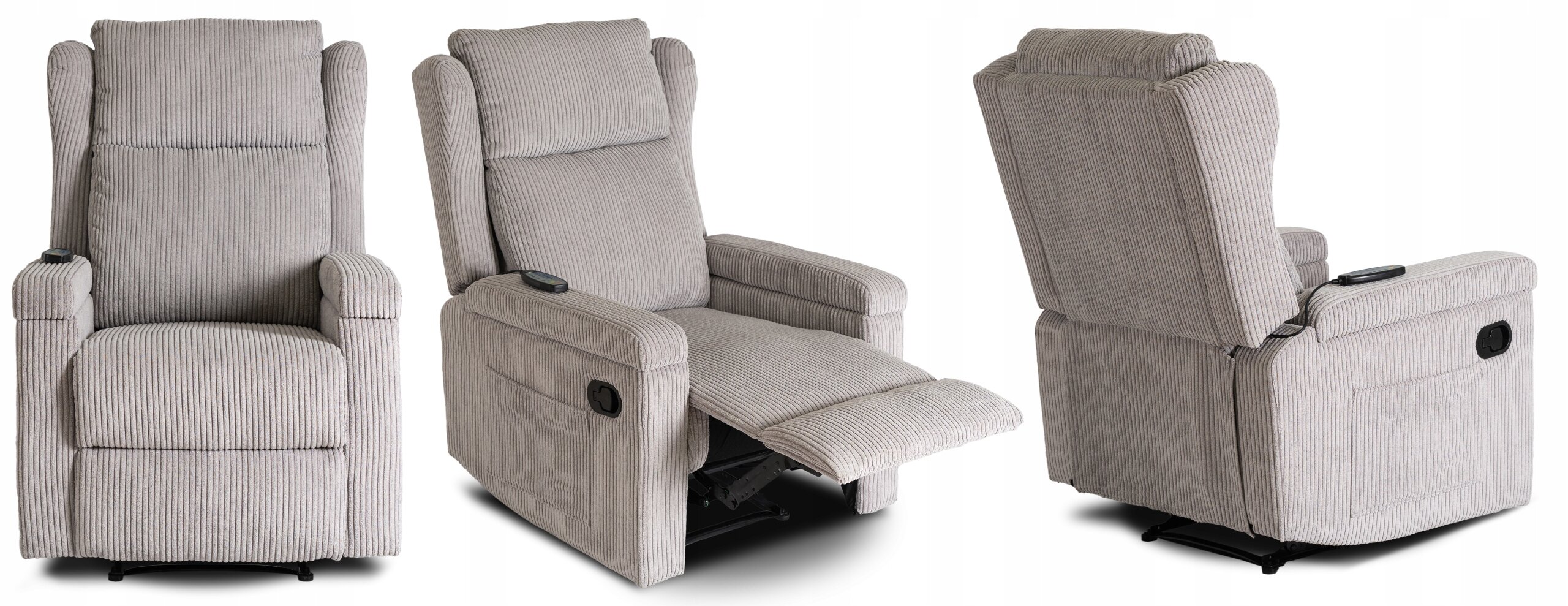 ✨ Fotel Masujący Rozkładany Wypoczynkowy Do Salonu Sztruks Szary SEBASTIAN