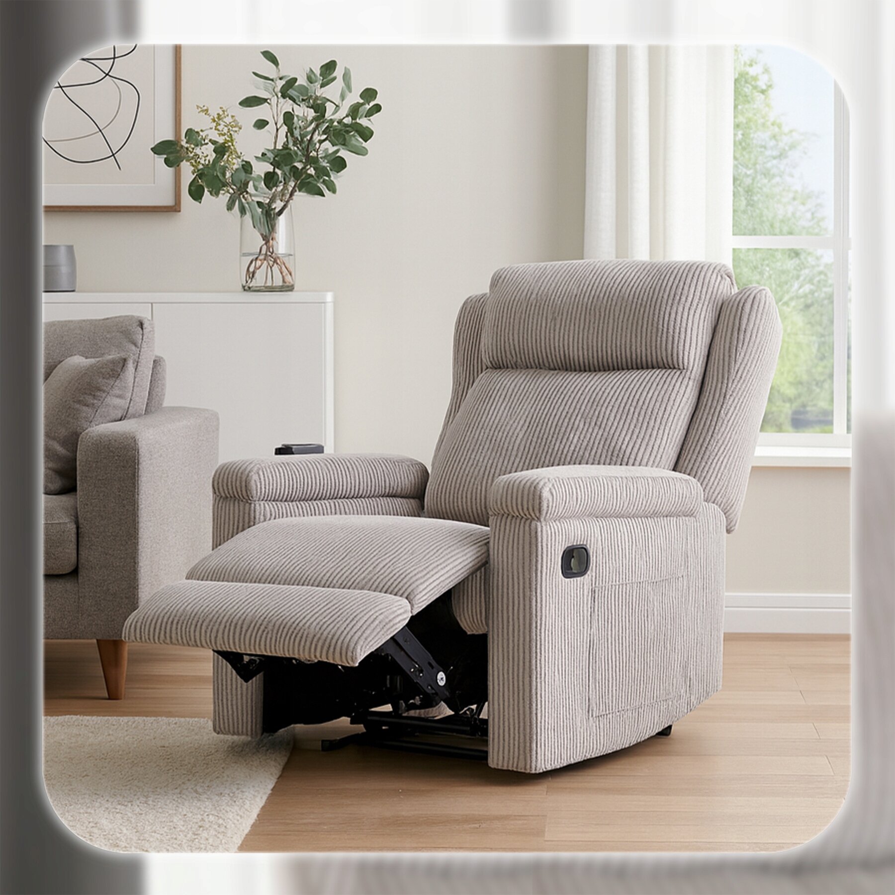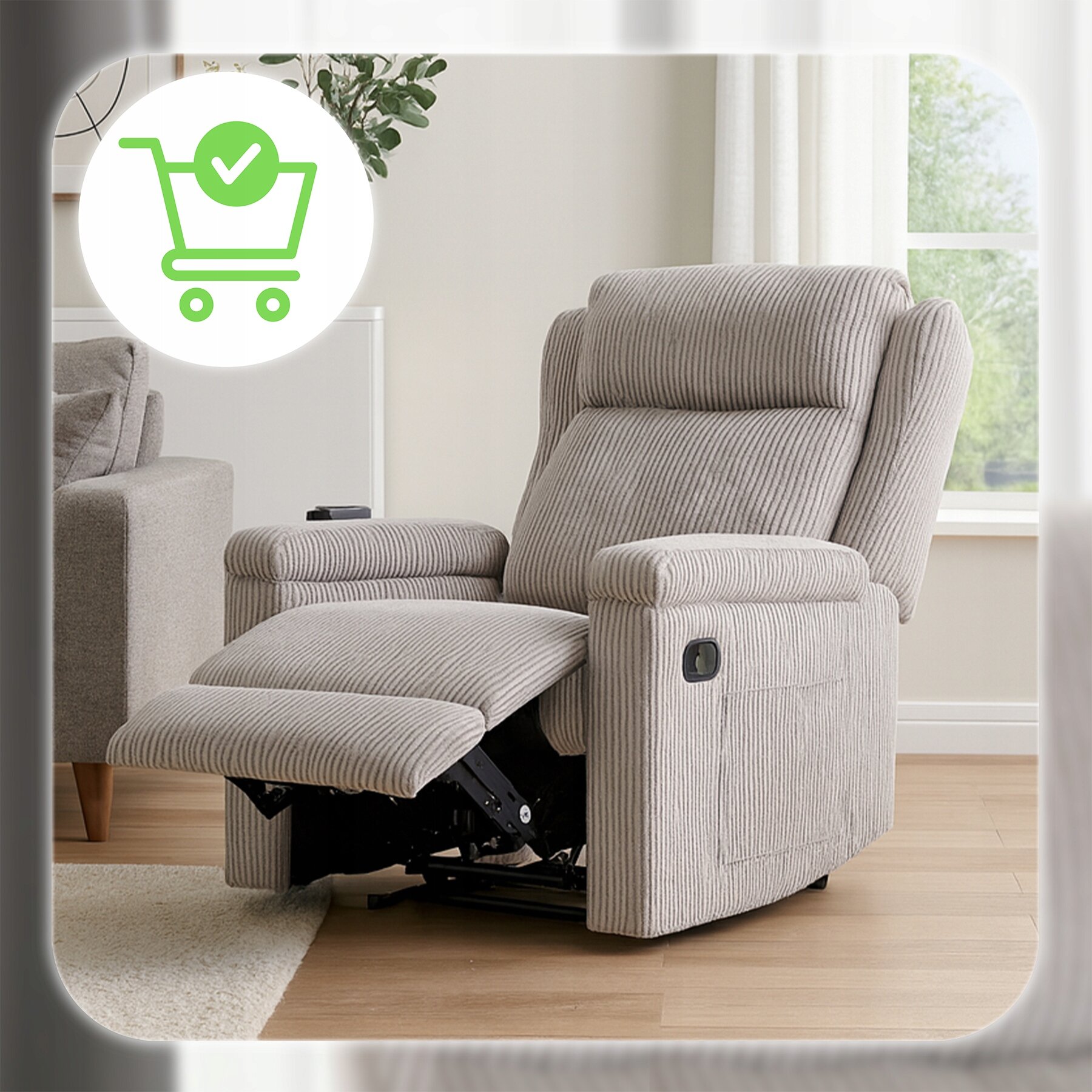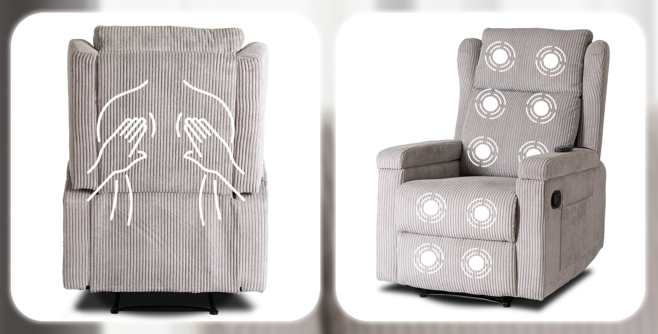 ✨ Fotel Masujący Rozkładany Wypoczynkowy Do Salonu Sztruks Szary SEBASTIAN