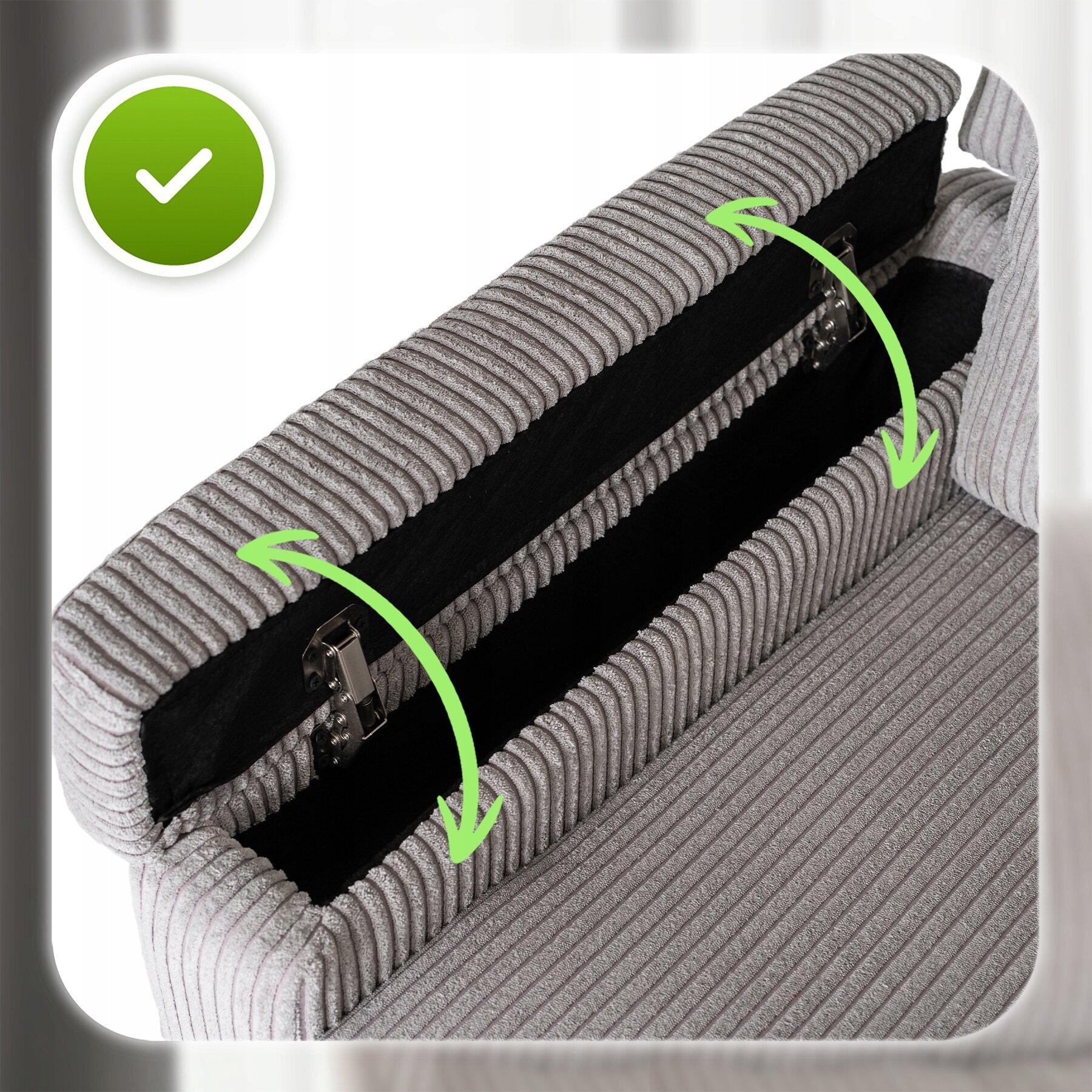 Oba podłokietniki można otworzyć, uzyskując wtedy dostęp do schowków. Pomysłowe i dyskretne rozwiązanie dla Twojej wygody. W schowkach można trzymać gazety, książki i tym podobne przedmioty lub akcesoria.