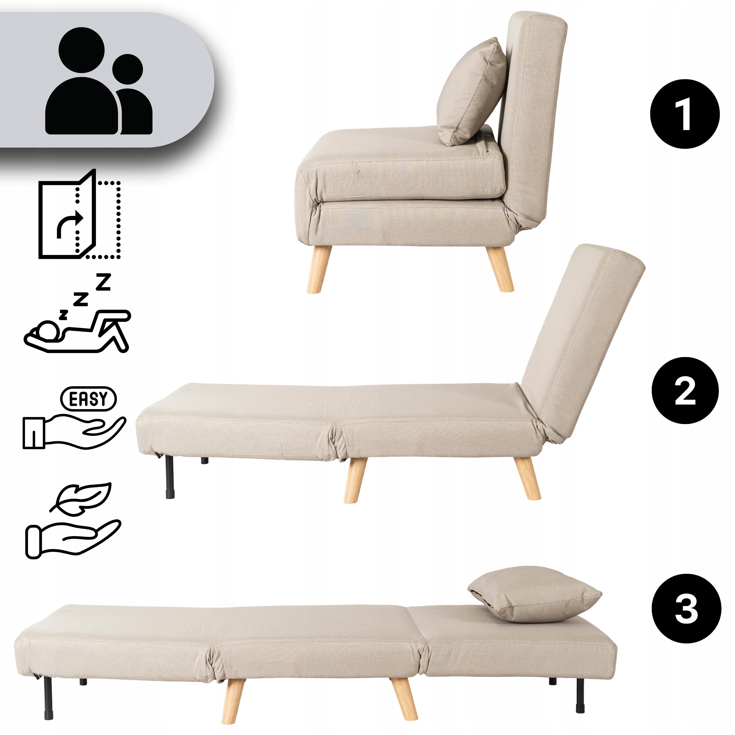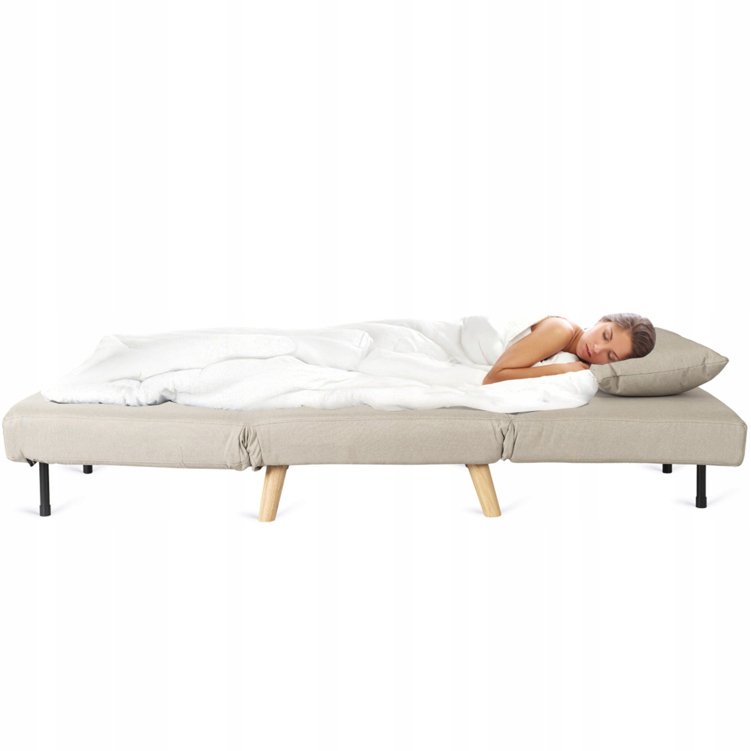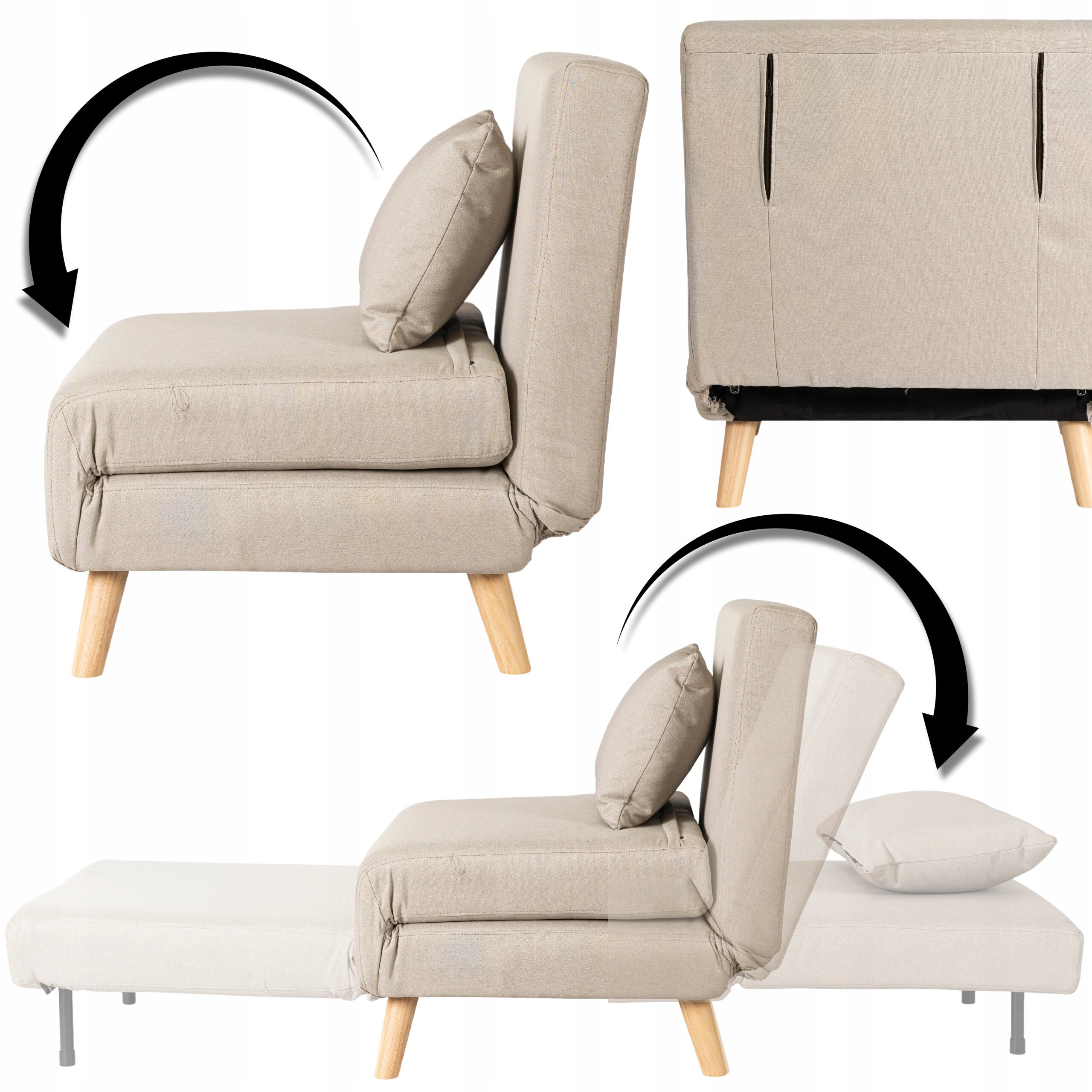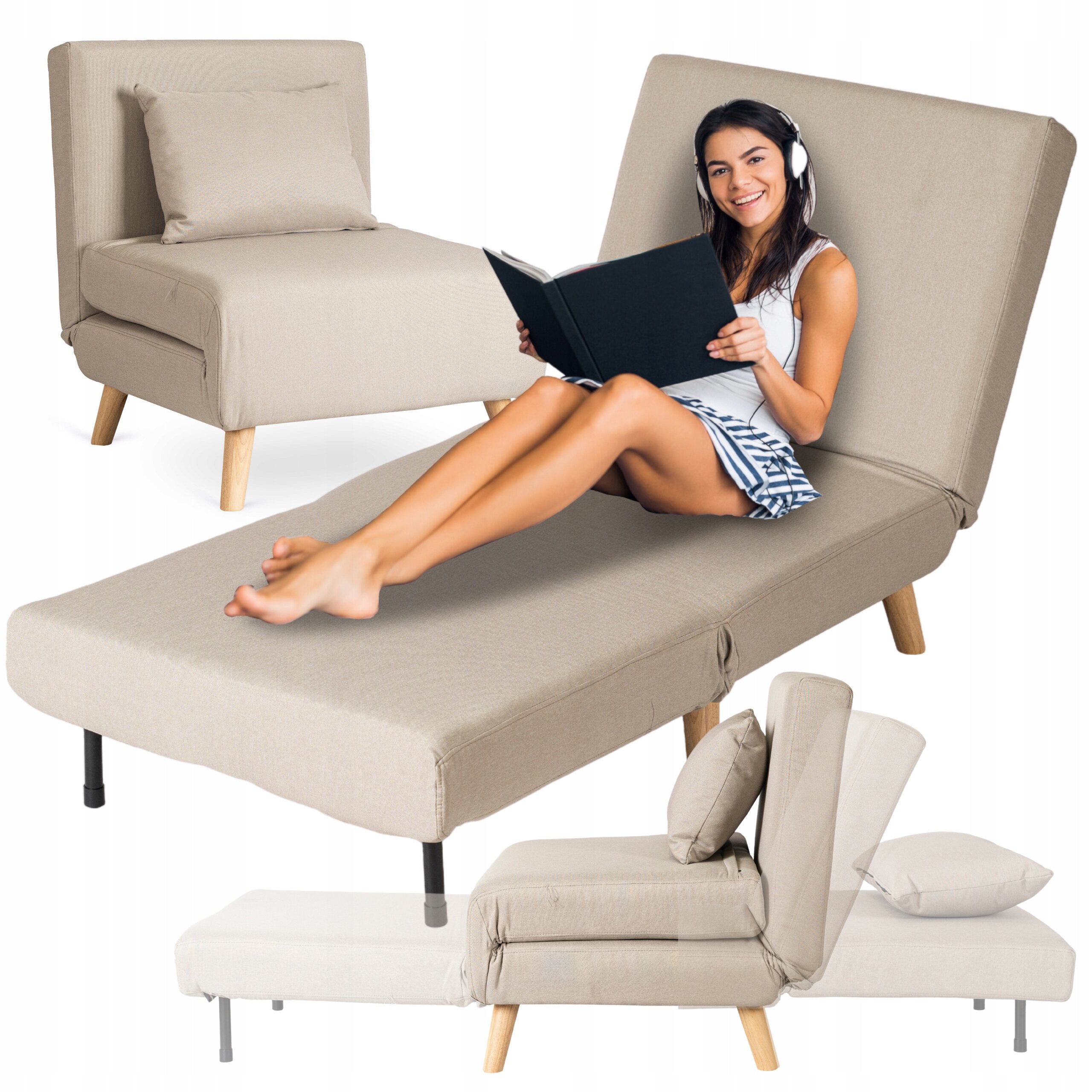 Fotel Rozkładany Do Spania Leżak Łóżko Sofa Jednoosobowa Beżowy MARRY ⭐⭐⭐⭐⭐