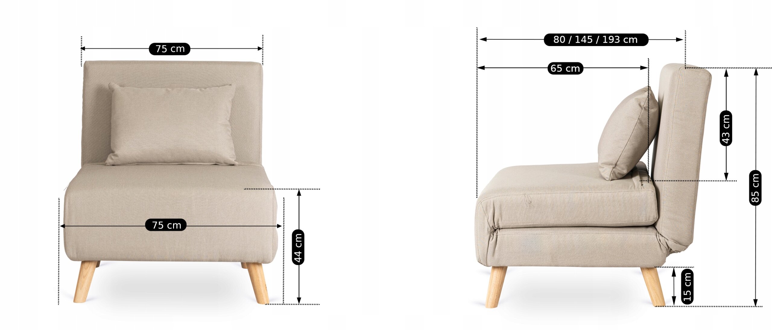 Głębokość fotela po rozłożeniu: 145/193 cm
