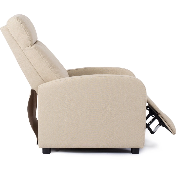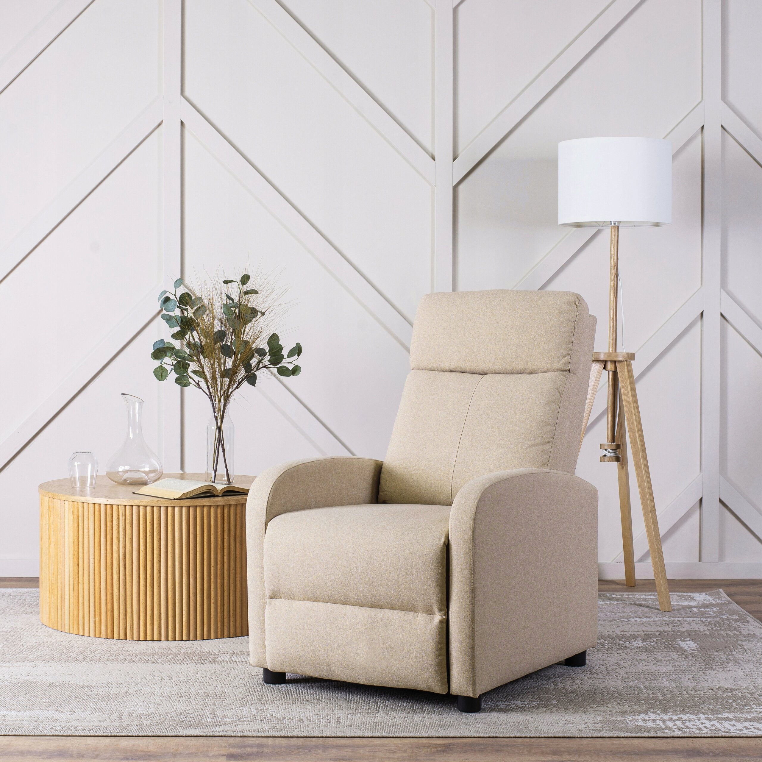 Fotel rozkładany Danny łączy wygodę i funkcjonalność. Oferuje dwie pozycje rozkładania – półleżącą i leżącą, dzięki czemu idealnie dopasujesz go do swoich potrzeb, czy to do relaksu, czytania, czy drzemki. Wykonany z trwałej tapicerki, jest łatwy w utrzymaniu czystości i zapewnia komfort przez wiele lat. Jego klasyczny beżowy kolor i smukła sylwetka pasują do każdego wnętrza.
