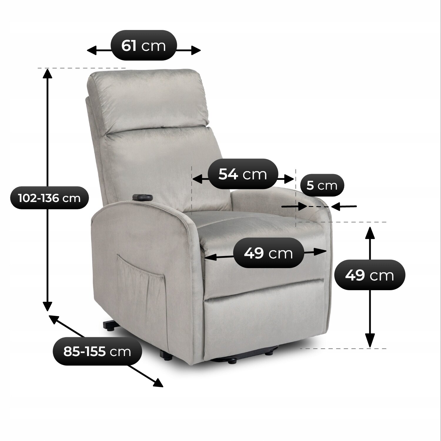 - Głębokość fotela – 85–155 cm