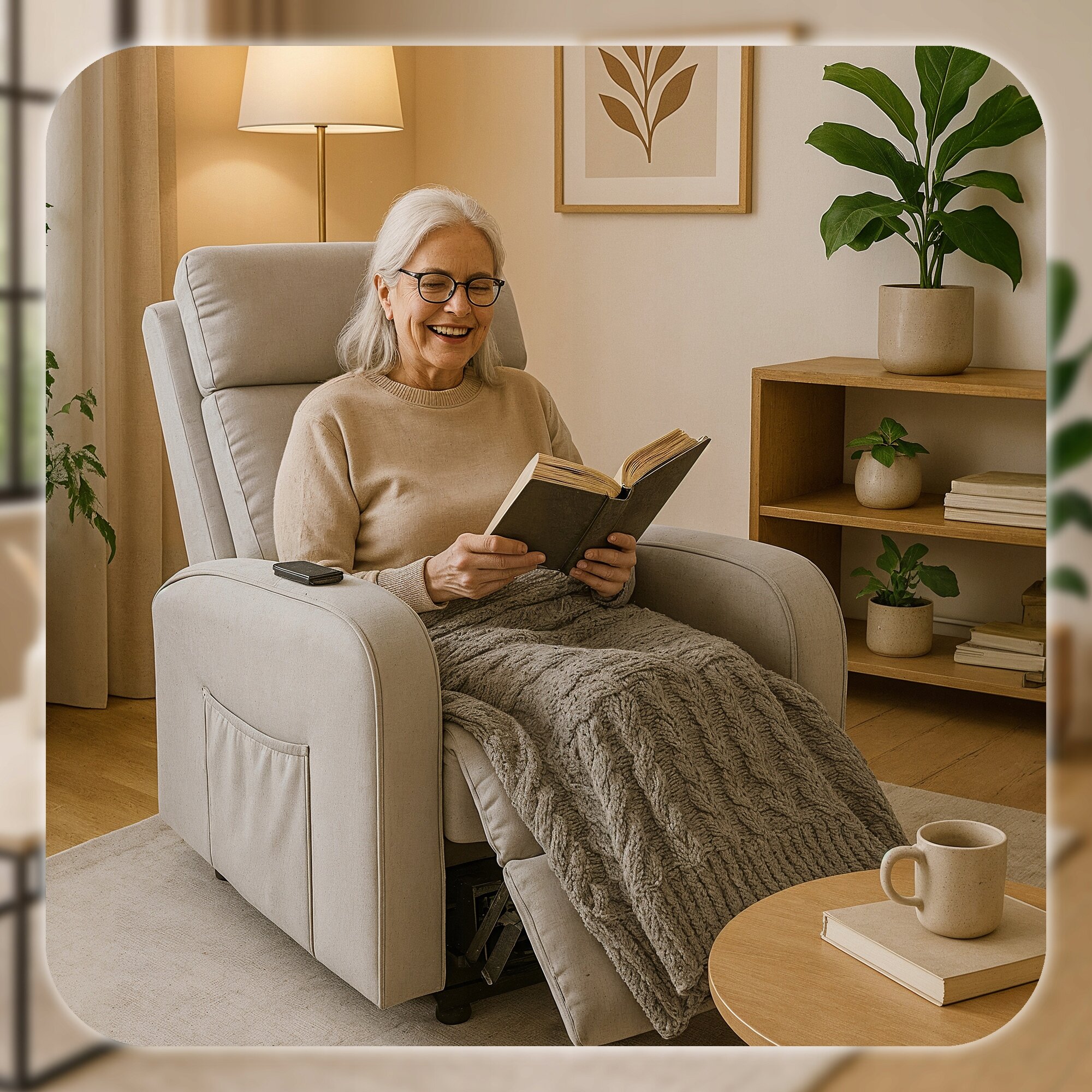 Fotel COLTON posiada funkcję podnoszenia, która delikatnie unosi siedzisko, umożliwiając wstawanie w sposób płynny i wygodny. Bezpieczny mechanizm zapewnia stabilność w trakcie ruchu, a sterowanie intuicyjnym pilotem gwarantuje pełen komfort obsługi.