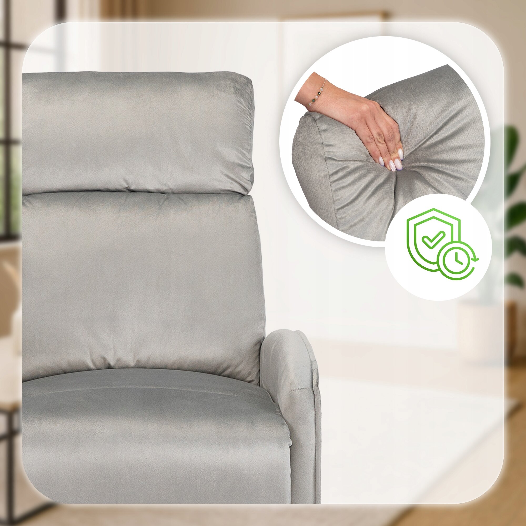 - Fotel Rozkładany z Podnoszeniem Podnóżkiem Welur Dla Seniora Szary COLTON