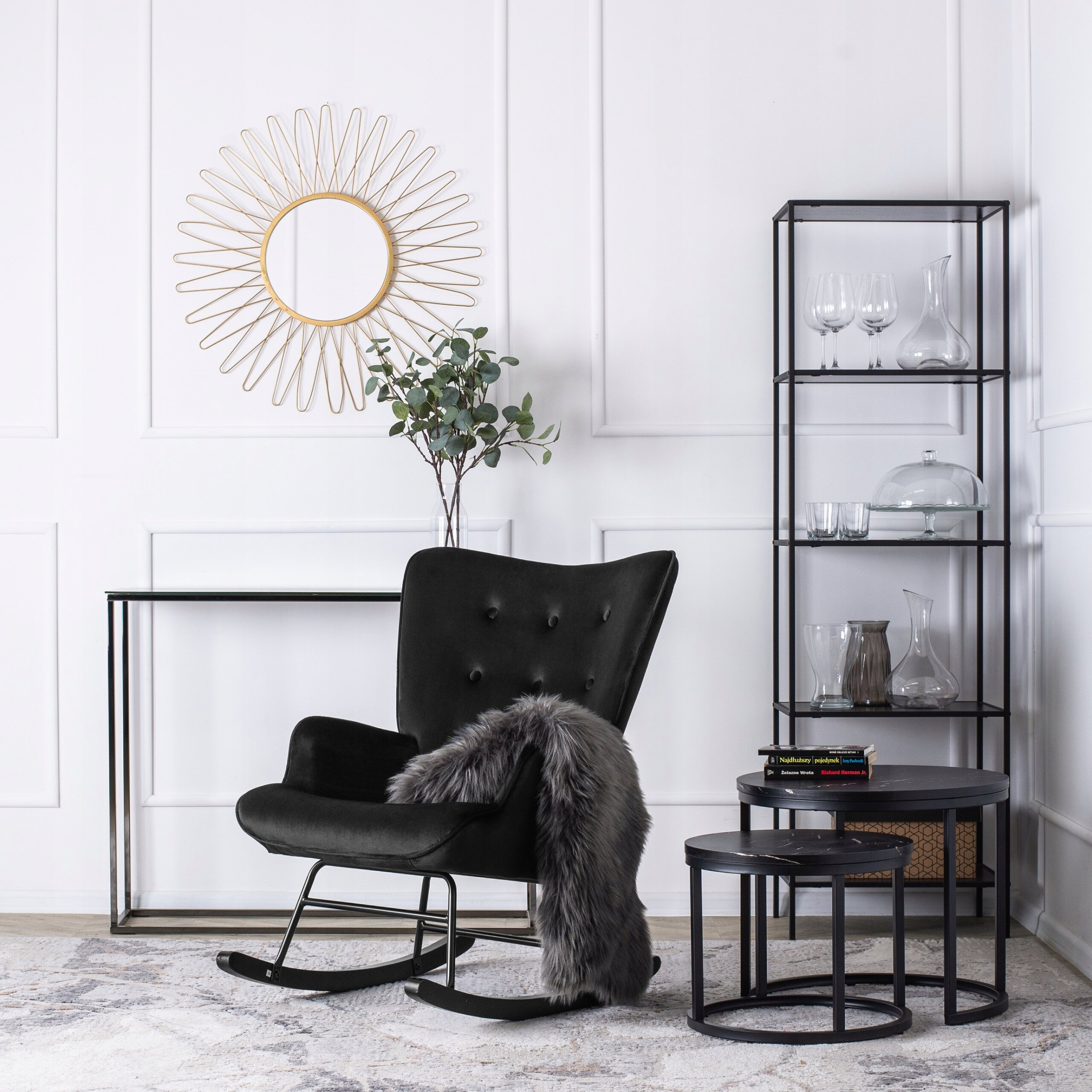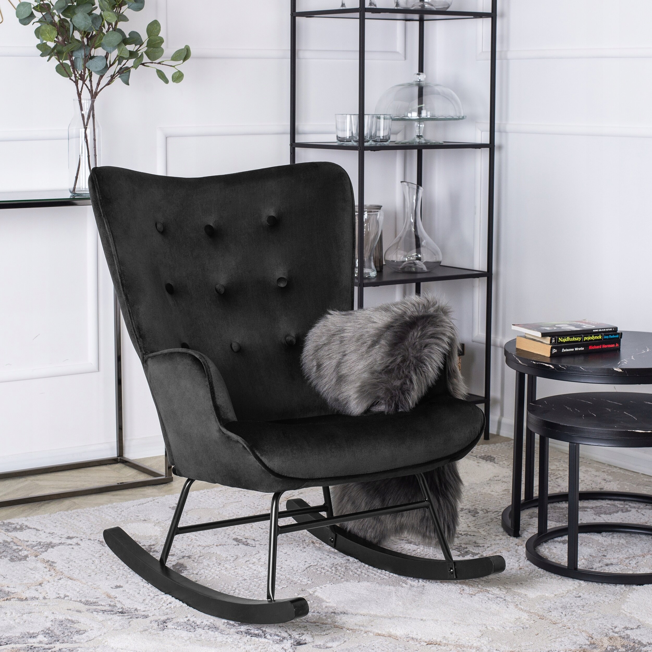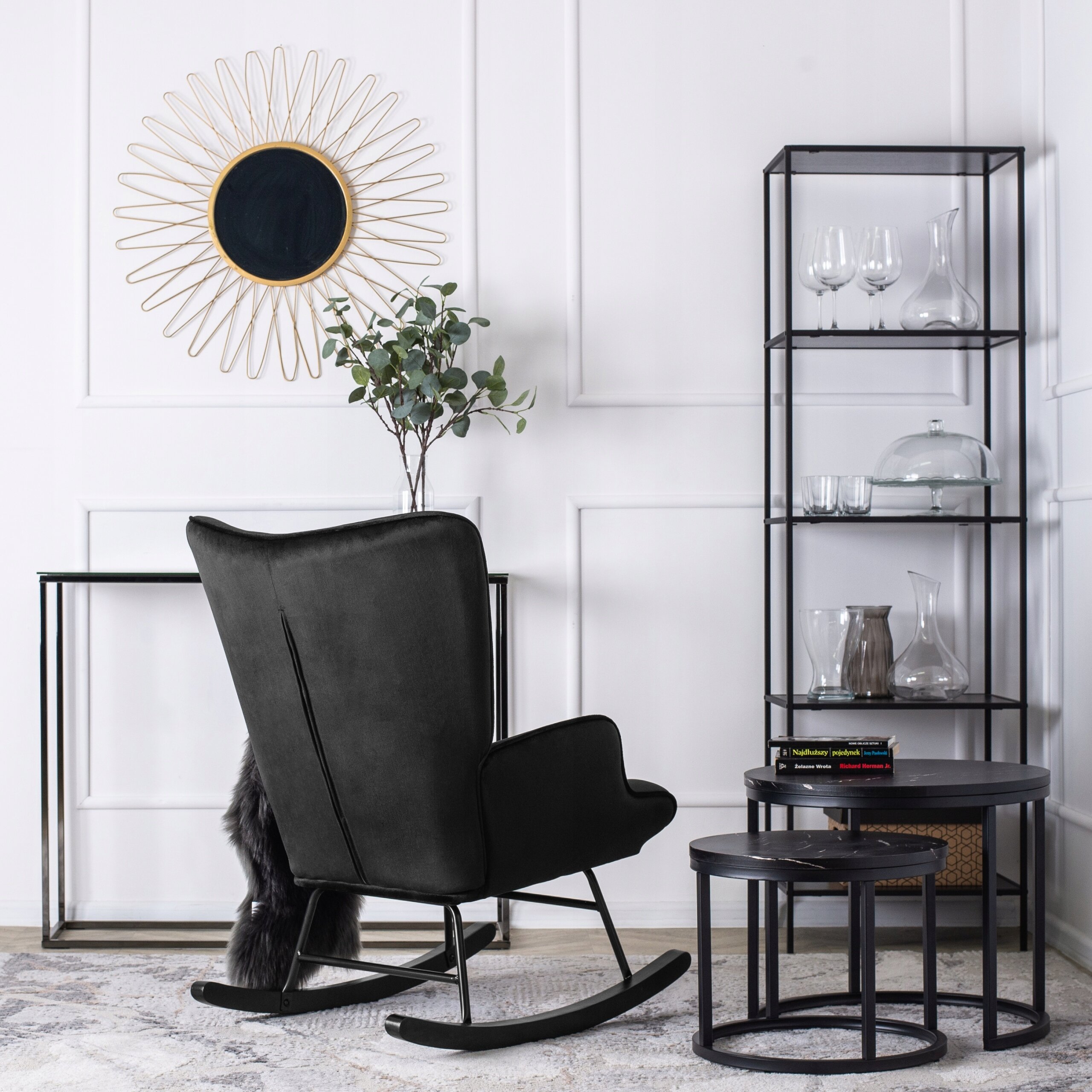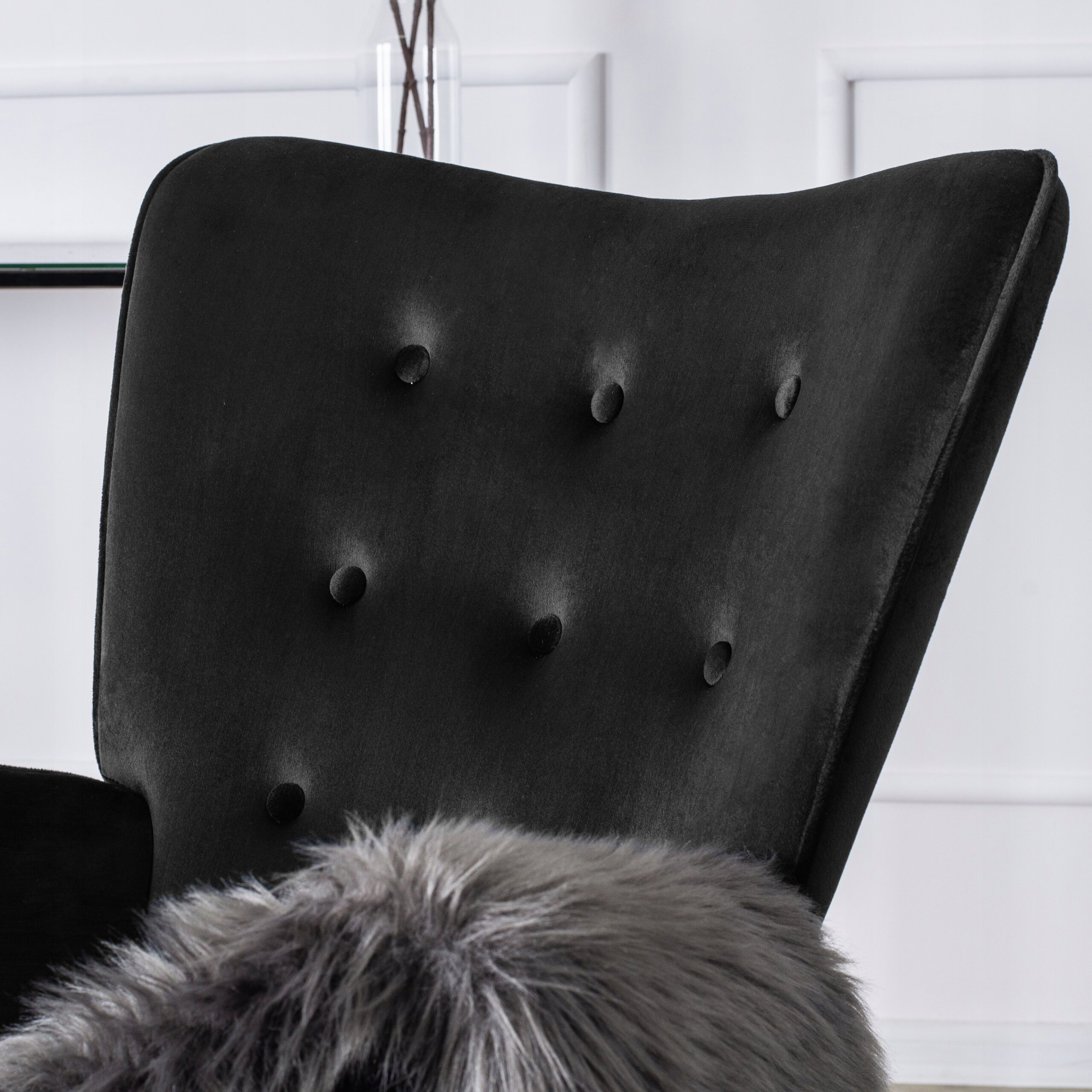 Fotel Uszak Bujany Wypoczynkowy Do Salonu Welurowy Skandynawski Czarny ELIS