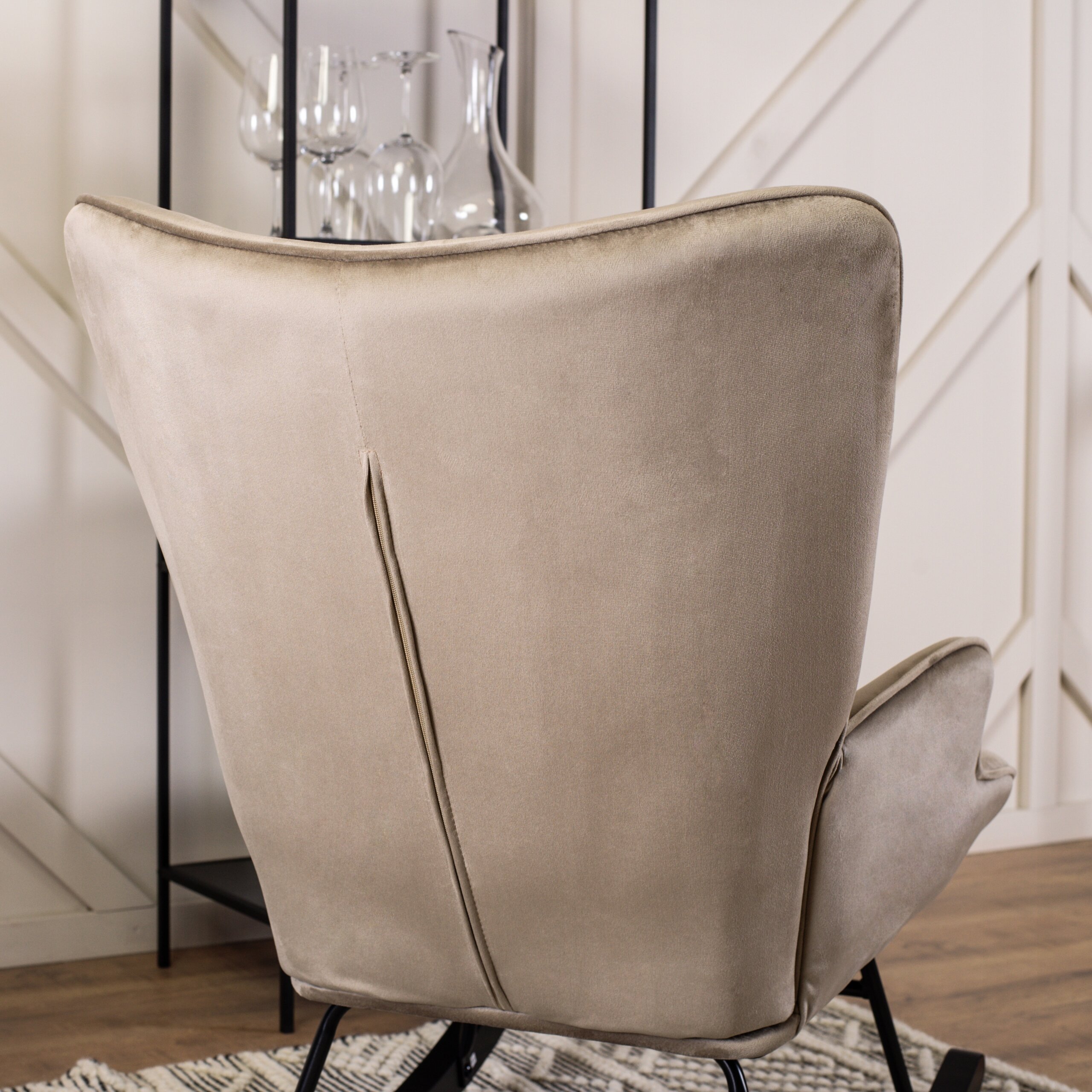 - Fotel Uszak Bujany Wypoczynkowy Welurowy Do Salonu Velvet Beżowy ELIS