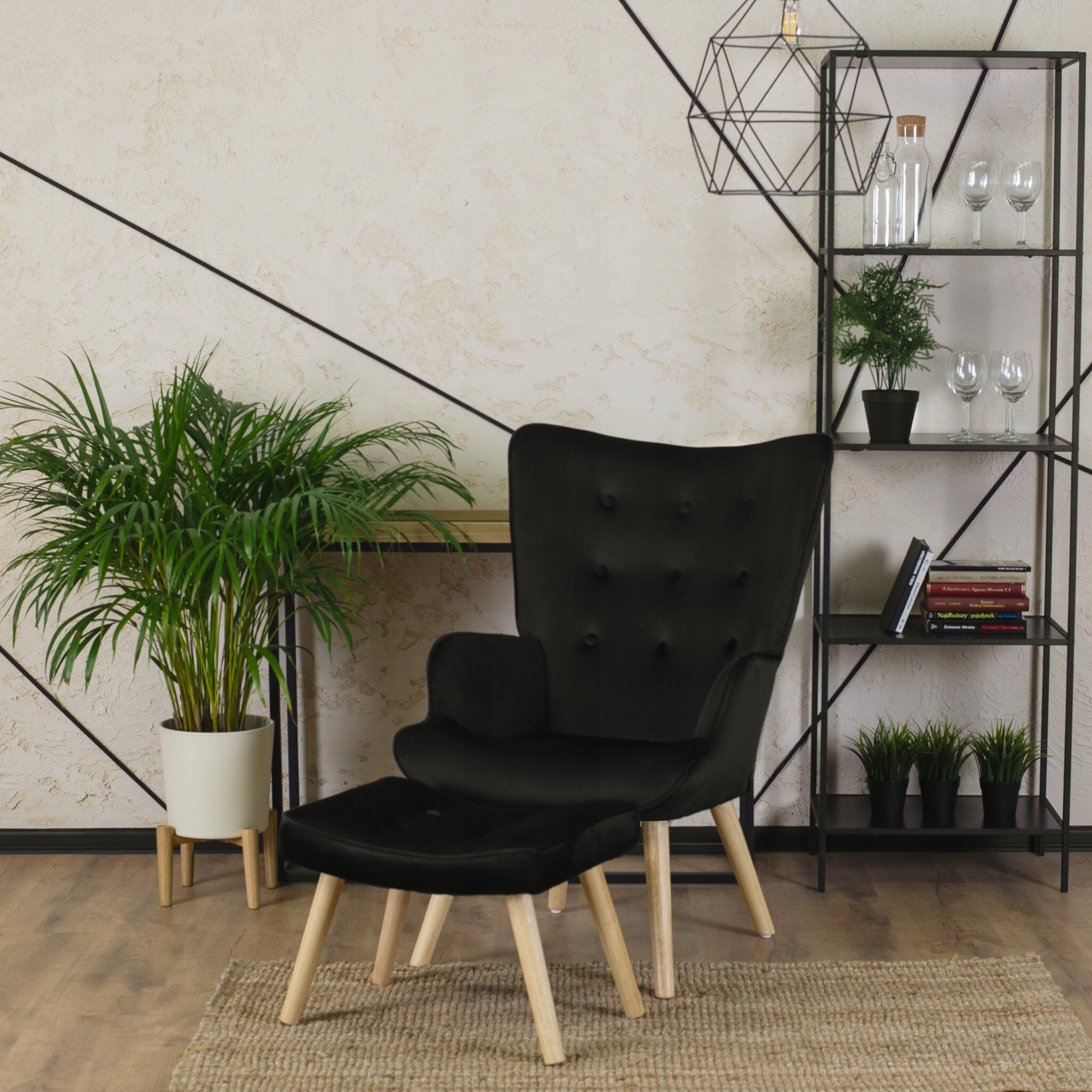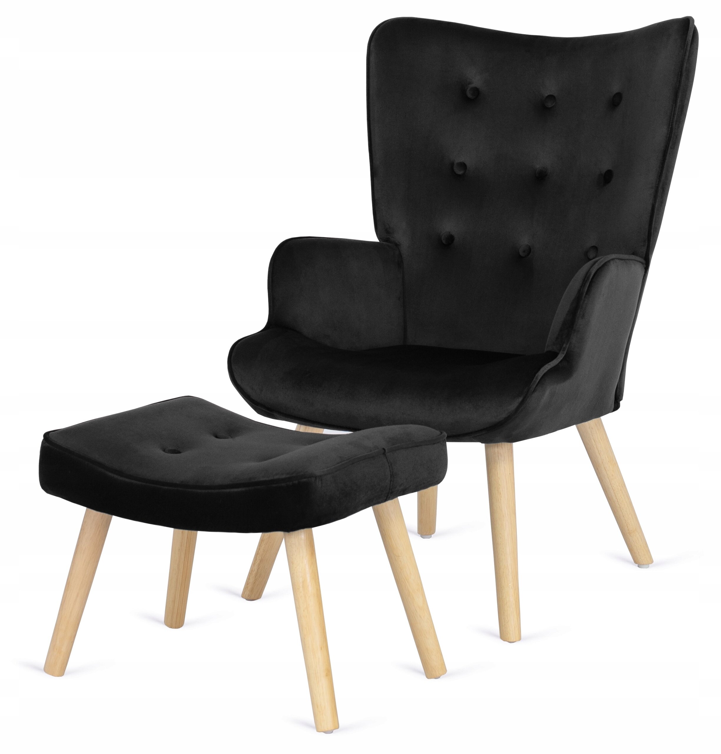 - Fotel Uszak Wypoczynkowy z Podnóżkiem do Karmienia Welurowy Czarny LOZANO