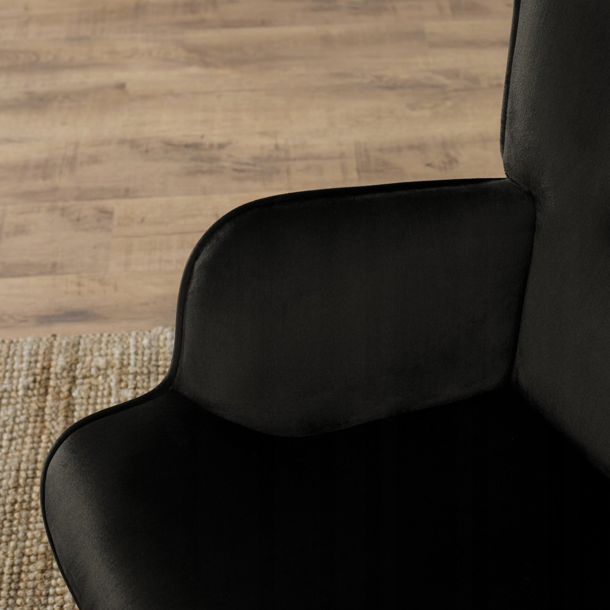 Fotel Uszak Wypoczynkowy z Podnóżkiem do Karmienia Welurowy Czarny LOZANO ⭐⭐⭐⭐⭐