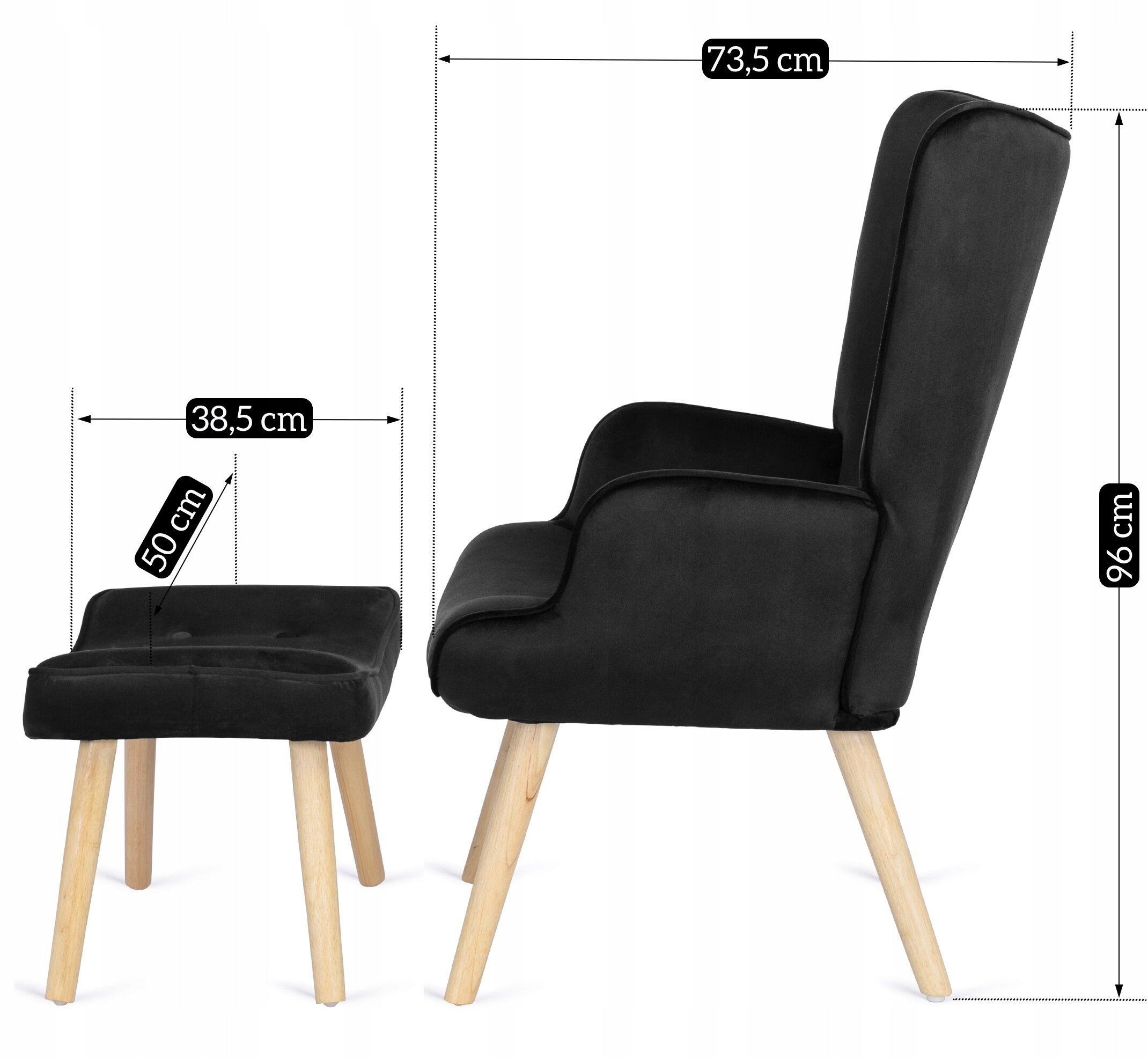 ⭐ Wygoda - fotel ma wolnostojący podnóżek, dzięki któremu można swobodnie wyprostować nogi. Podłokietniki oraz wypełnienie z pianki tapicerskiej.