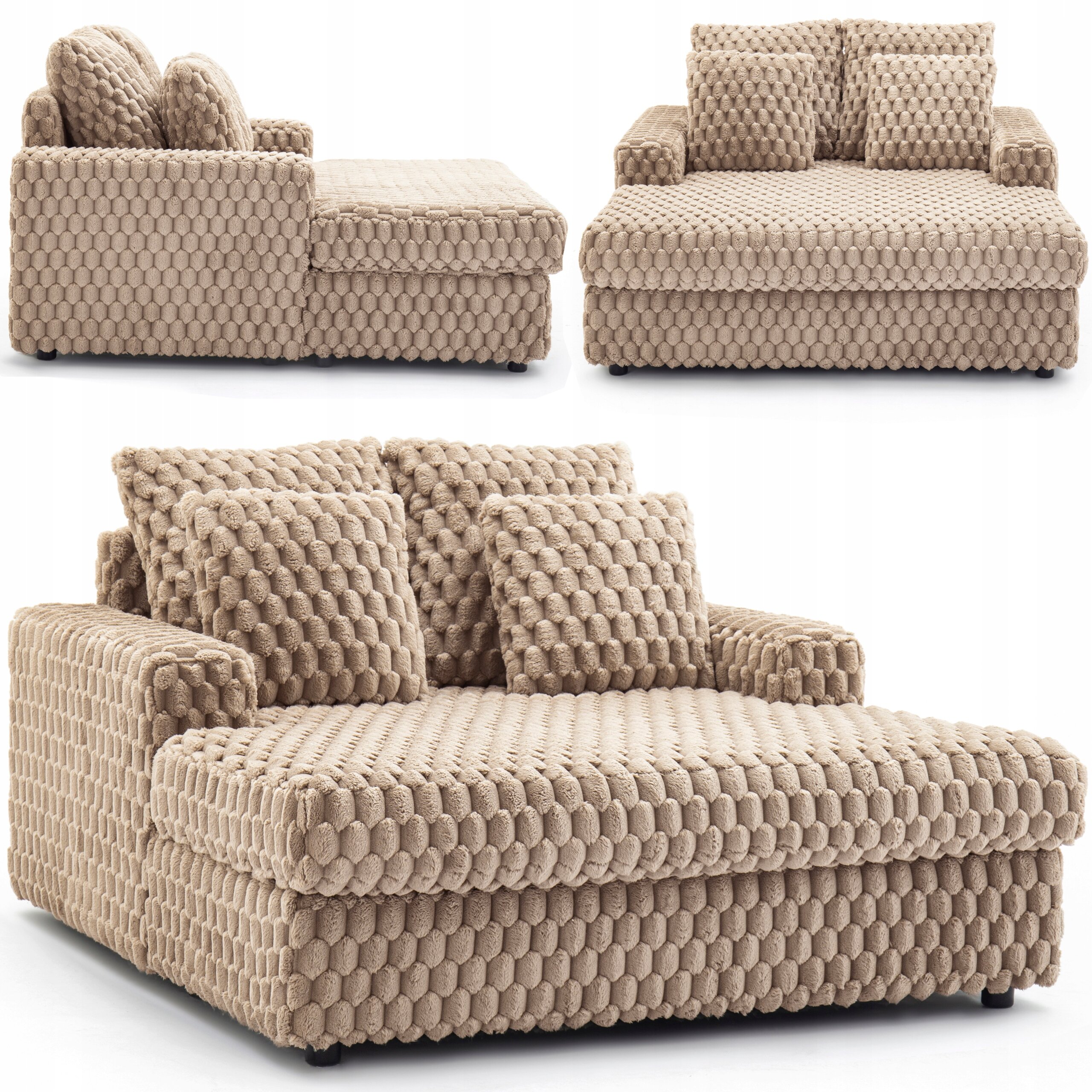 - Fotel Wypoczynkowy Kanapa Sofa do Spania Salonu Welur Pluszowy KOBEL Beżowy