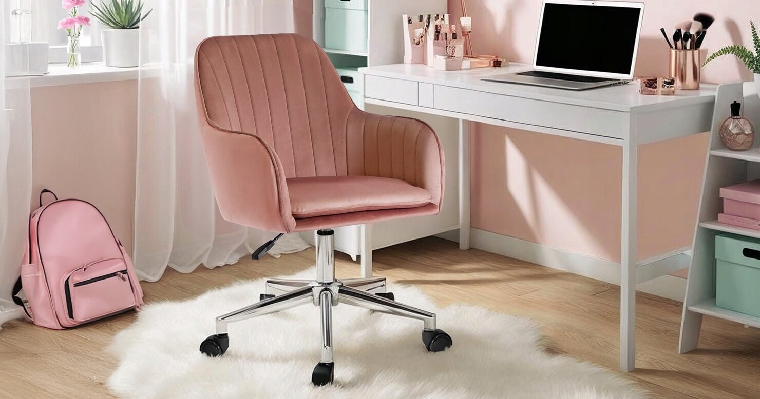 - Krzesło Dla Dzieci Obrotowe Fotel Do Biurka Toaletki Welurowe TOM Różowy