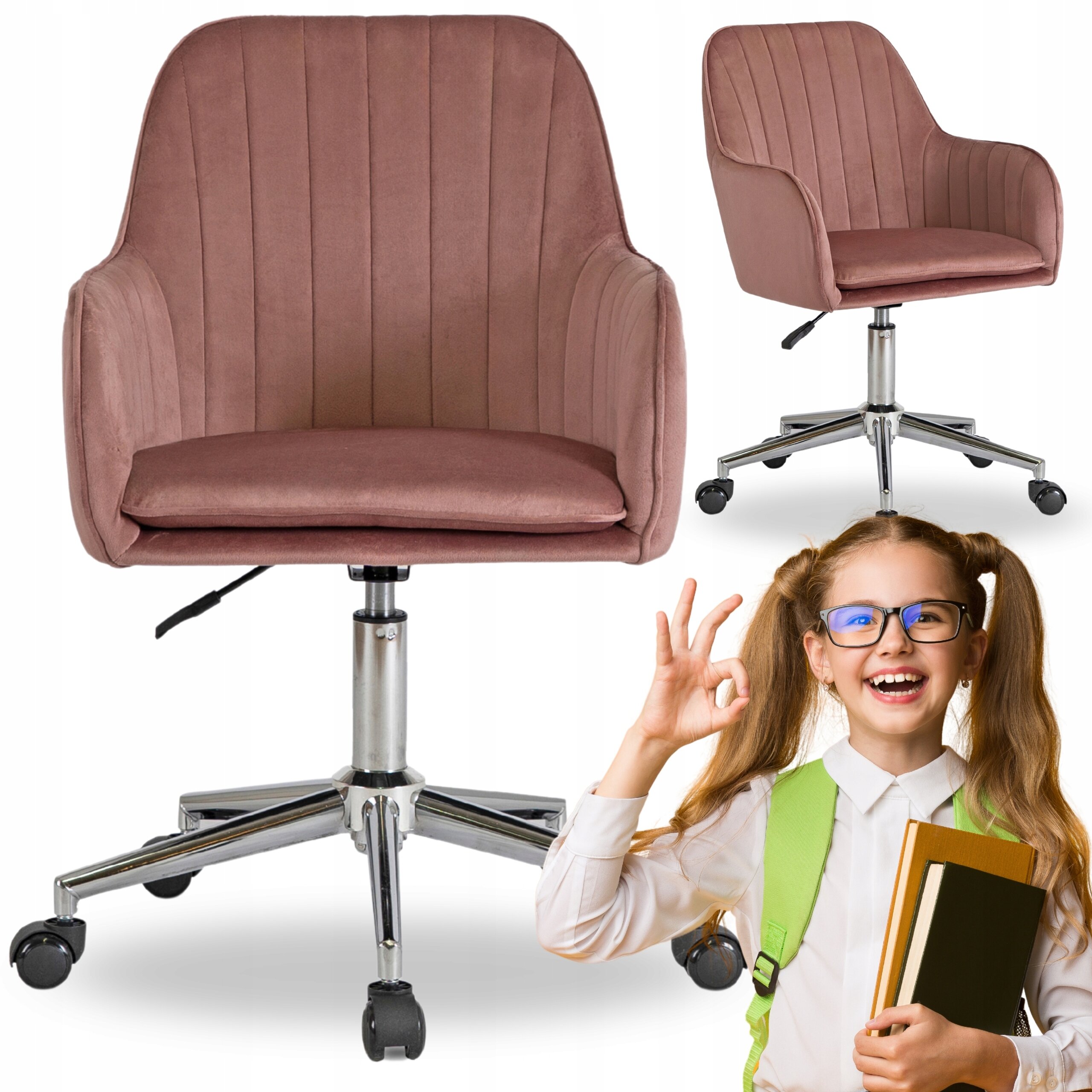 Krzesło Dla Dzieci Obrotowe Fotel Do Biurka Toaletki Welurowe TOM Różowy ⭐⭐⭐⭐⭐