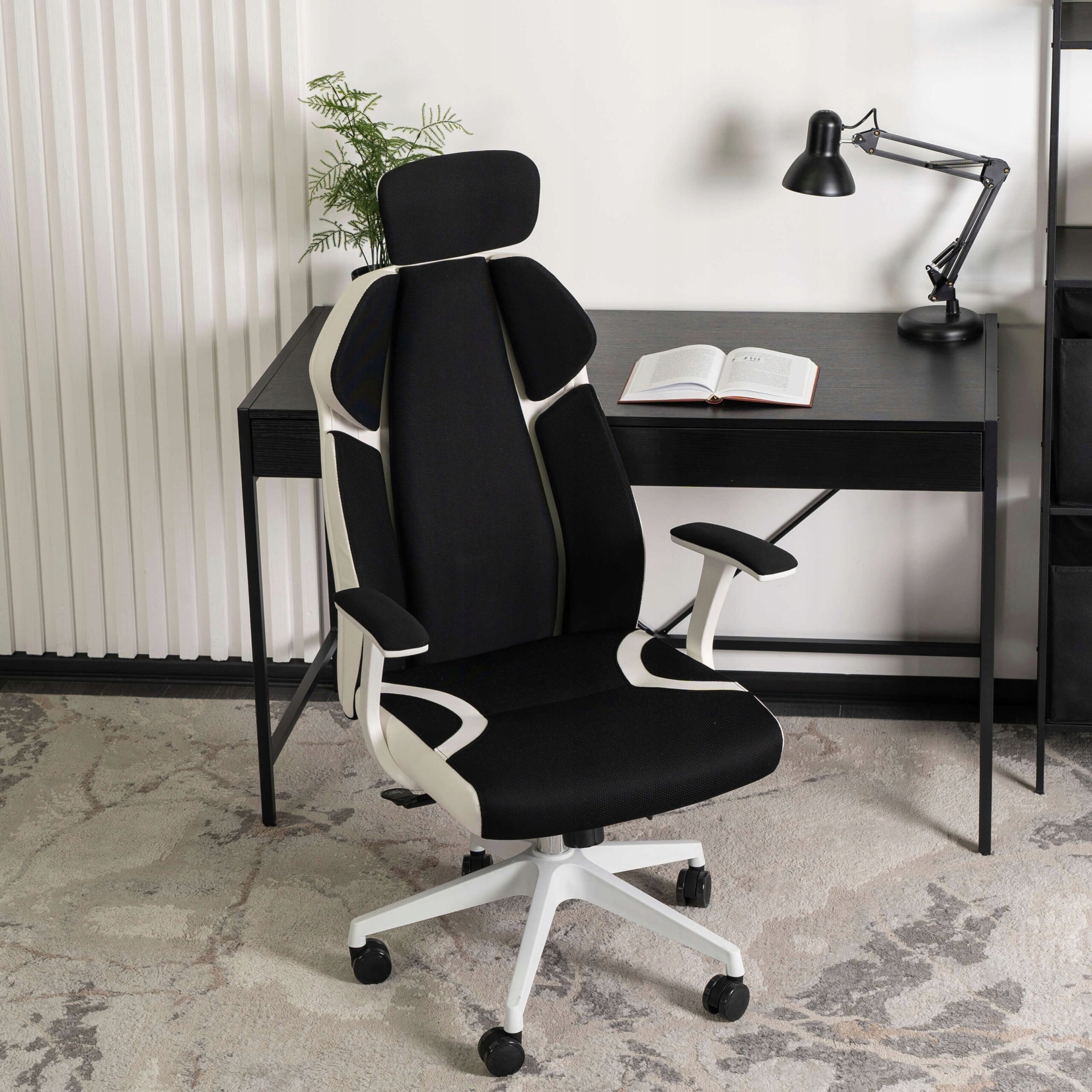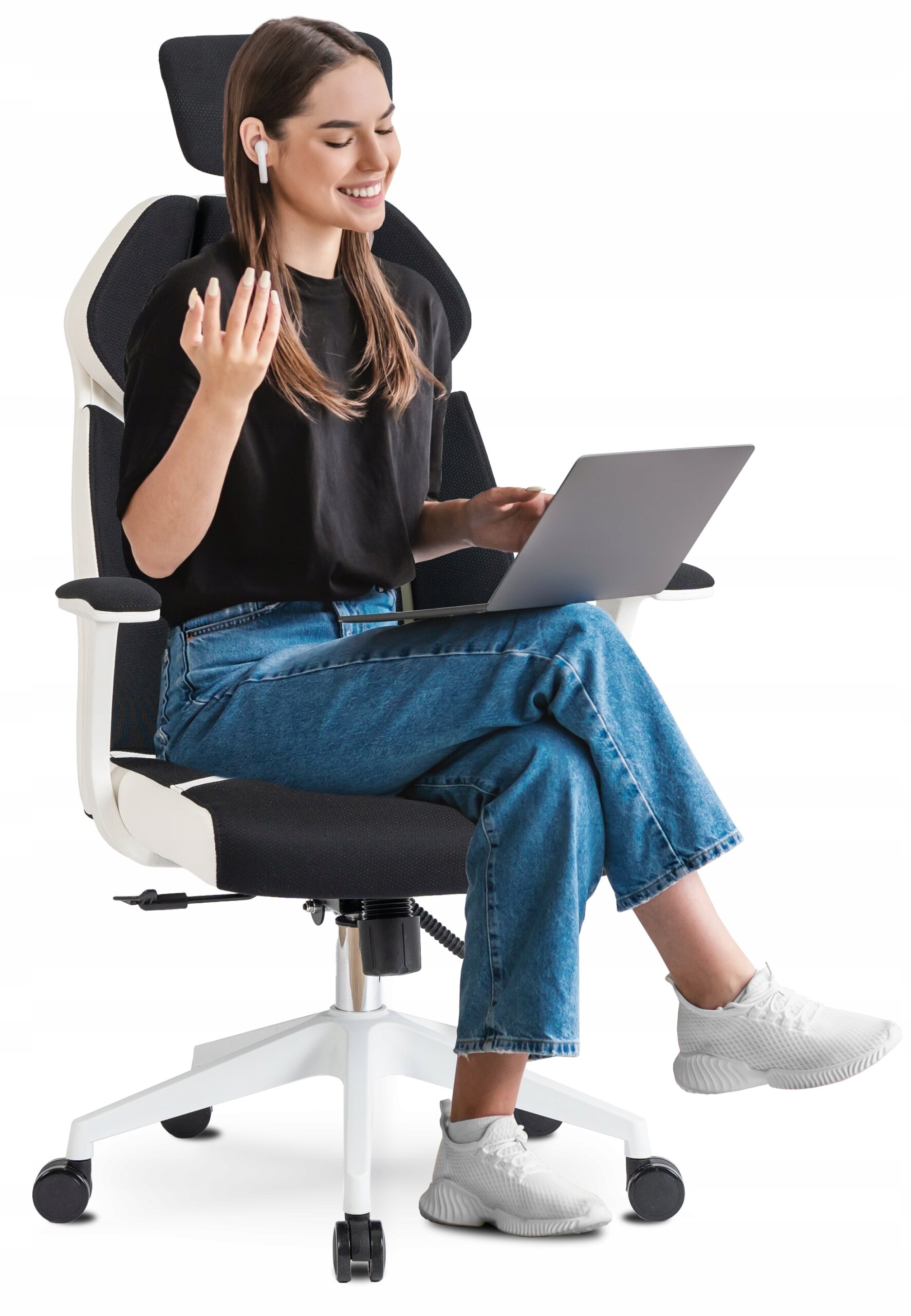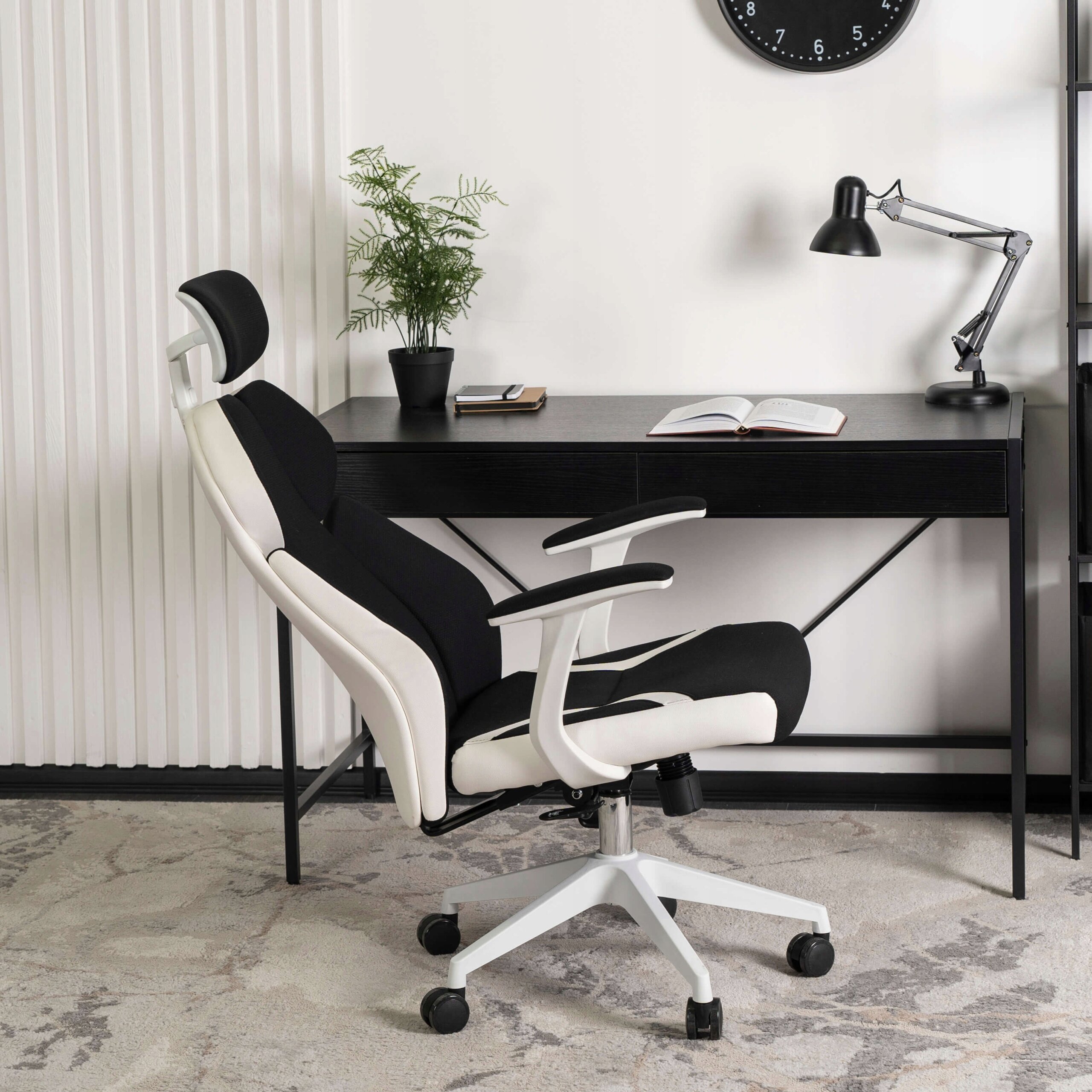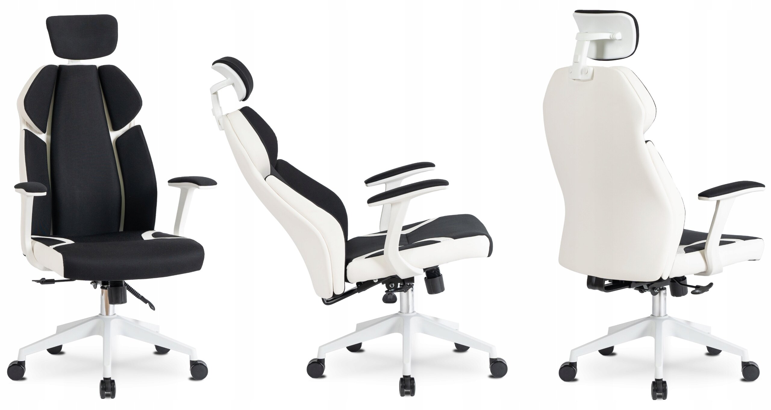 - Krzesło Obrotowe Biurowe Fotel Ergonomiczny Obrotowy Biały Czarny DUNCAN