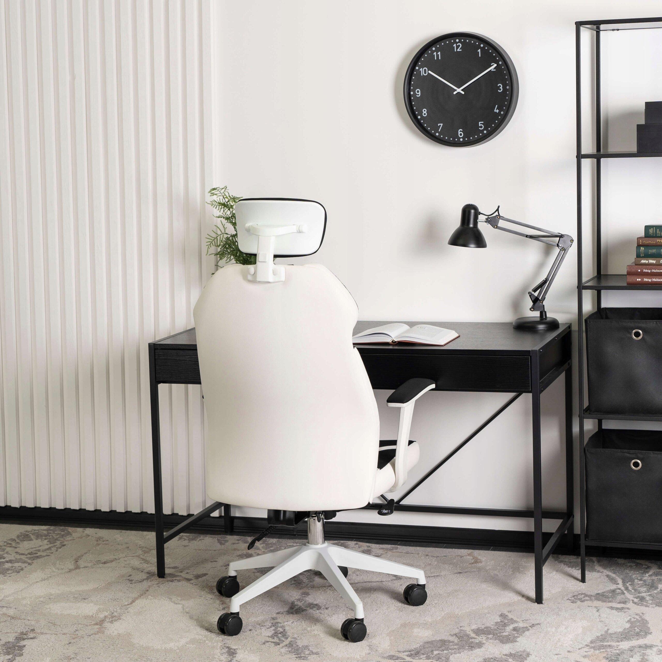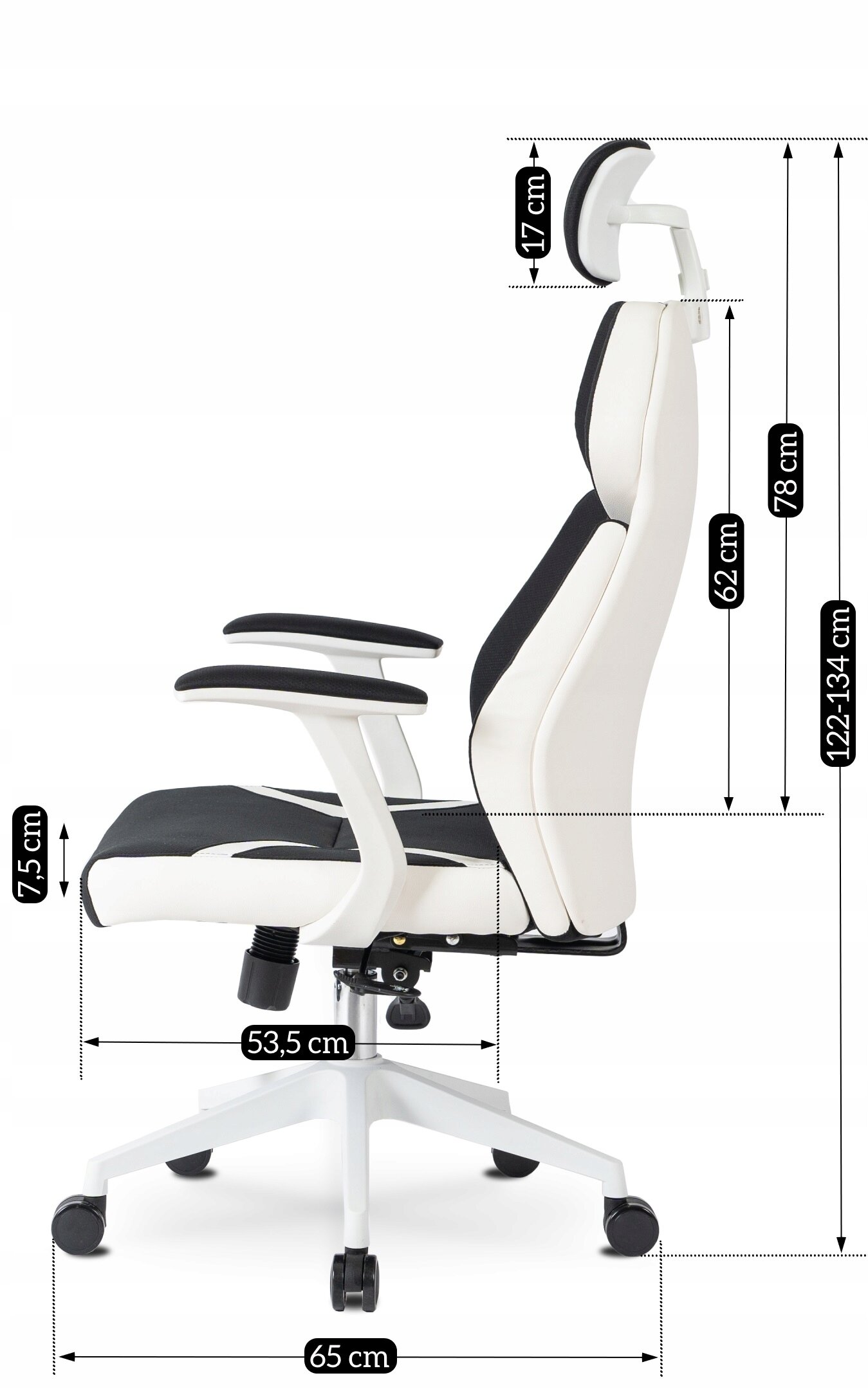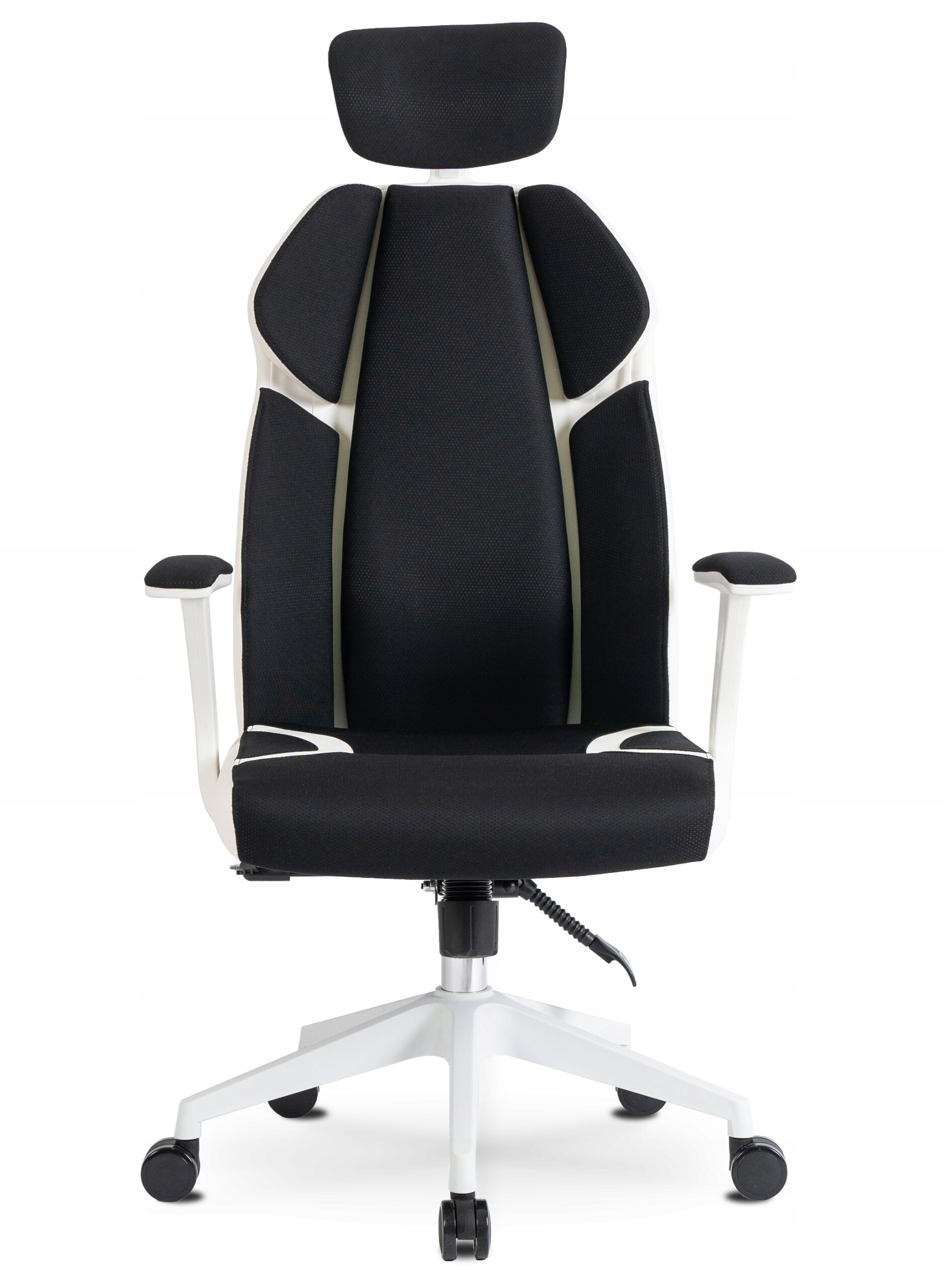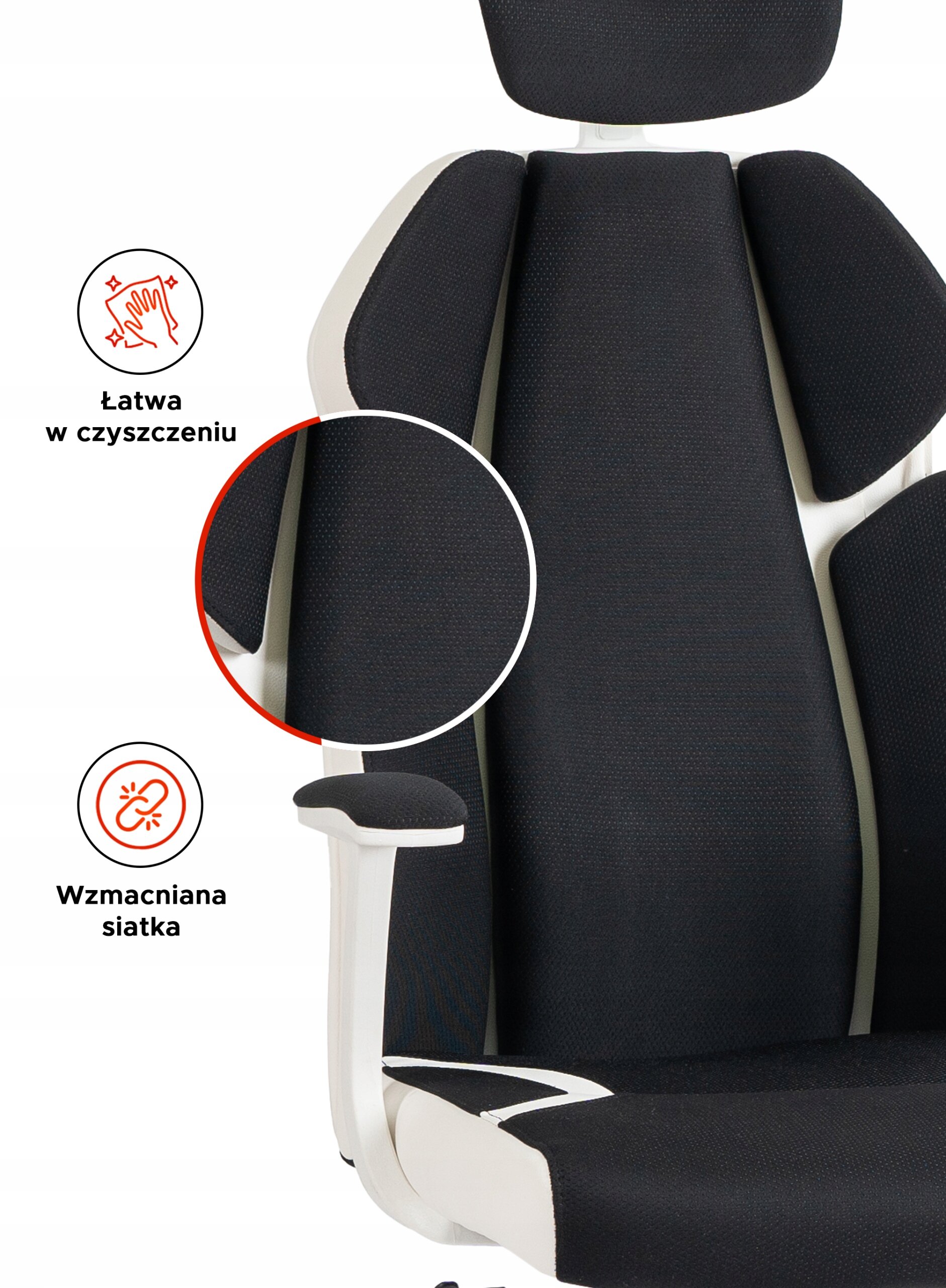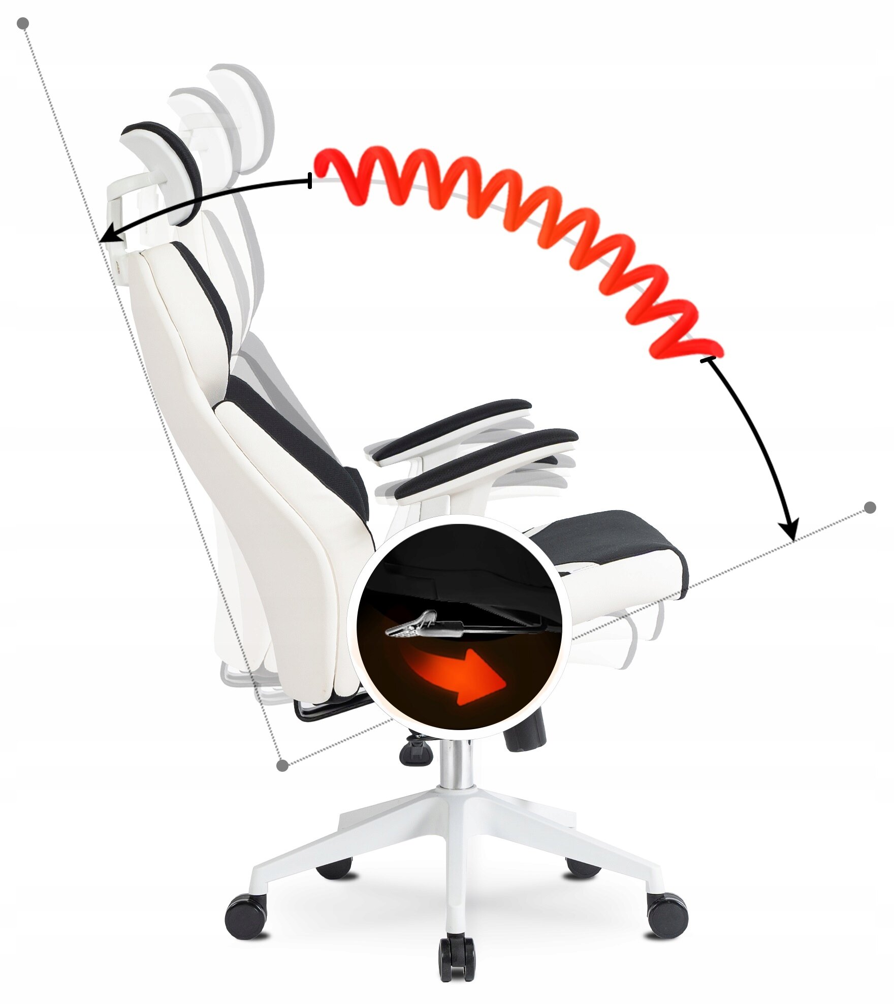 - Krzesło Obrotowe Biurowe Fotel Ergonomiczny Obrotowy Biały Czarny DUNCAN