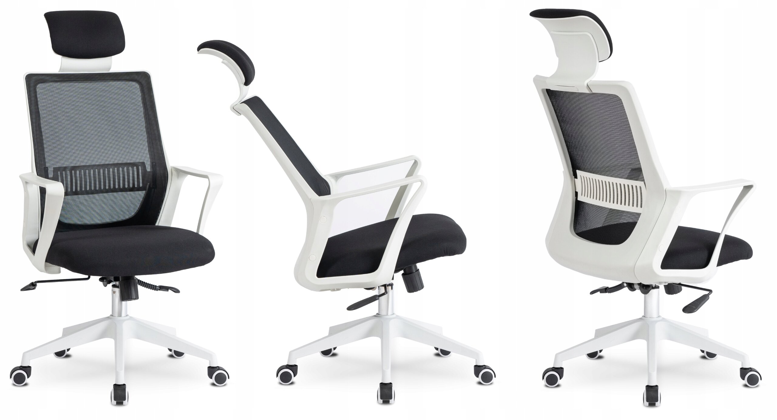 - Krzesło Obrotowe Biurowe Fotel Ergonomiczny Obrotowy Biały Czarny FLEX