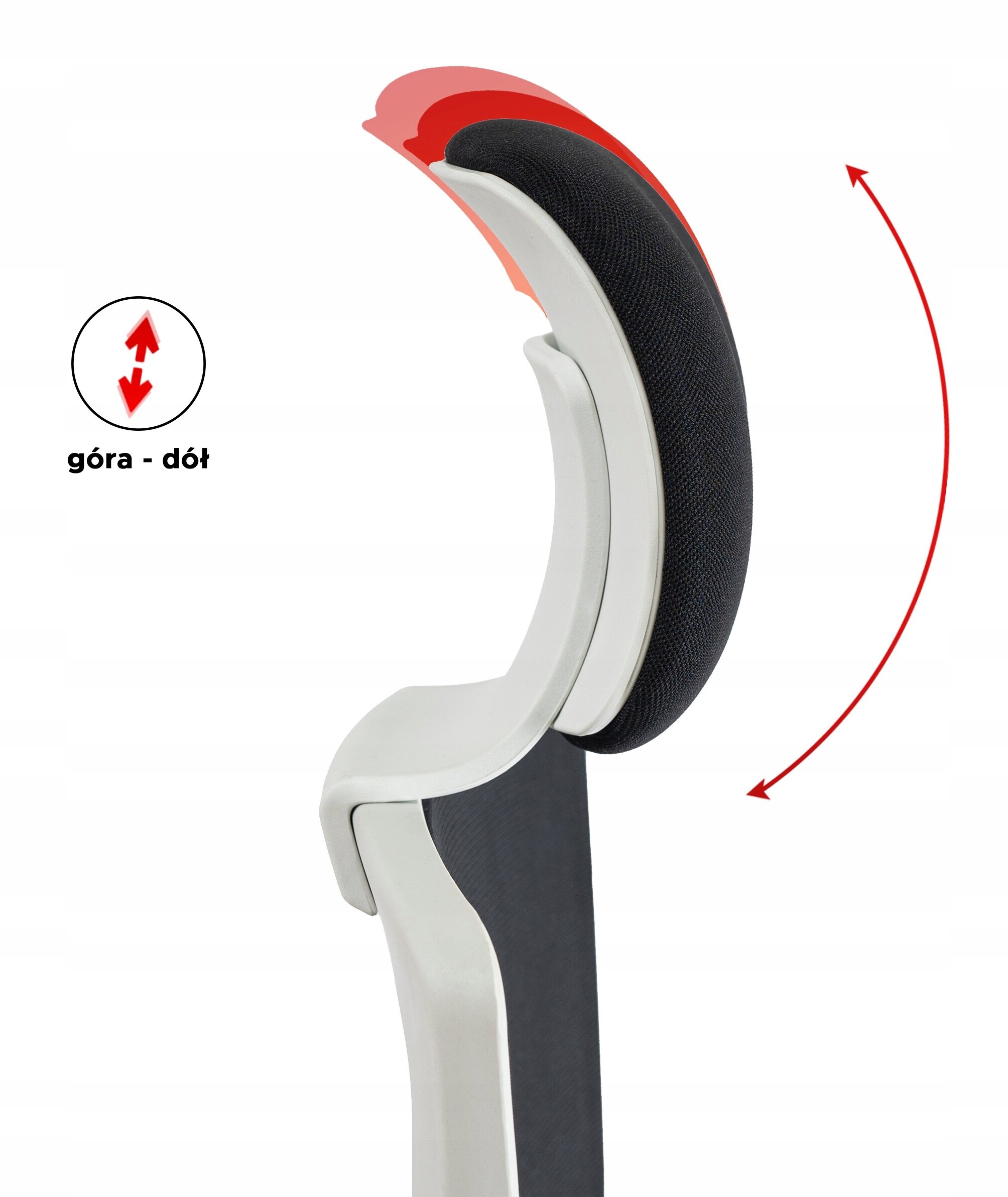 Fotel FLEX posiada wygodny zagłówek o wypukłym kształcie z możliwością regulacji. Pomoże zapewnić Ci odpowiednią pozycję szyi i głowy. Zapomnisz o bólach karku nawet podczas wielogodzinnej pracy.