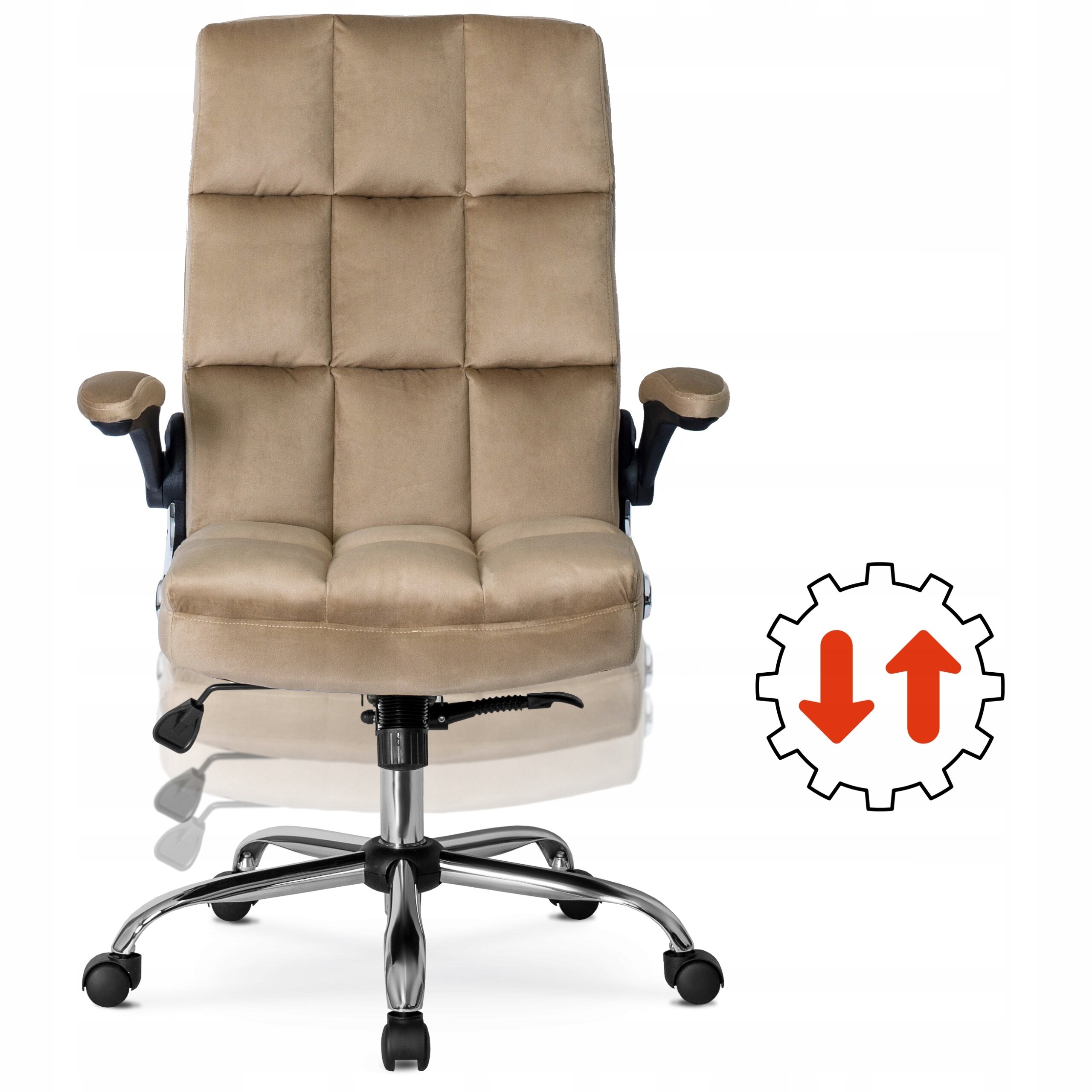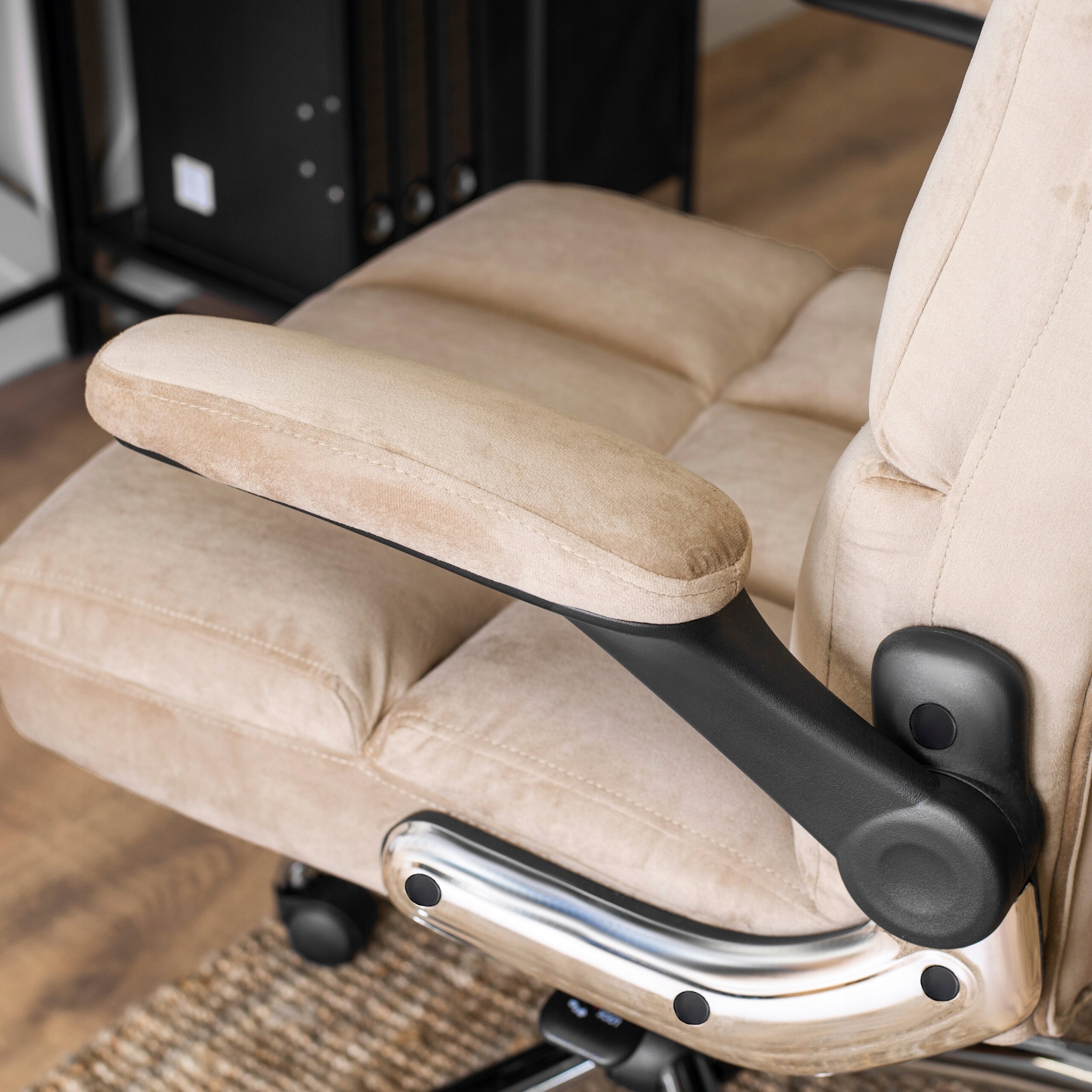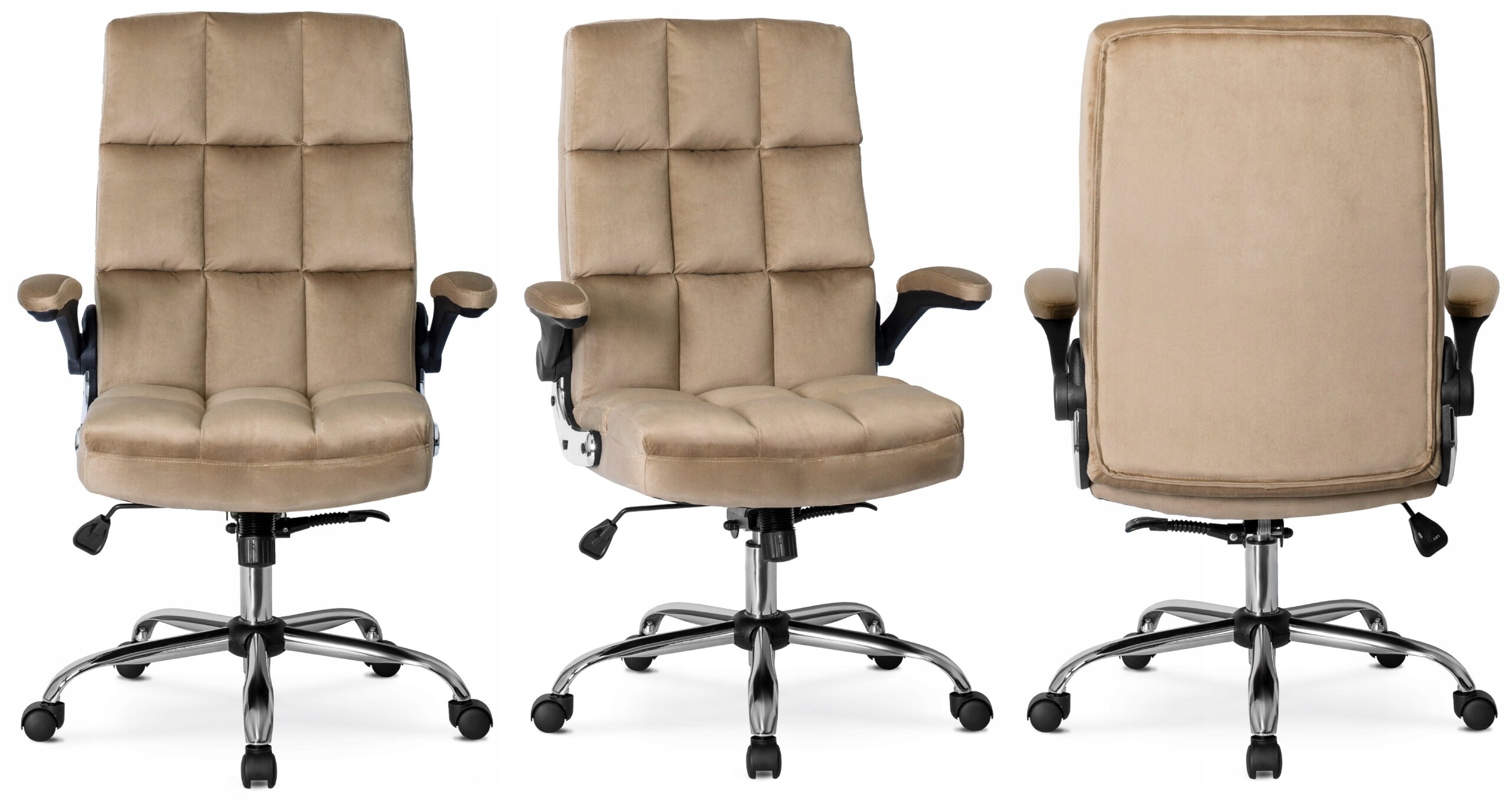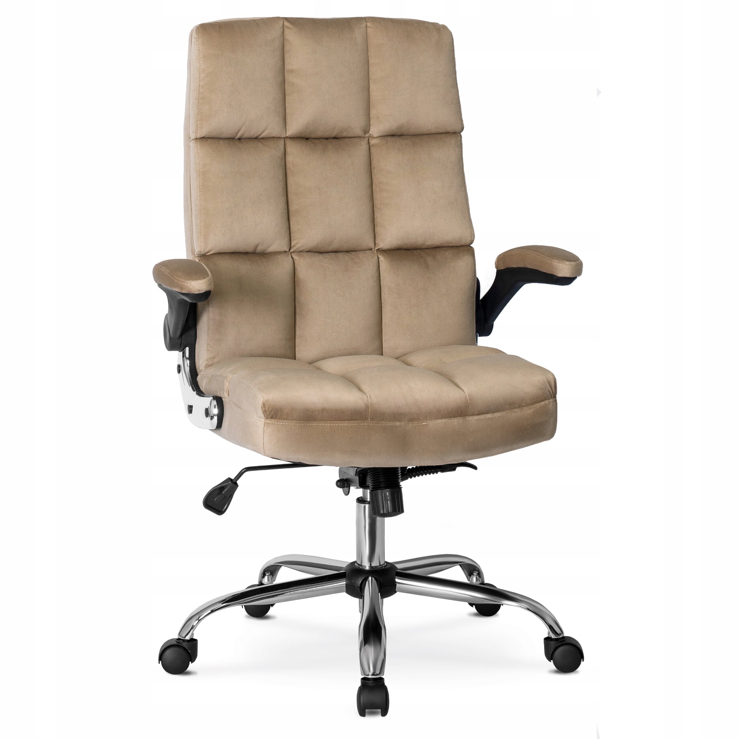 Krzesło Biurowe Welurowe Fotel Obrotowy Do Biurka Gabinetowy LONDON Beżowy