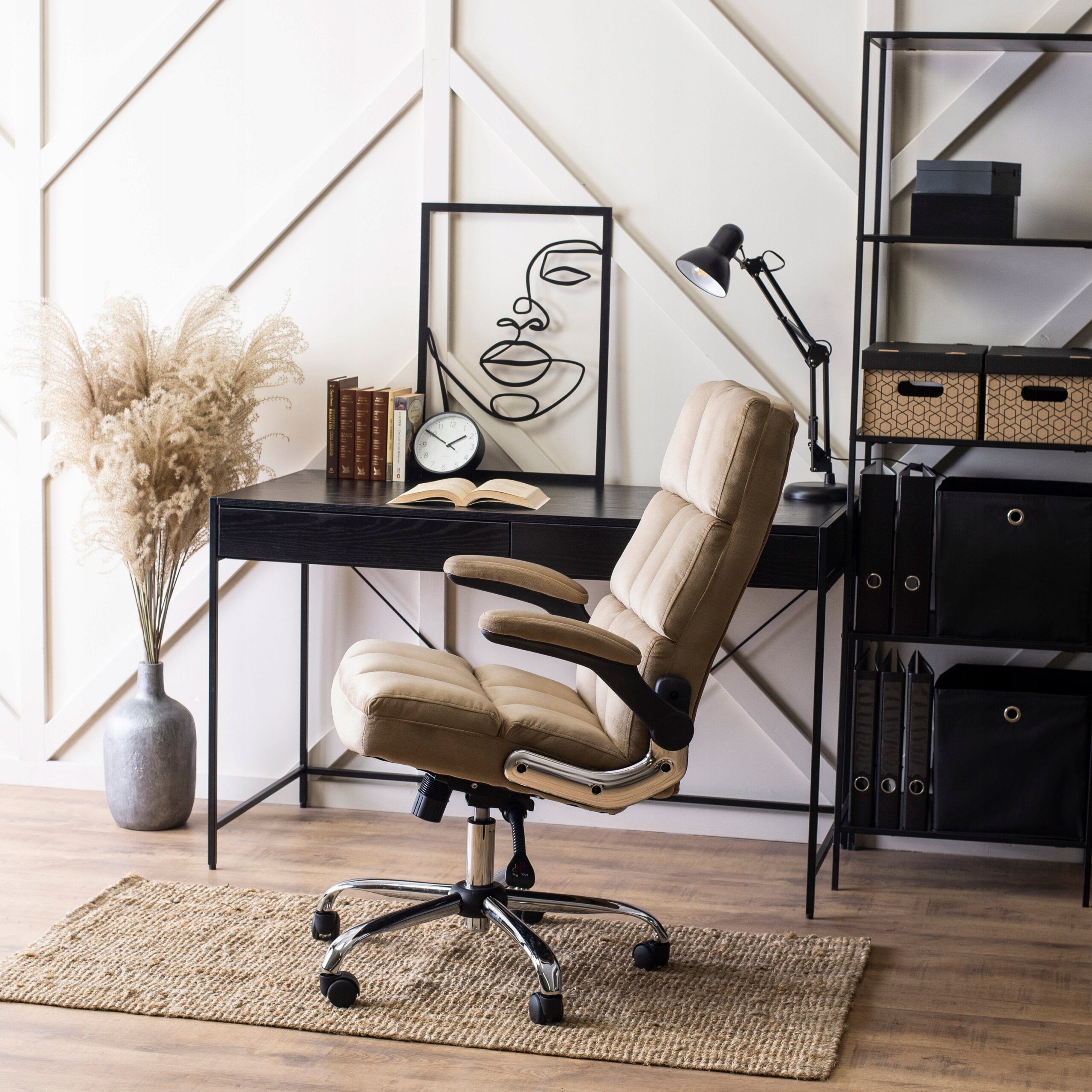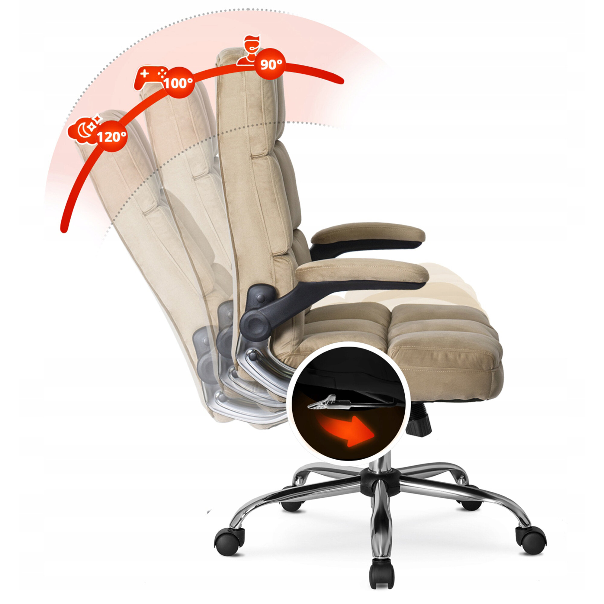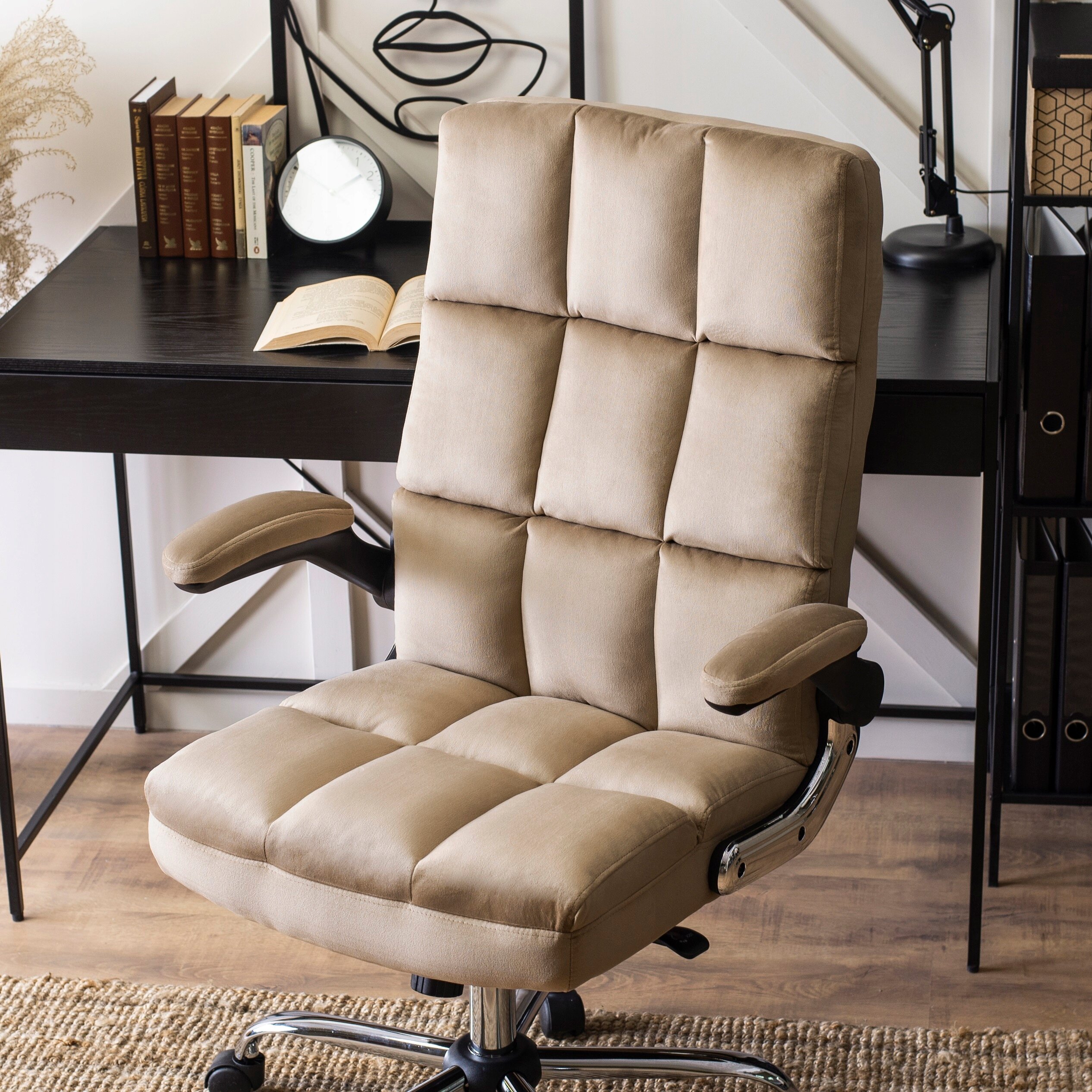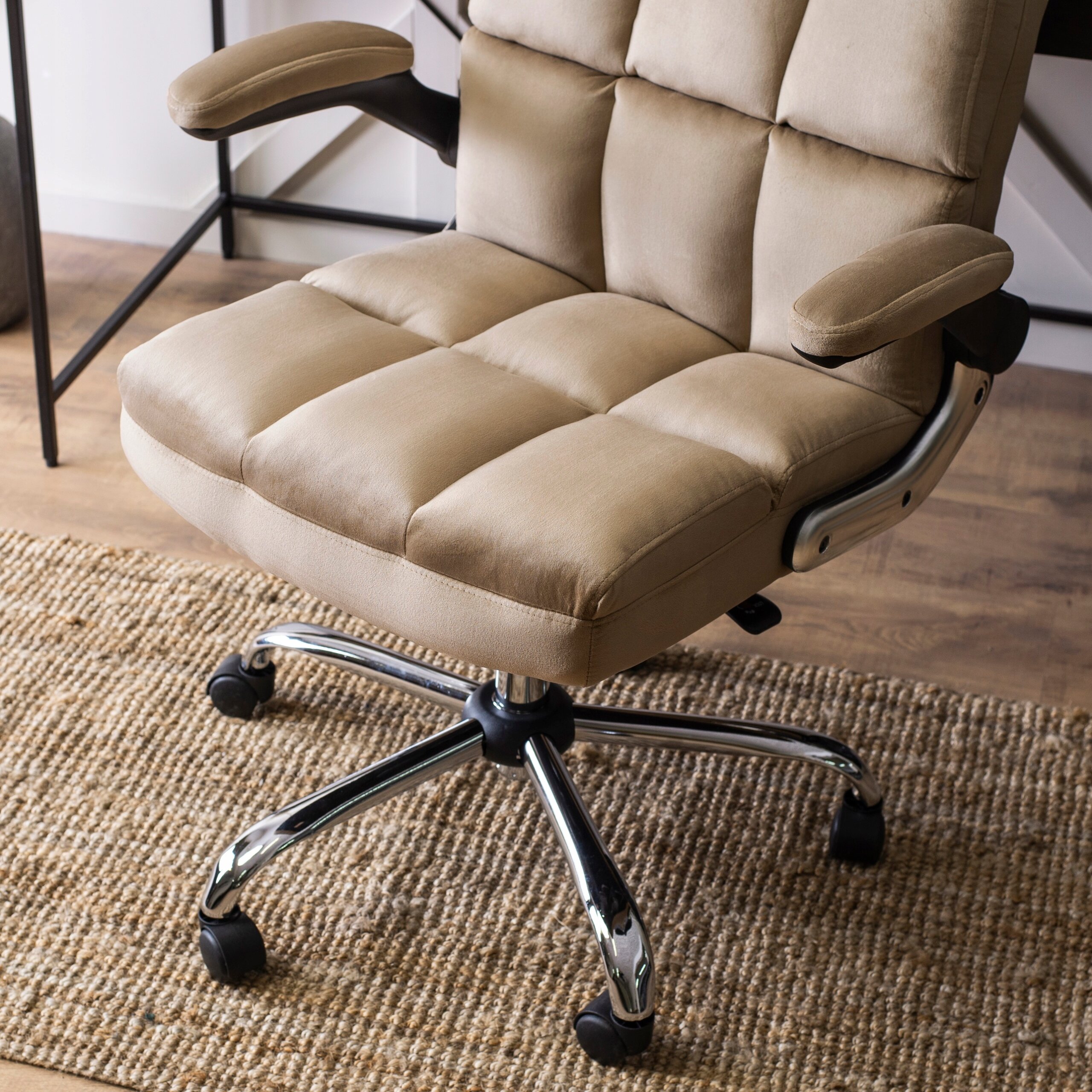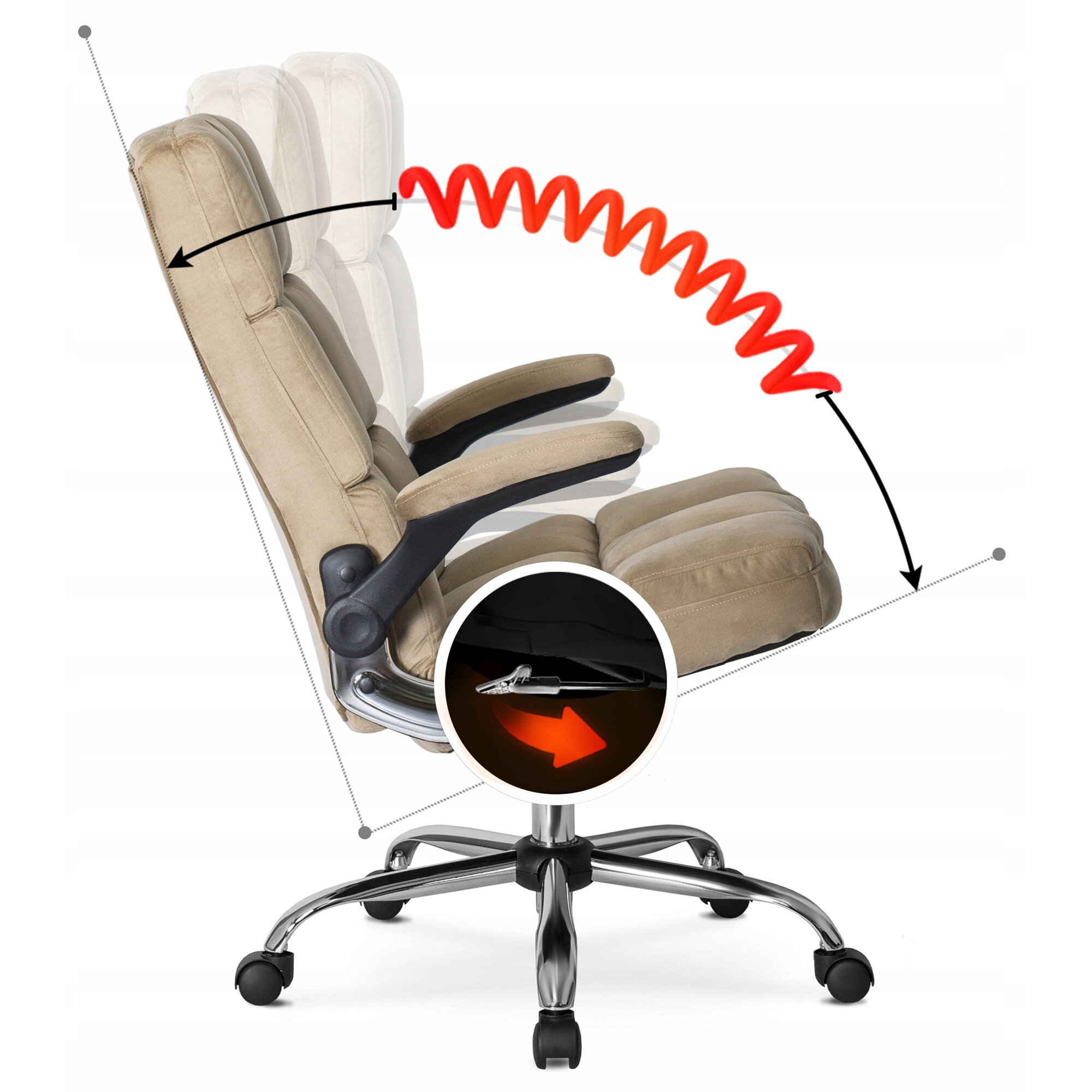 Krzesło Biurowe Welurowe Fotel Obrotowy Do Biurka Gabinetowy LONDON Beżowy