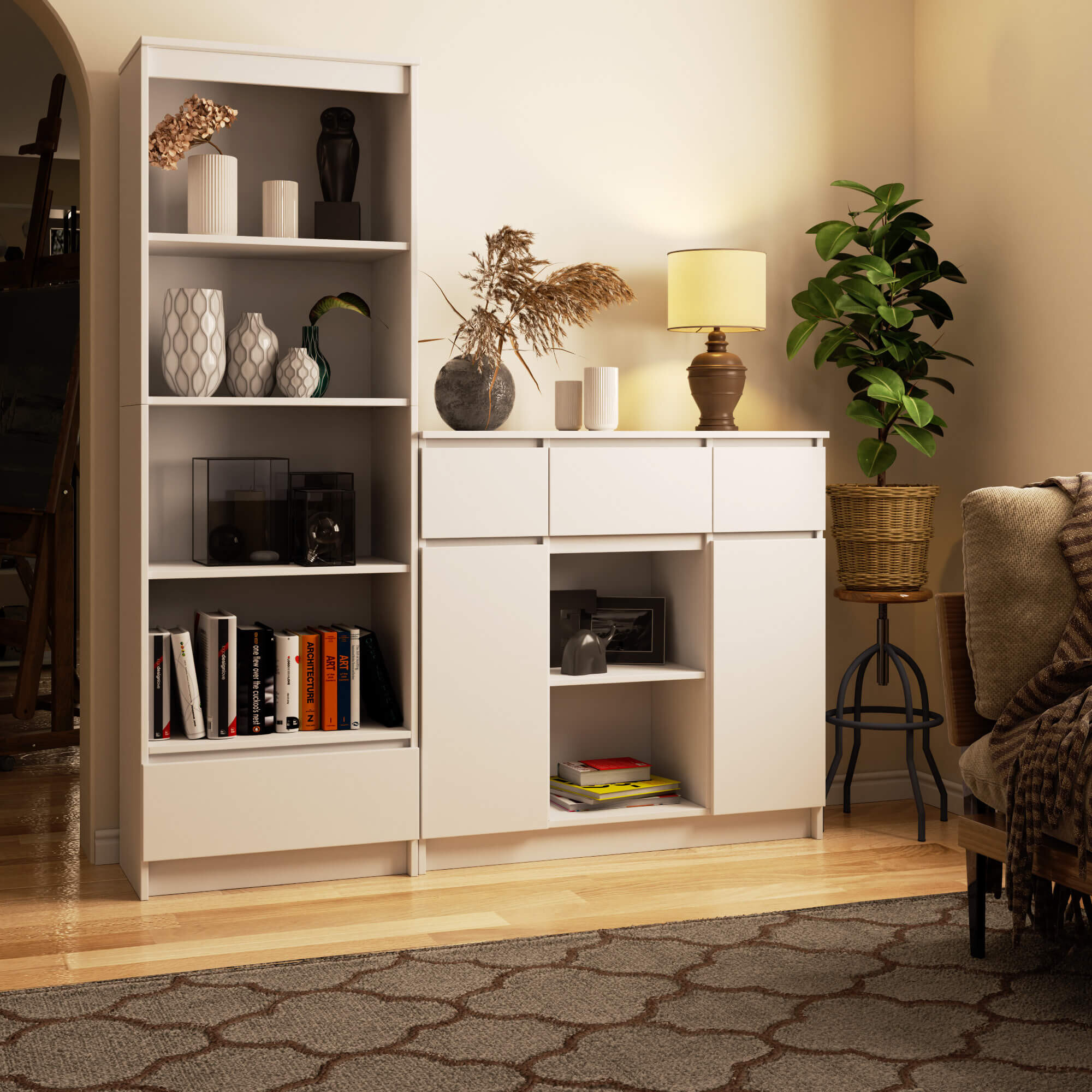 Komoda AKORD K100 kolor Biały mat 101 cm 2 drzwi 3 szuflady 4 półki 101x35x98 cm