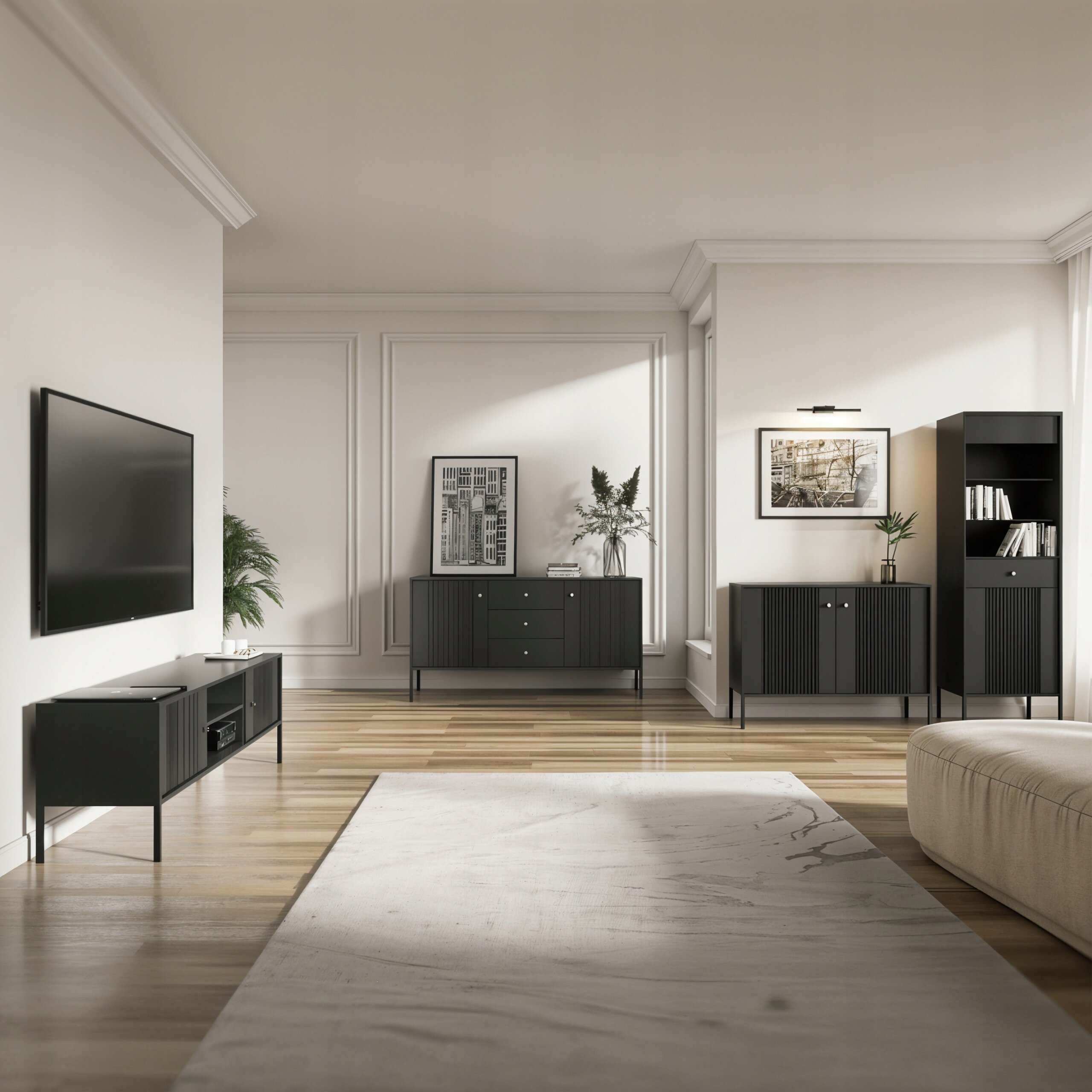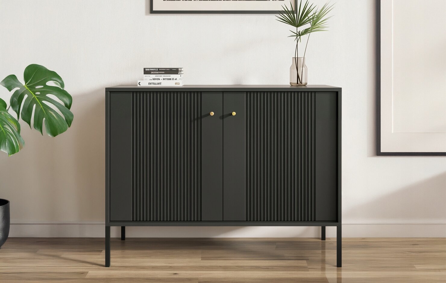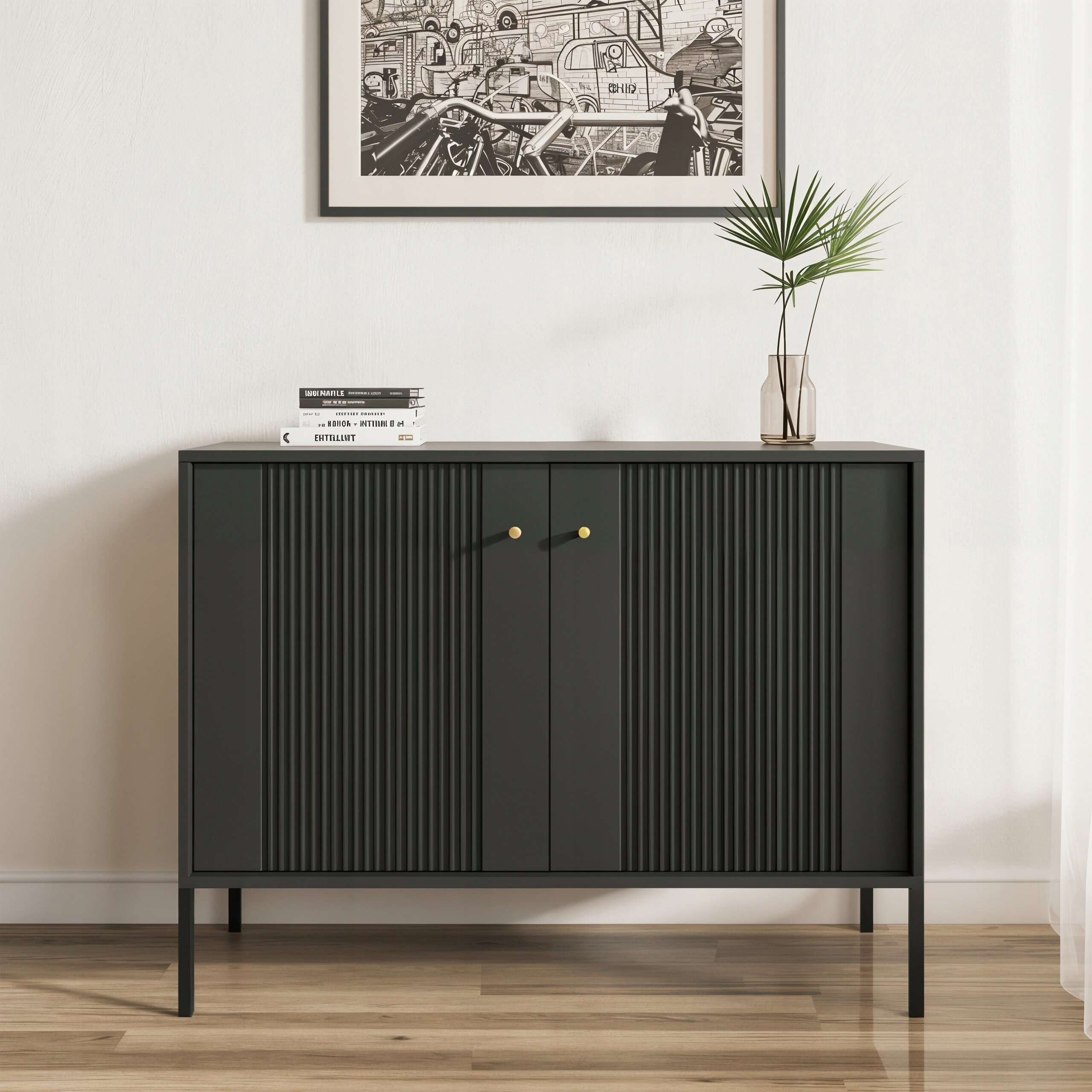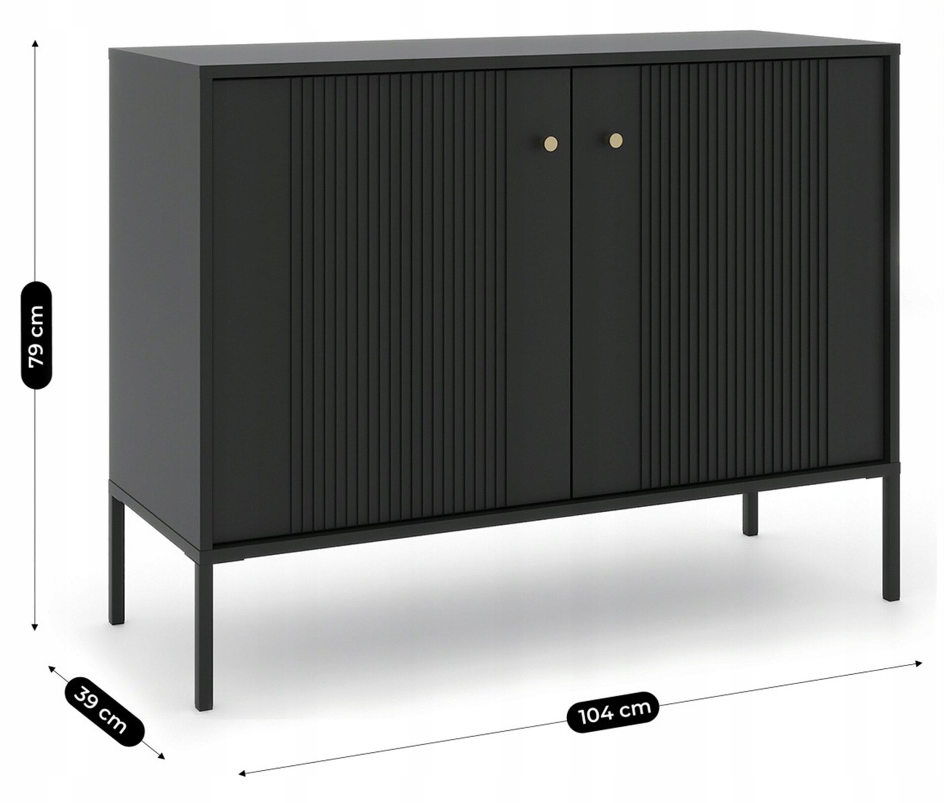 Komoda Czarna Ryflowana z Lamelami SOFT Do Salonu Sypialni