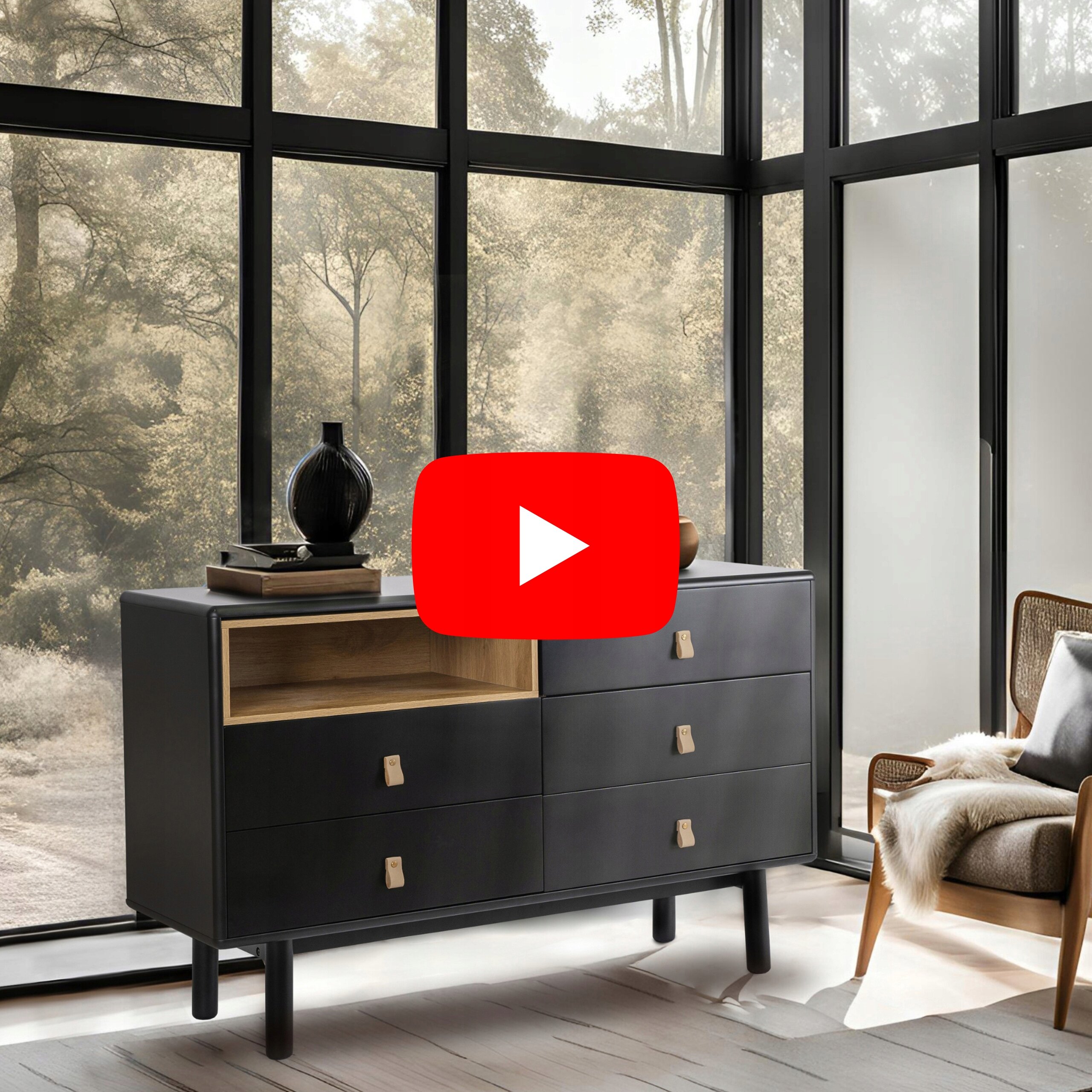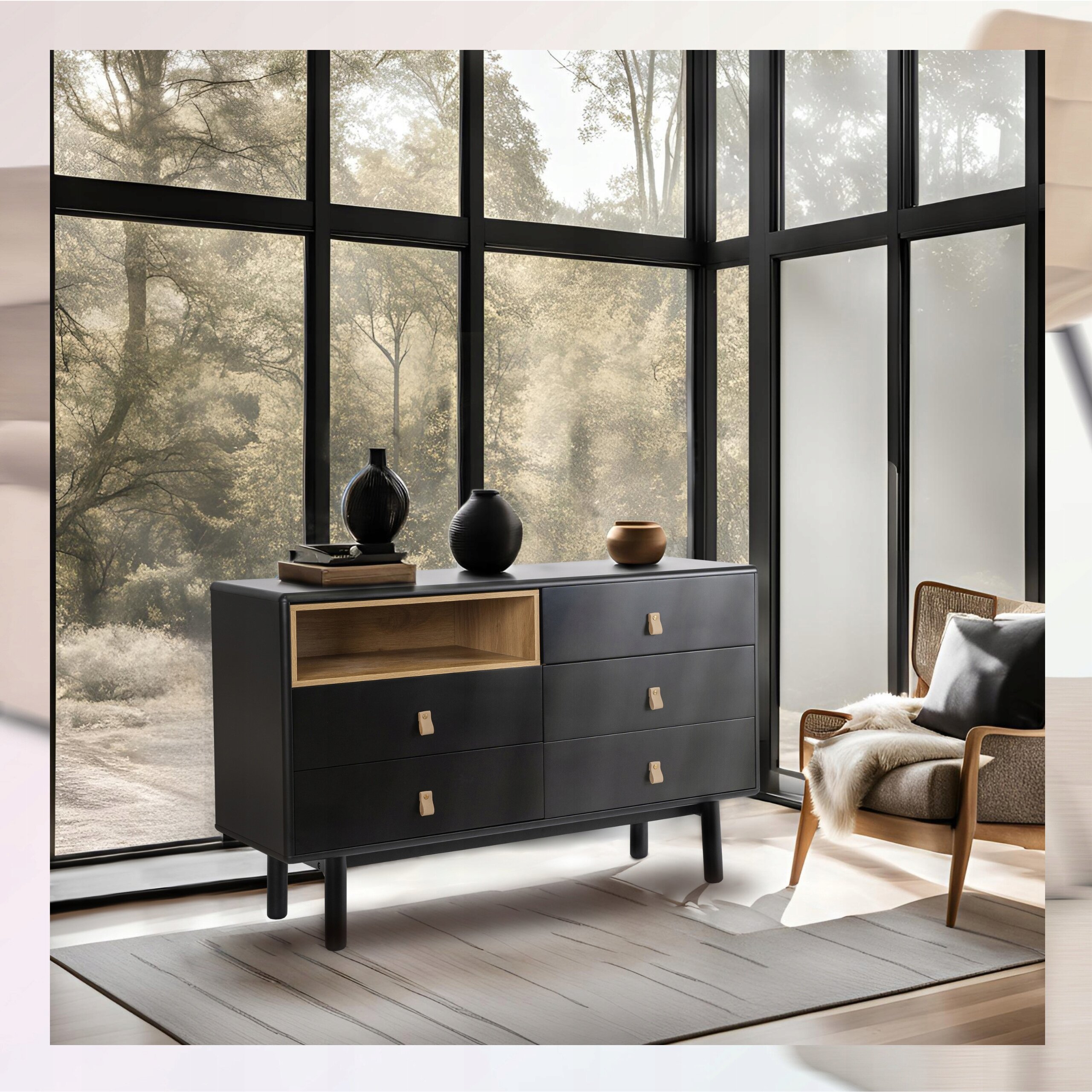 Komoda Czarna z Szufladami Duża NAOMI Styl Skandynawski Do Salonu Sypialni ⭐⭐⭐⭐⭐