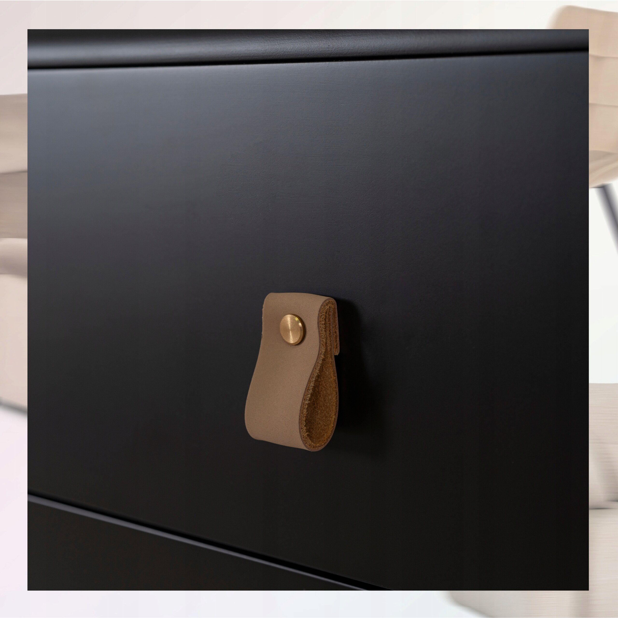 ⭐ Skórzane uchwyty wyglądają bardzo ładnie i podkreślają elegancki styl komody.