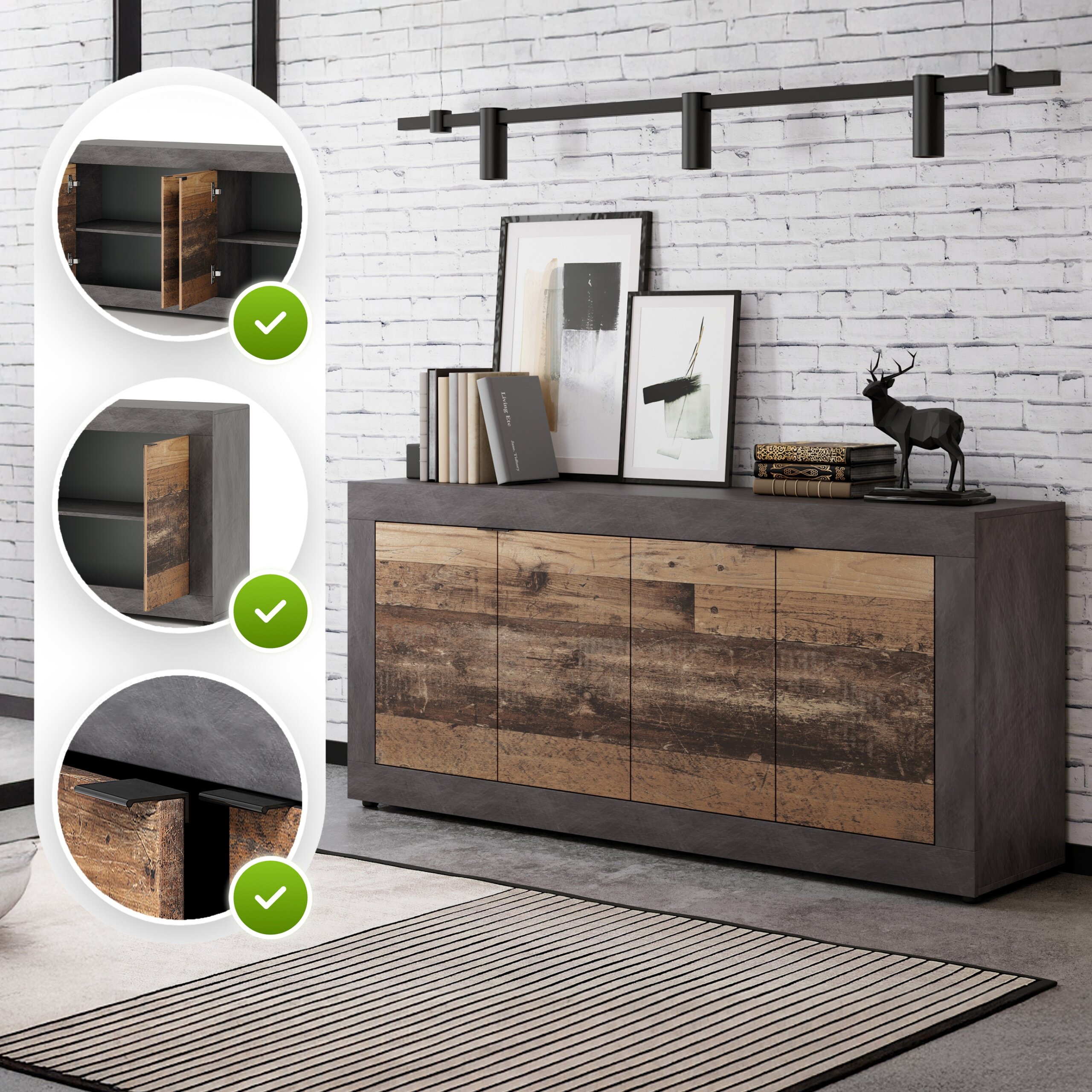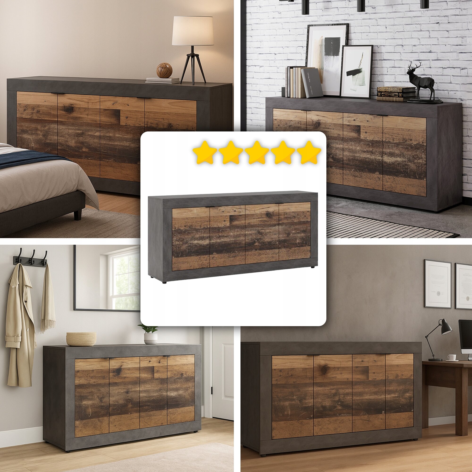Komoda BLAGO to doskonała propozycja dla osób ceniących surowe wzornictwo, dużą pojemność i solidność wykonania. Świetnie sprawdzi się w salonie, sypialni, przedpokoju czy biurze – wszędzie tam, gdzie liczy się design i wygoda przechowywania.