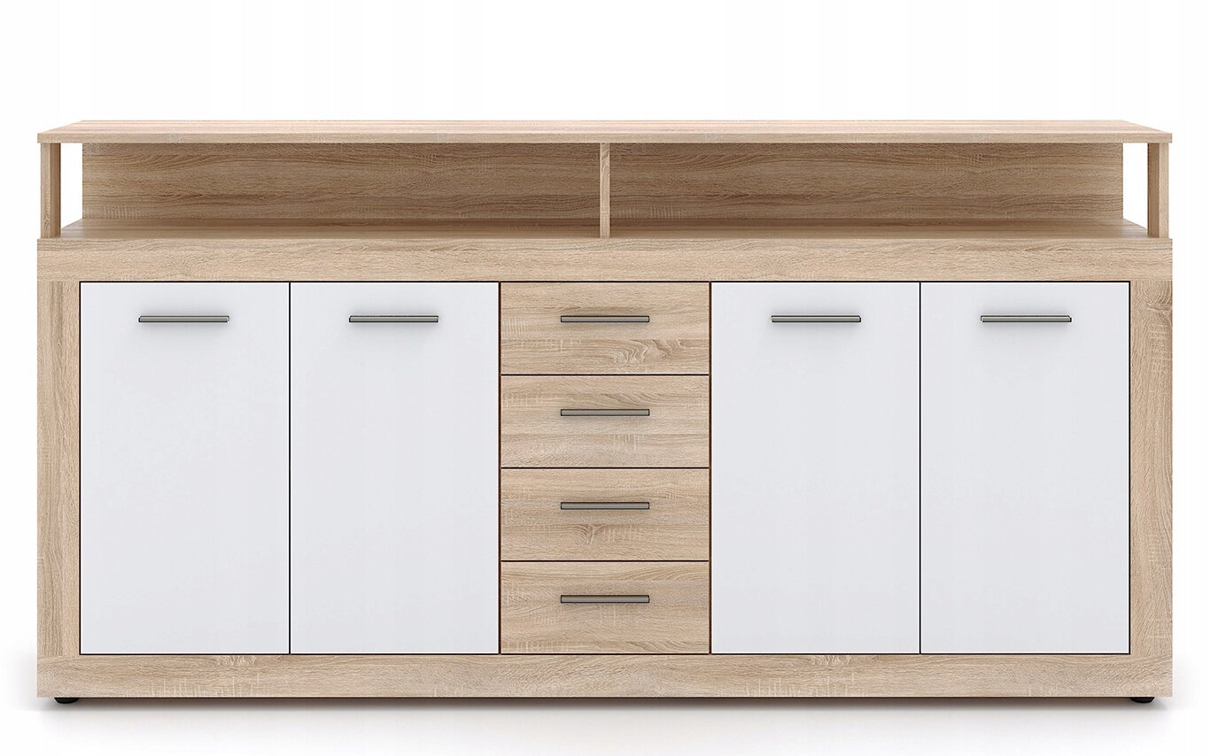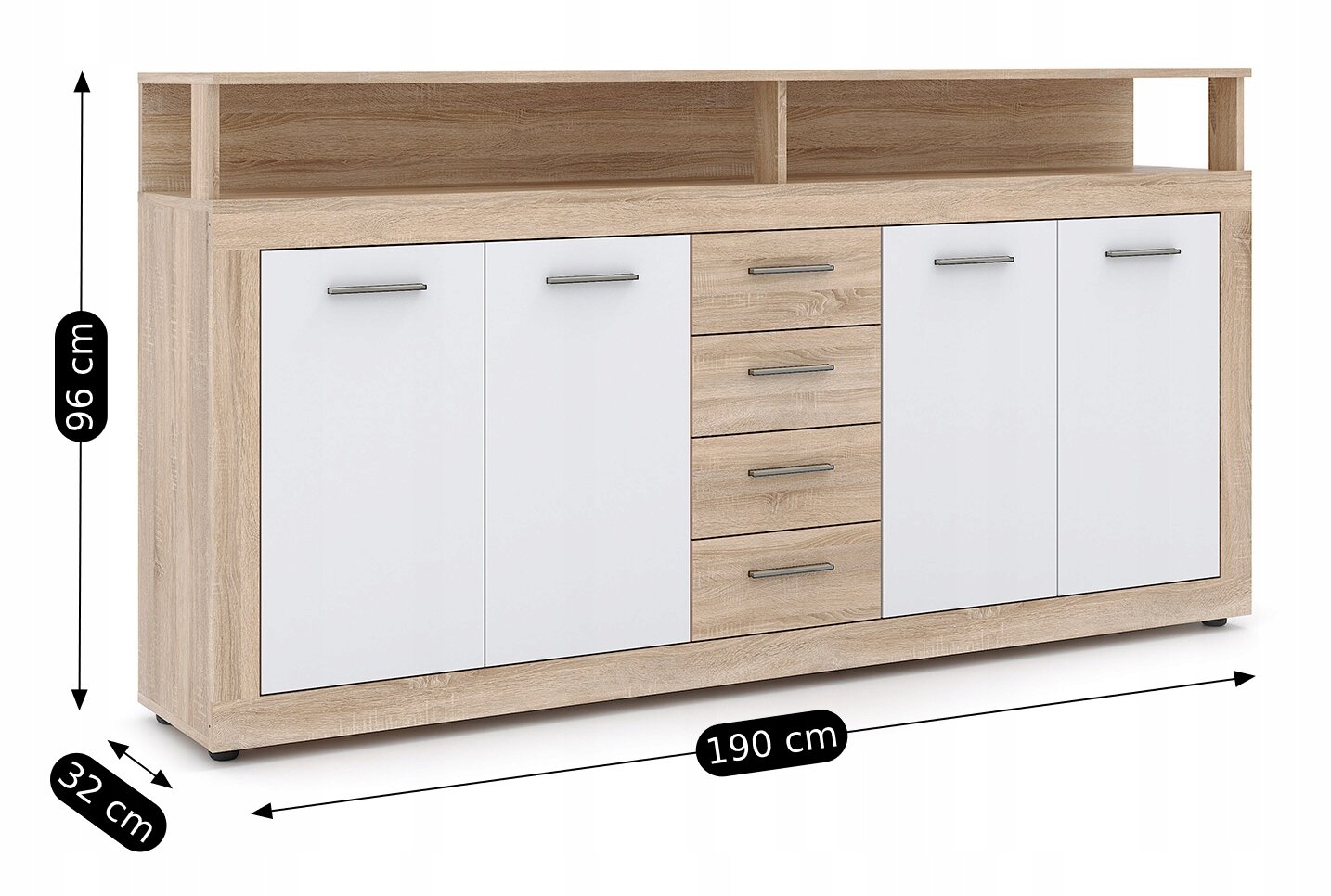 Komoda z Szufladami Duża Do Salonu BLAGO Dąb Sonoma Biała