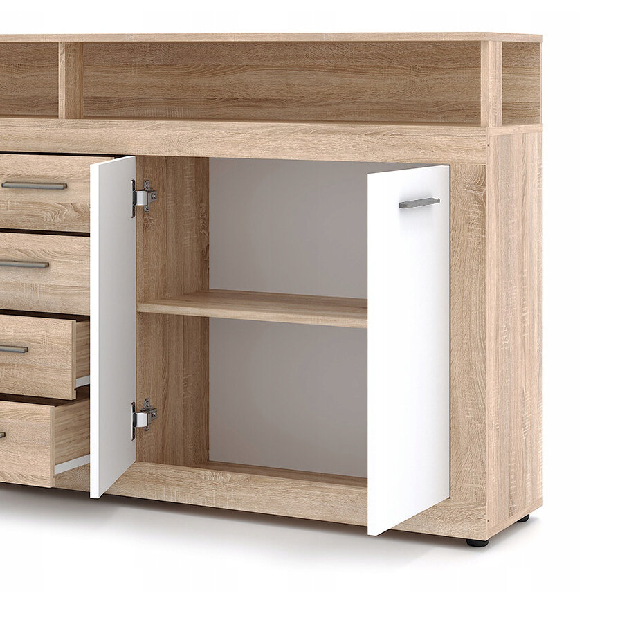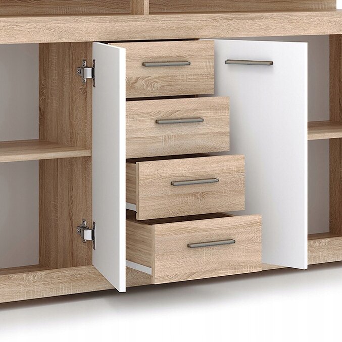 - Komoda z Szufladami Duża Do Salonu BLAGO Dąb Sonoma Biała