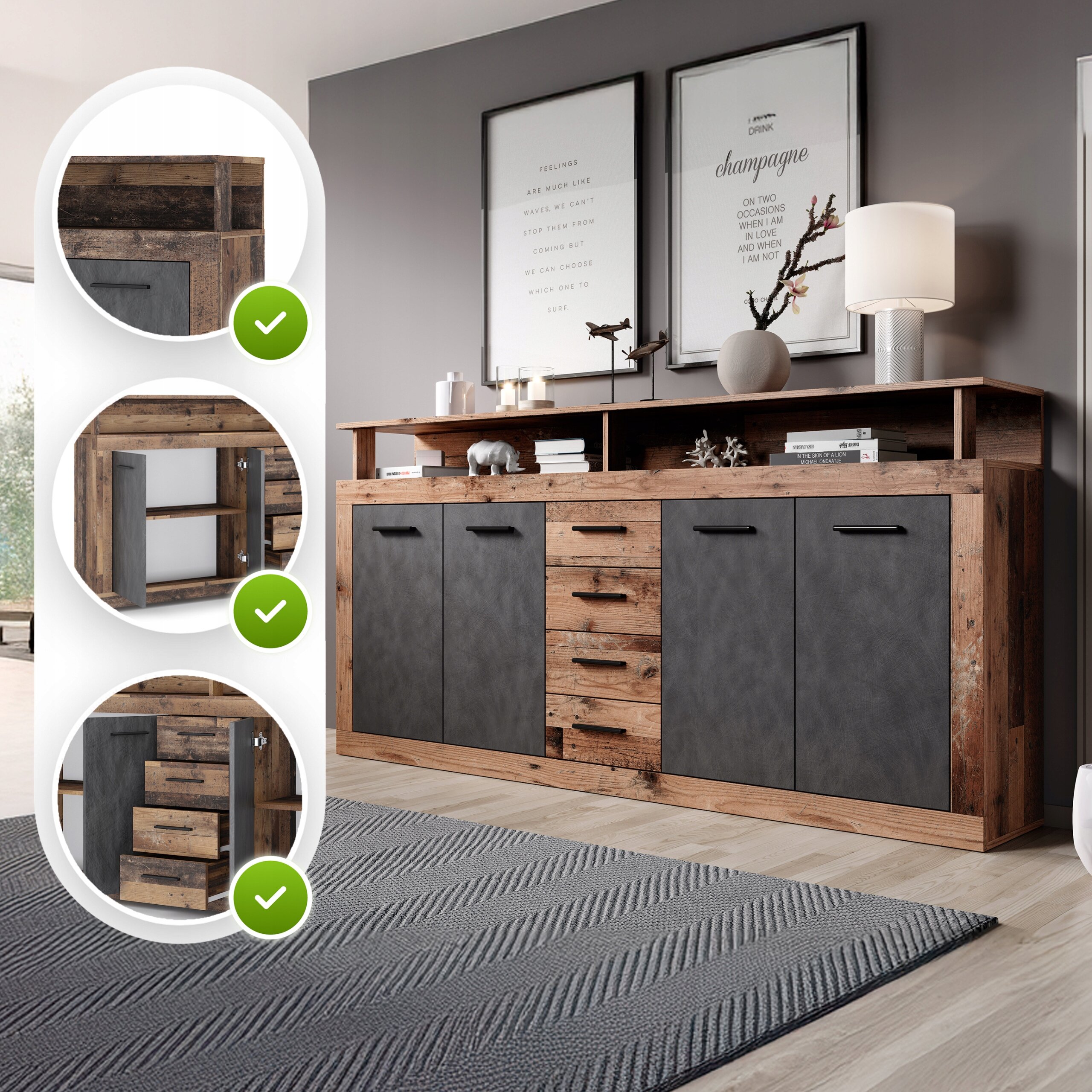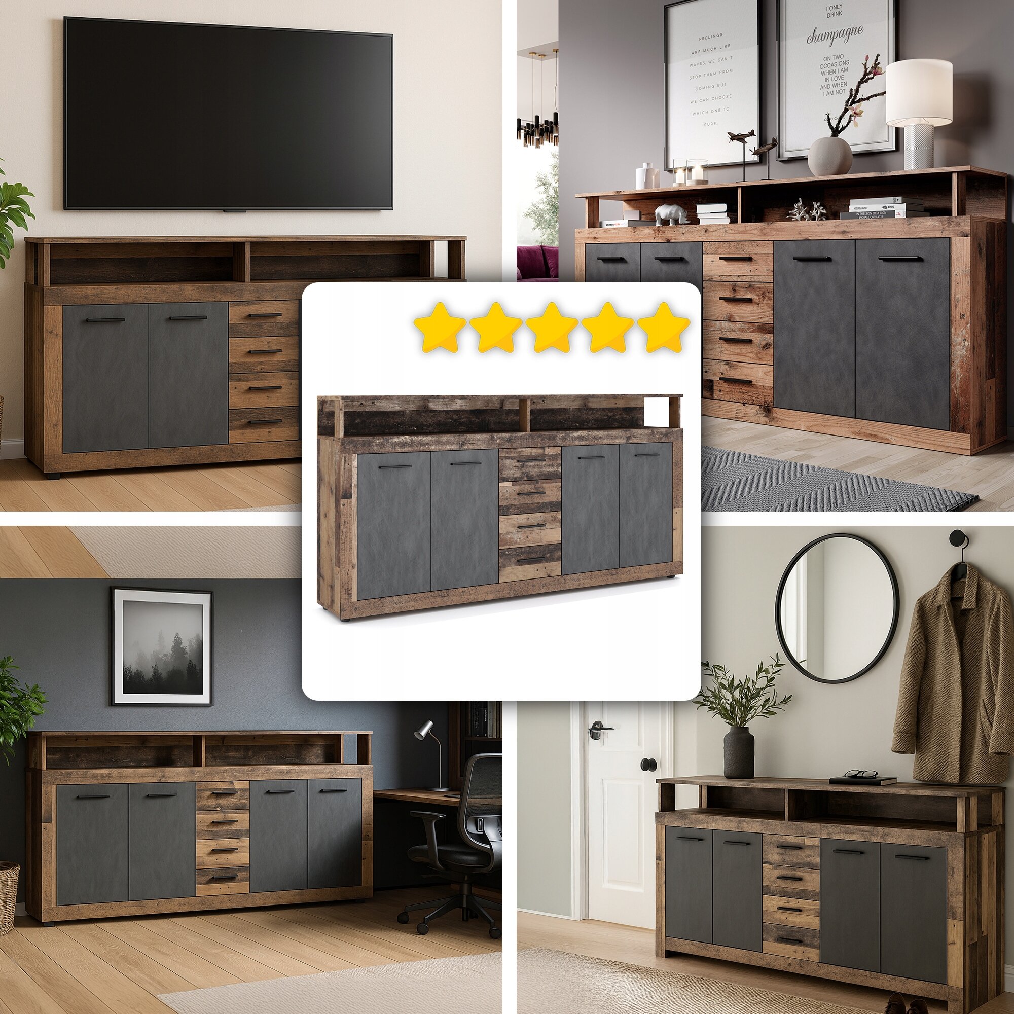 - Komoda z szufladami duża do salonu przedpokoju blago dąb grafit