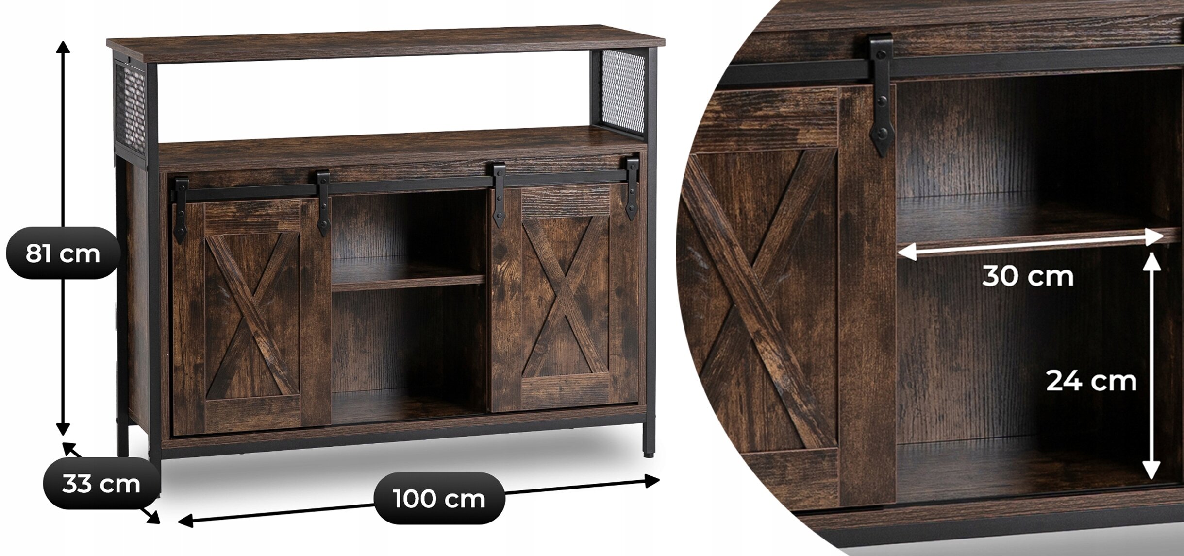 - Zyskujesz industrialny akcent, który podkreśla rustykalny design mebla.