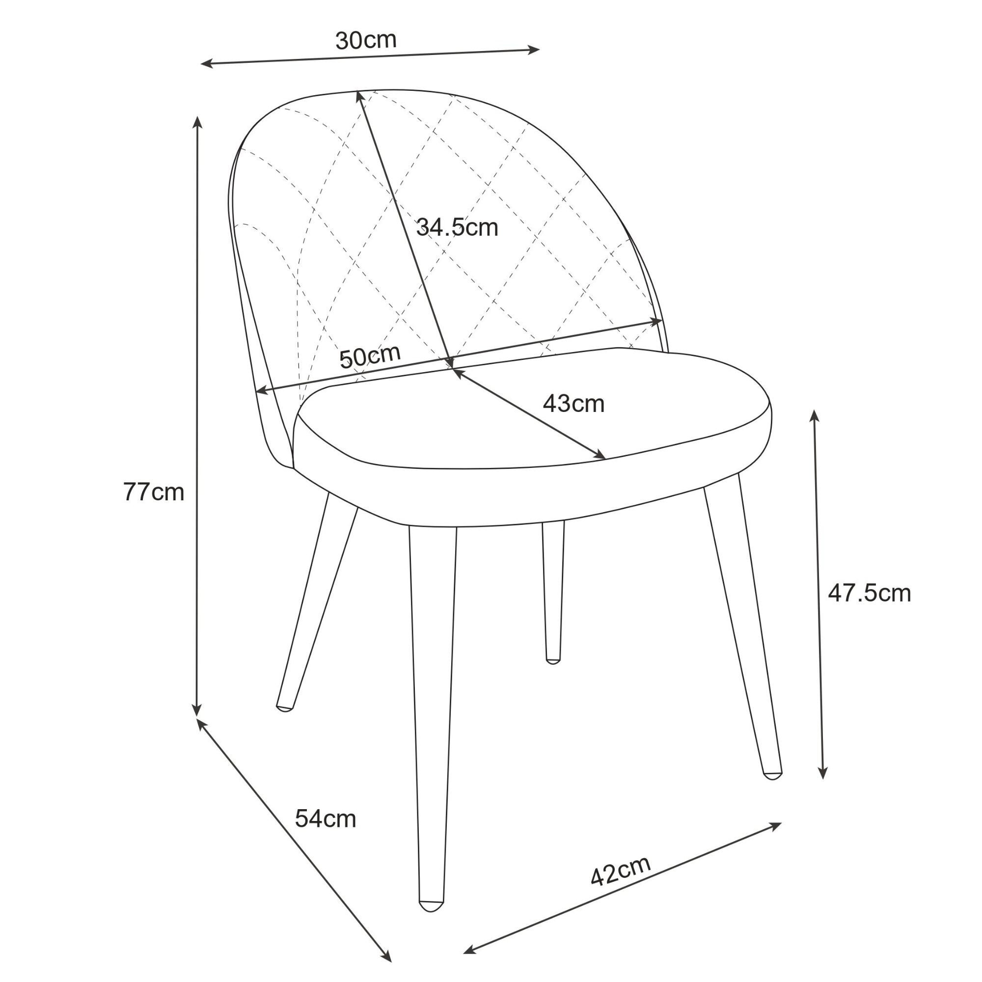 Eleganckie pikowane aksamitne krzesła SJ.077 to doskonały wybór do jadalni, nowoczesnej jadalni, gabinetu czy pokój młodzieżowego. Model ten jest lekki i kompaktowy, co czyni go idealnym wyborem także dla niewielkich pomieszczeń. Nasze welurowe krzesła mogą mieć dużą ilość zastosowań w nowoczesnych stylizacjach. Można je wykorzystać jako krzesła do jadalni, pokoju gościnnego, biura, salonu kosmetycznego itp. Model jest pokryty miękkim aksamitnym pokryciem z tkaniny, zaokrąglonym tyłem ze szwami i czarnymi metalowymi nogami. Materiał: krzesła do jadalni jadalnia SJ.077 pokryte są aksamitną tkaniną miękką w dotyku, której tył ozdobiony jest dekoracyjne pikowanie. Wyściełane siedzisko zapewnia każdemu wspaniały komfort. użytkownika. Nogi: Nogi krzeseł tapicerowanych SJ.077 wykonane są ze stali i pokryte warstwą czarnego proszku. Metalowa konstrukcja zapewnia bardzo świetną odporność na obciążenia i uszkodzenia. Stopki są bezpiecznie przymocowane do podstawa krzesła, która zapewnia stabilność mebla. Oparcie: Nasze krzesło welurowe pikowane SJ.077 posiada niskie oparcie wypełnione wyściółką gąbka. Produkt pokryte są elastyczną tkaniną aksamitną. Eleganckie przeszycia zdobią przód oparcia i dodają uroku|elegancji}. Półokrągły kształt oparcia zapewnia wyjątkowy komfort. Oparcie ma 54 cm szerokości i 31 cm wysokości. L’ siedzisko: Siedzenie krzesła SJ.077 charakteryzuje się płaskim kształtem i gładkim wykończeniem tkaniny. Wyściółka to twarda gąbka tapicerska. przeciętny. Siedzisko ma 43 cm długości i 53 cm szerokości.