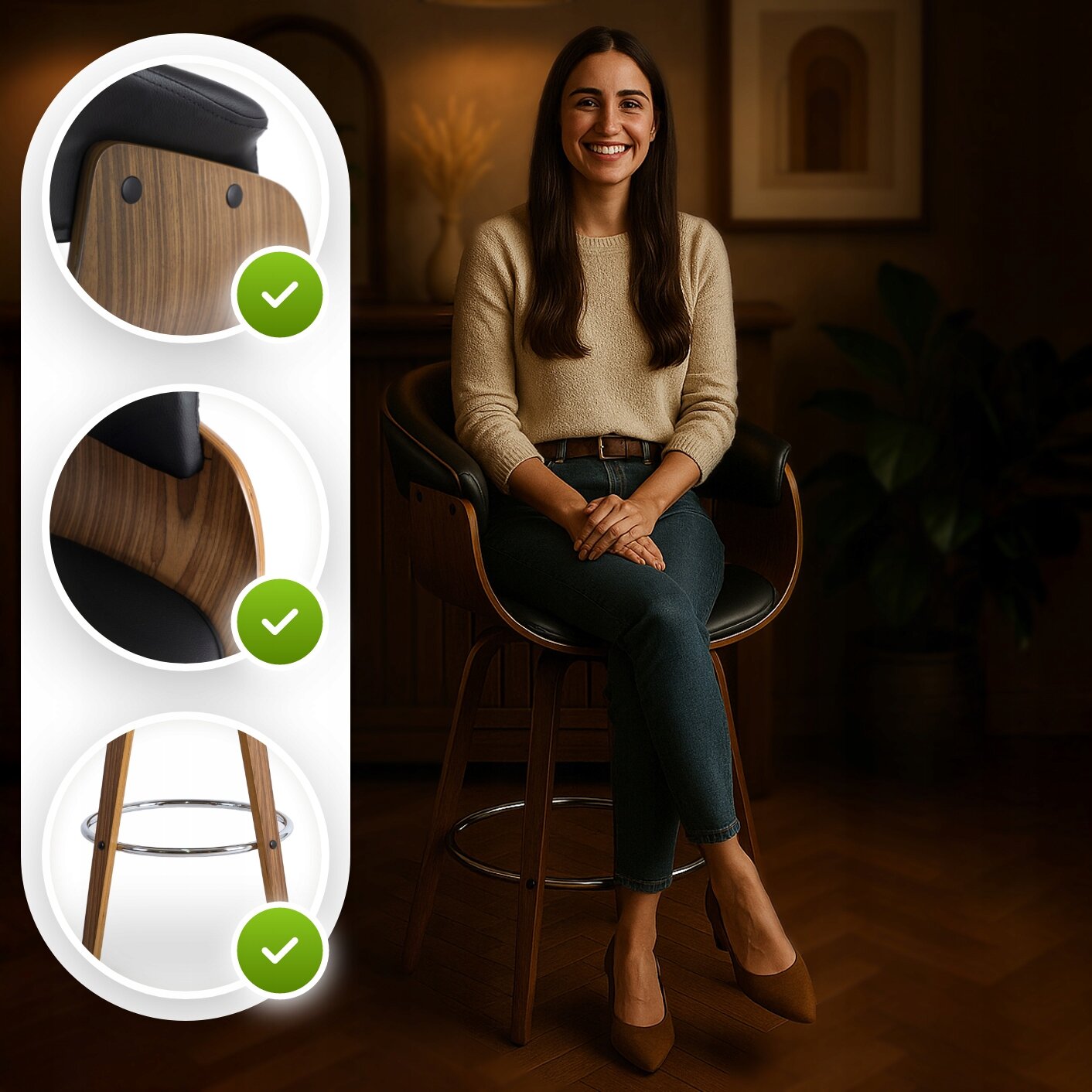 ✨ Hoker Krzesło Barowe Obrotowy Wysokie Stołek Kuchenny Czarne Orzech JERSEY
