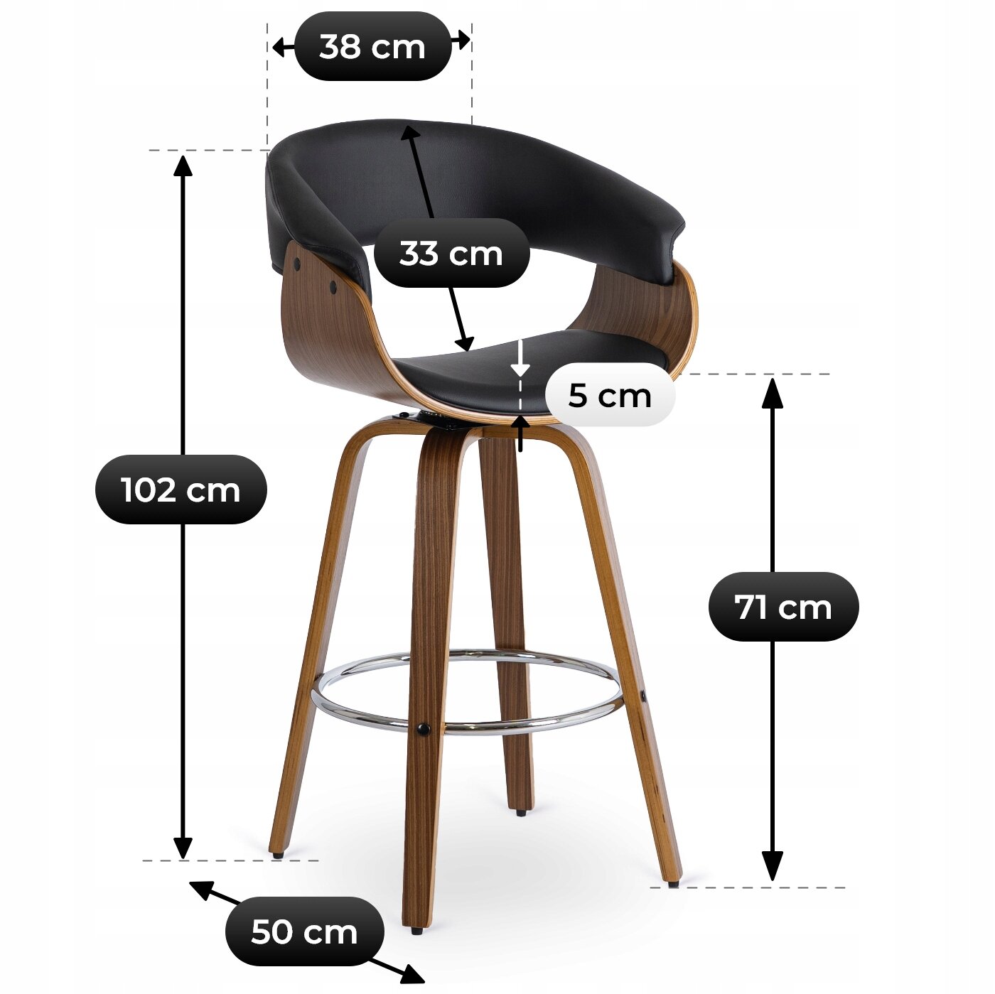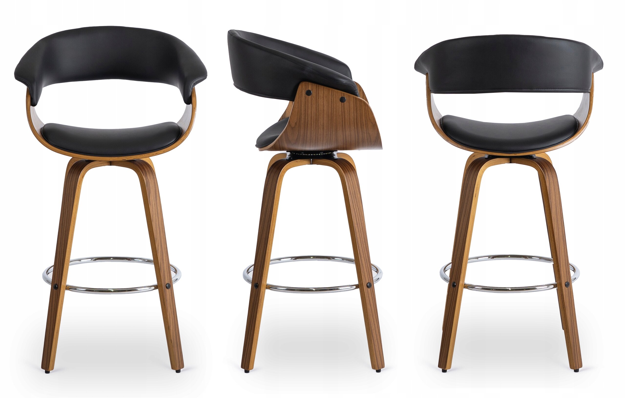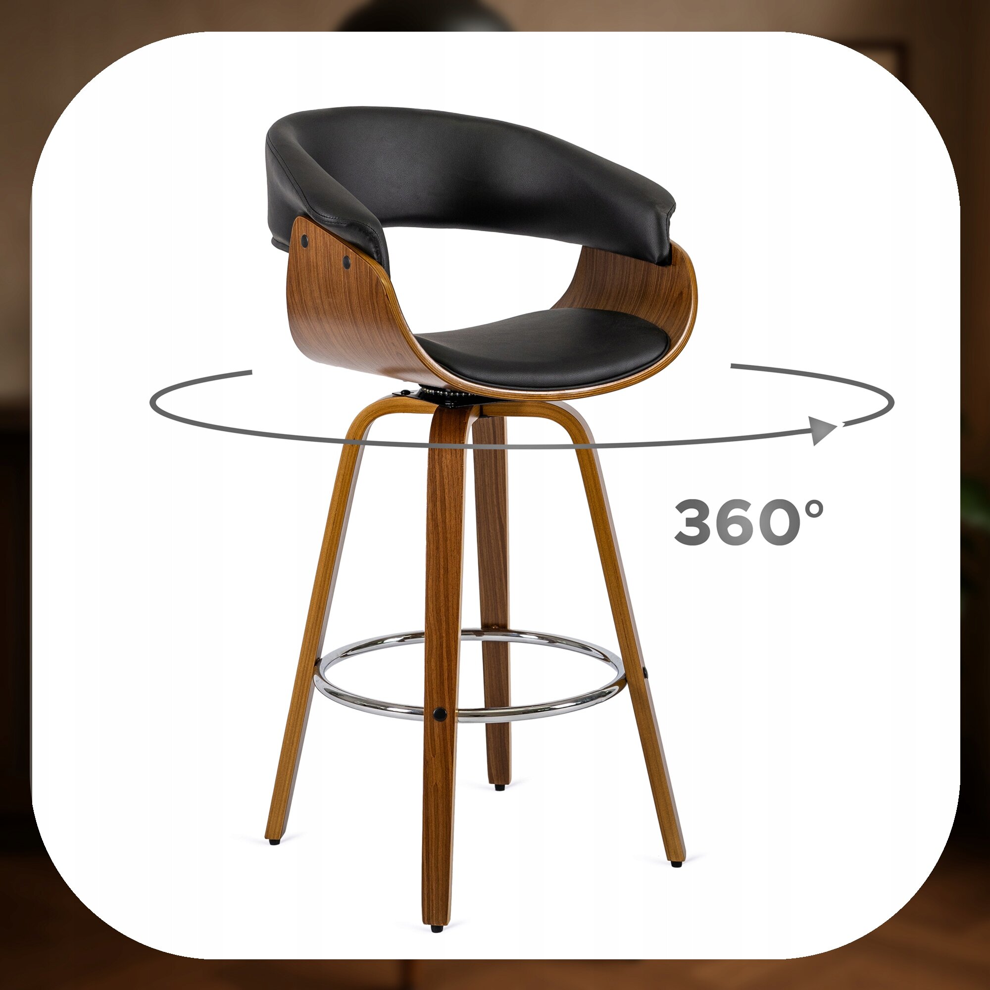 - Hoker Drewniany Krzesło Barowe Obrotowe Kuchenne Czarne Orzech JERSEY