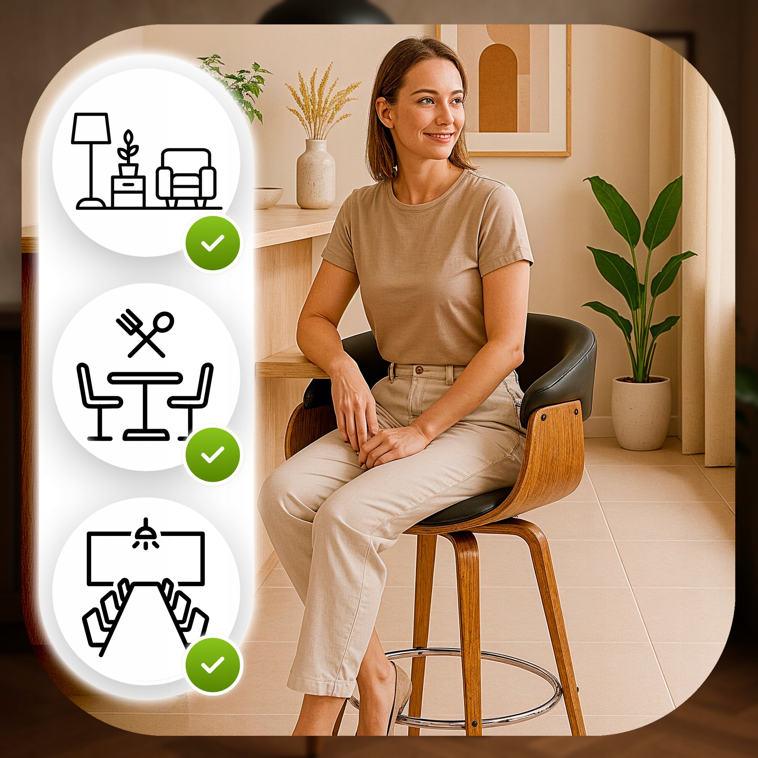 - W kuchni – doskonały wybór do wyspy kuchennej, tworząc wygodne miejsce do porannej kawy lub szybkiego posiłku.