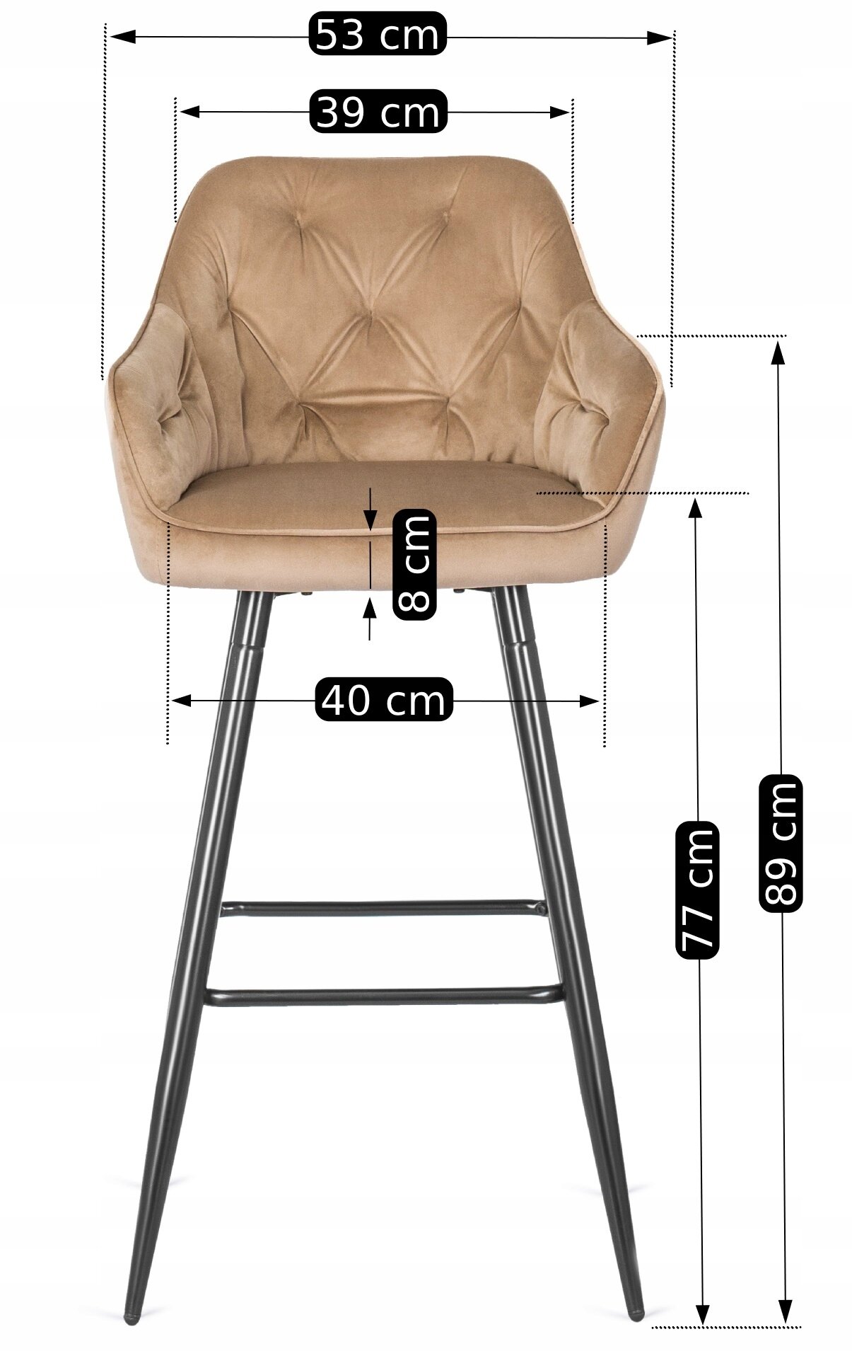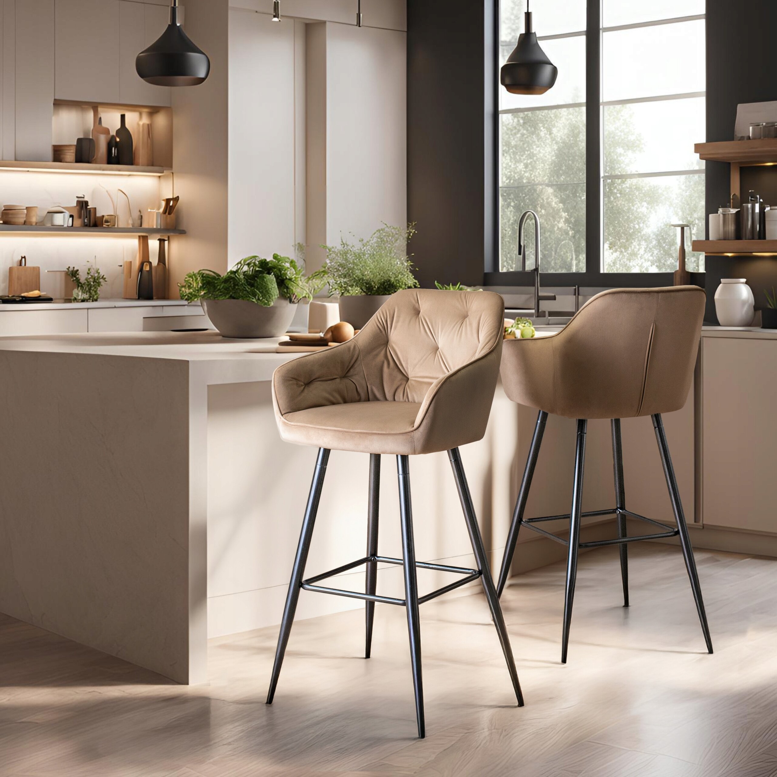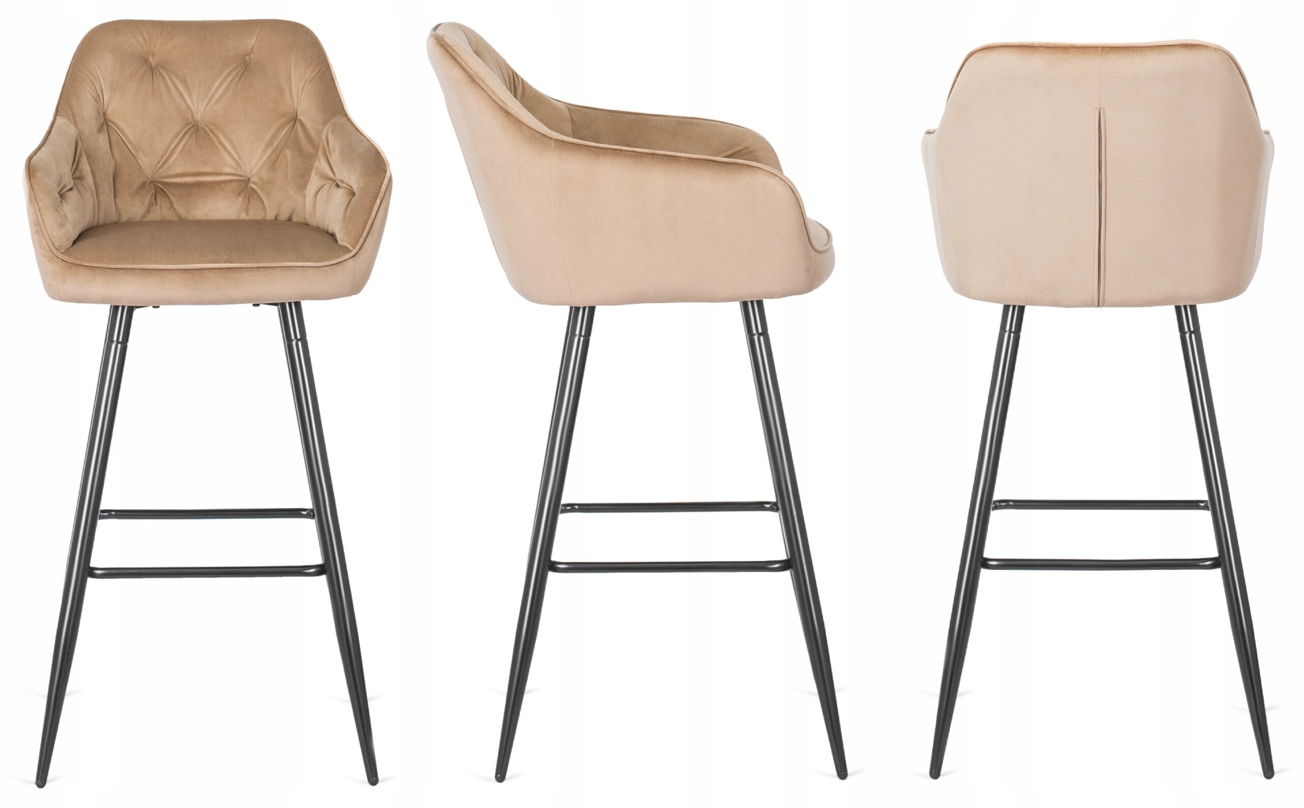Hoker Krzesło Barowe Velvet Do Jadalni Welurowy Beżowy SALEM