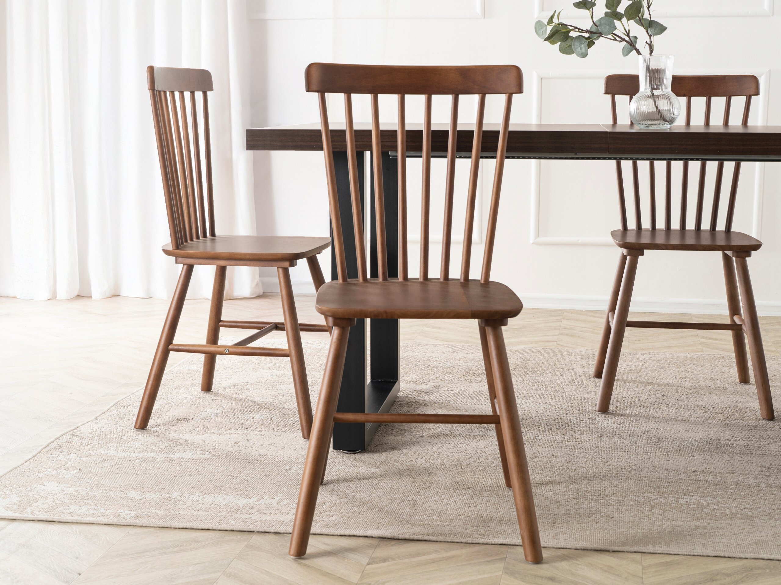 Krzesło GARTON to klasyczny model inspirowany stylem skandynawskim. W całości wykonane z drewna orzechowego, zachwyca prostotą i elegancją. Smukłe pionowe szczebelki oparcia oraz lekko zaokrąglone krawędzie siedziska sprawiają, że krzesło prezentuje się lekko, a jednocześnie solidnie.